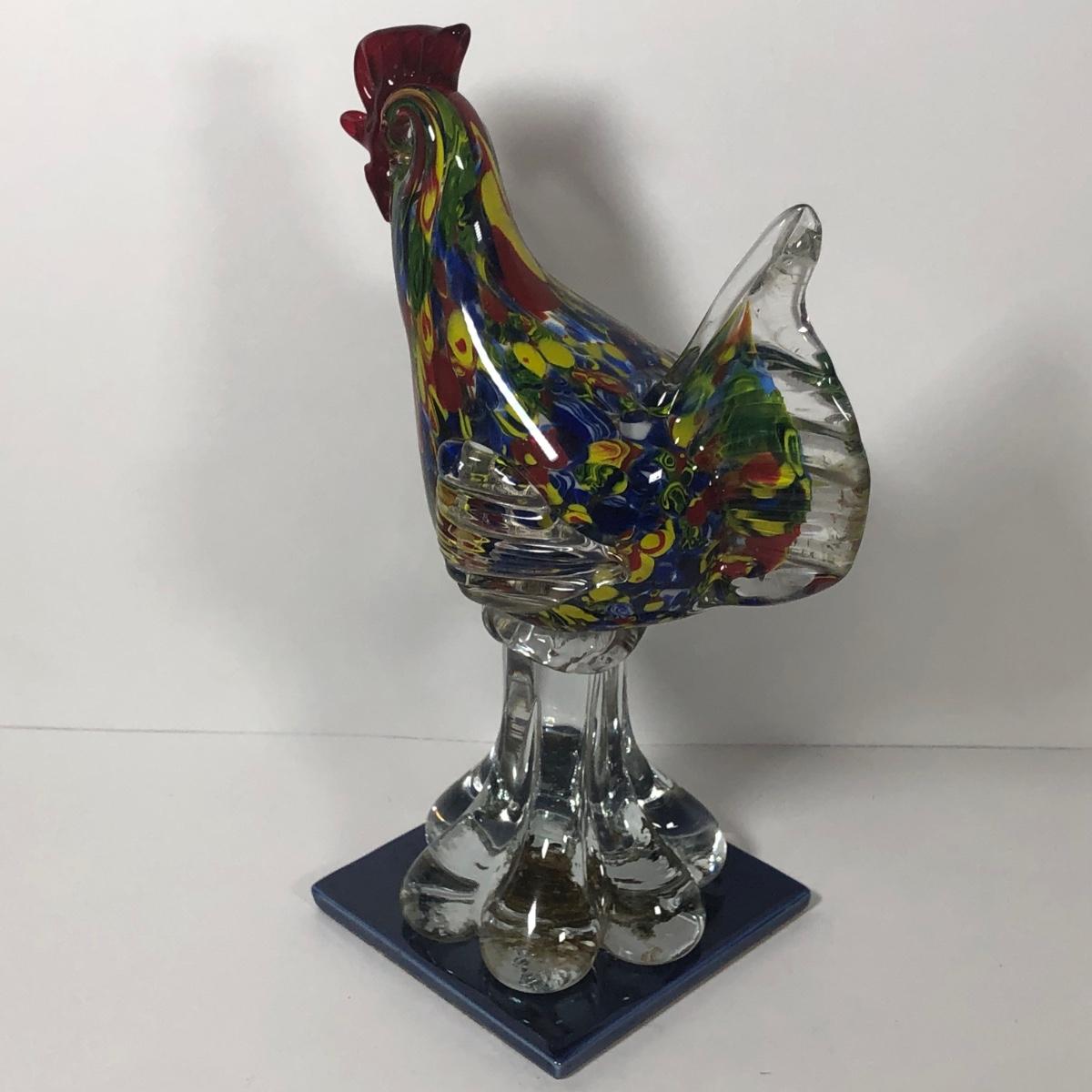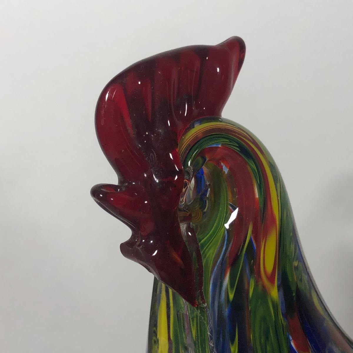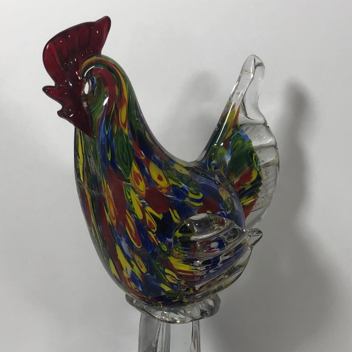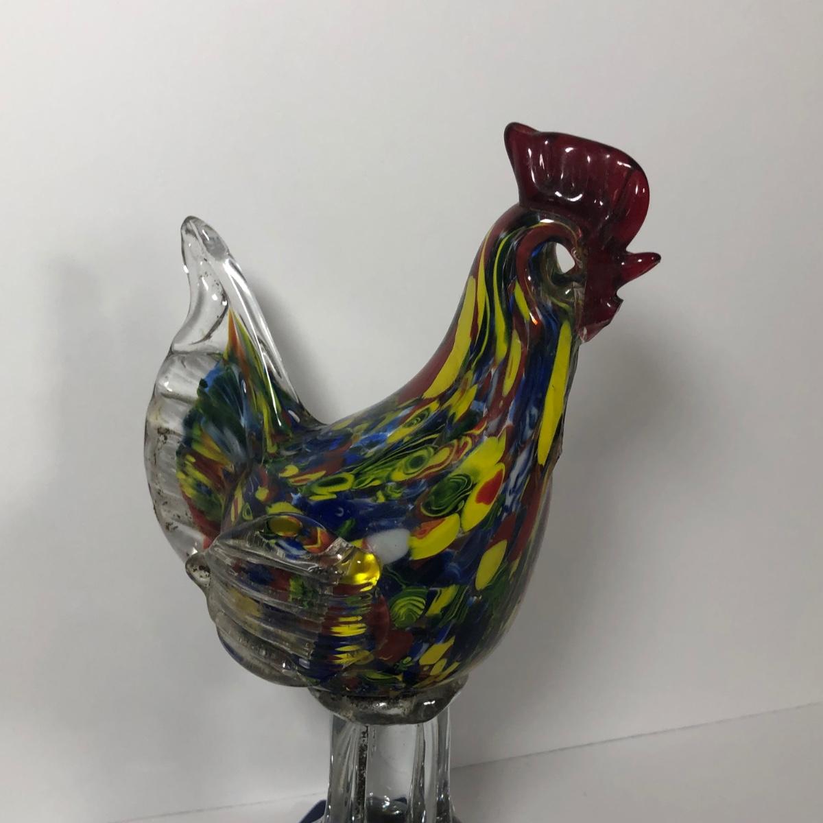 LOT 214K: Vintage Murano Style Art Glass Rooster, Two Tall Cobalt Blue Glass Vases, Anchor Hocking Royal Ruby Red Glass Ivy Vase, Clear Glass Flowers & More