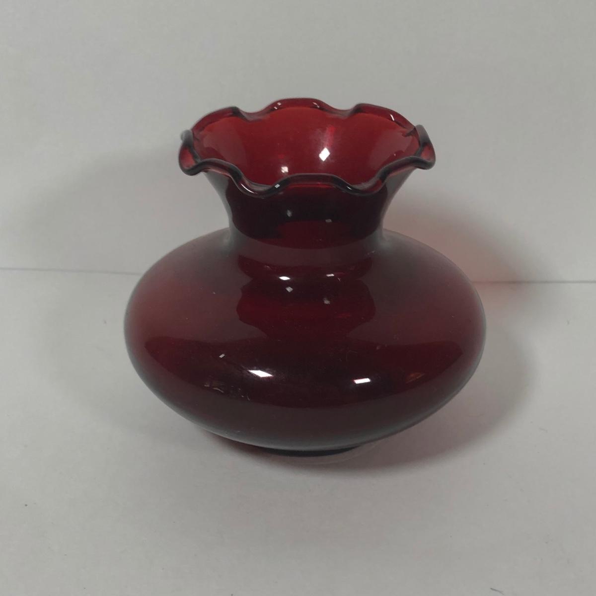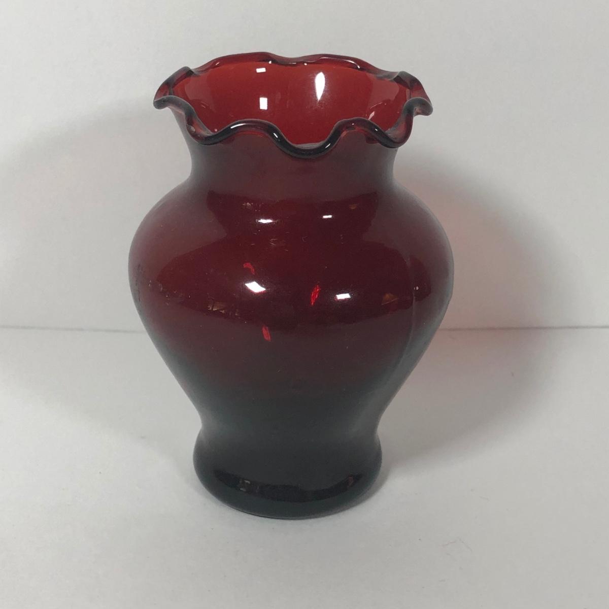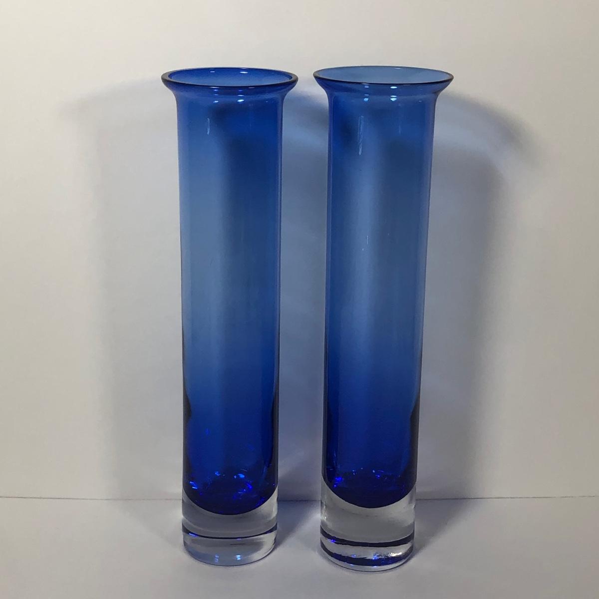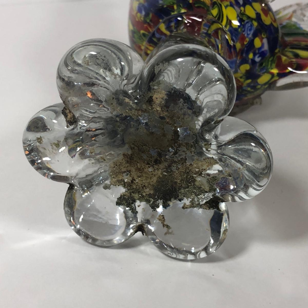 LOT 214K: Vintage Murano Style Art Glass Rooster, Two Tall Cobalt Blue Glass Vases, Anchor Hocking Royal Ruby Red Glass Ivy Vase, Clear Glass Flowers & More