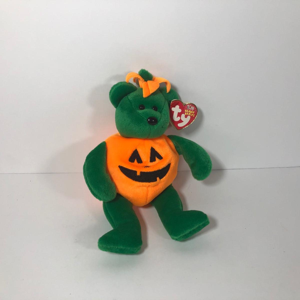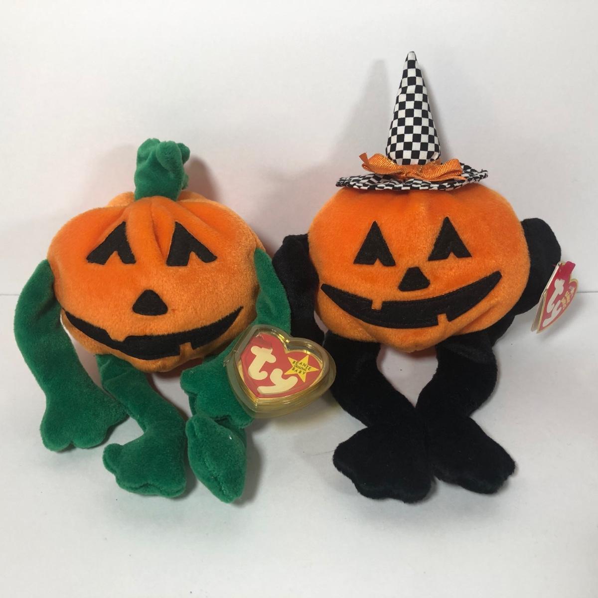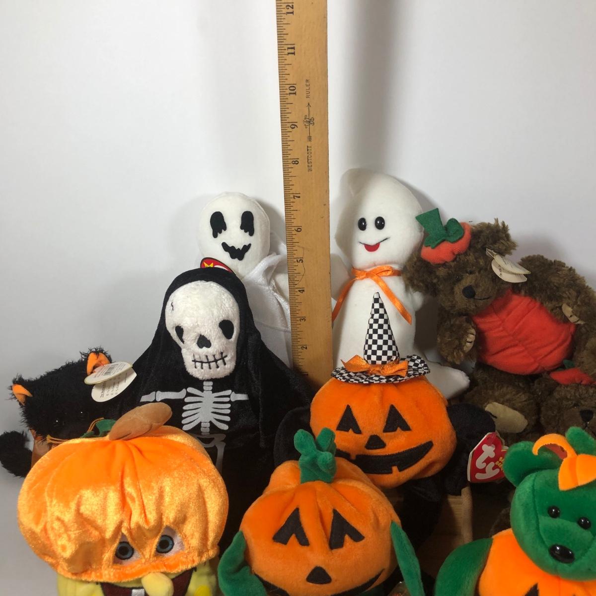 LOT 222K: TY Halloween Beanie Babies - Most w/ Tags - Spongebob, Creepers, Vintage 1993 Pumpkin the Bear/Attic Treasures Collection & More