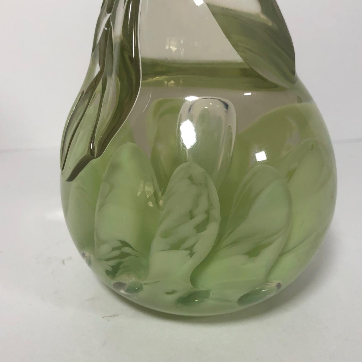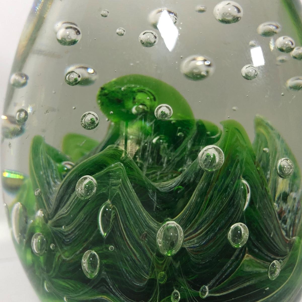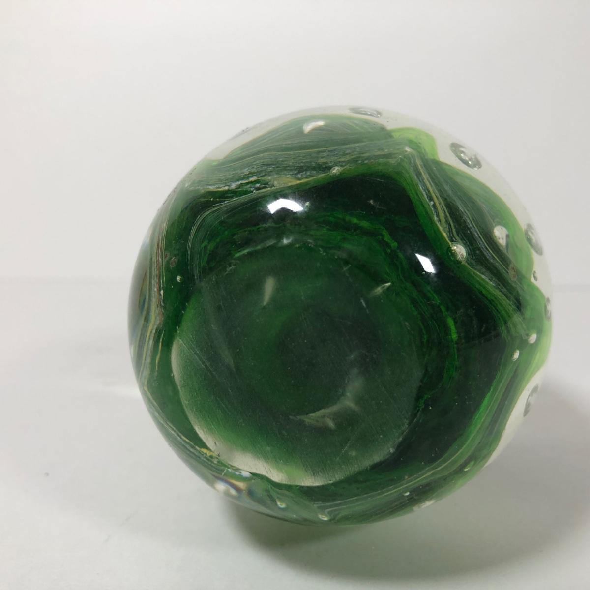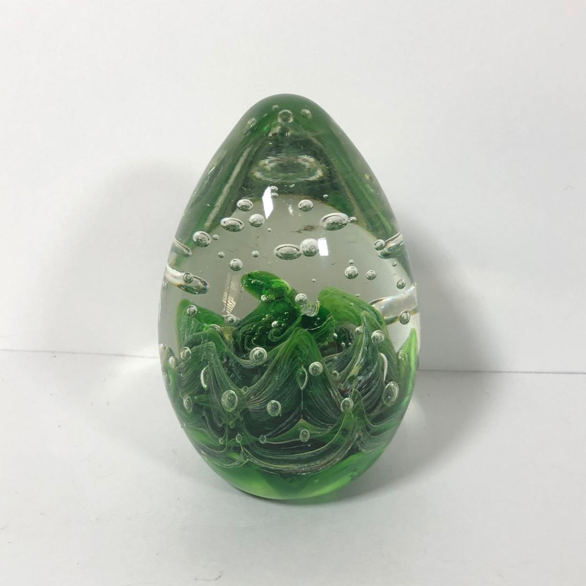 LOT 225K: Vintage Paperweights - Green Swirl Glass Egg, Green Glass Pear, Red Marble Apple & Orange Glass Orb made in Lithuania