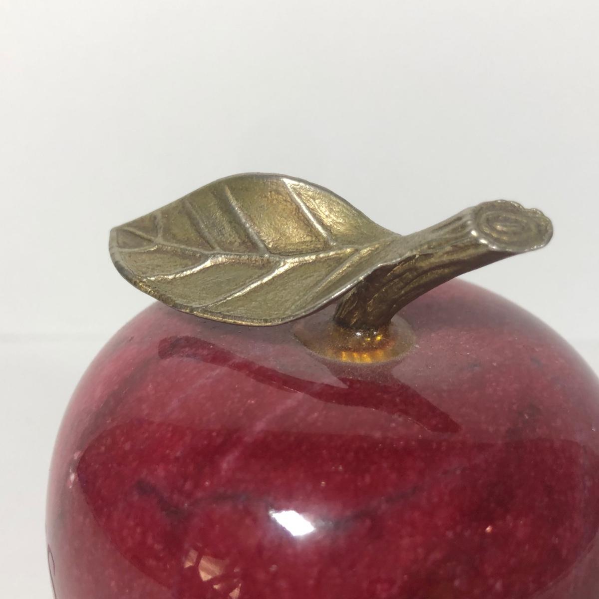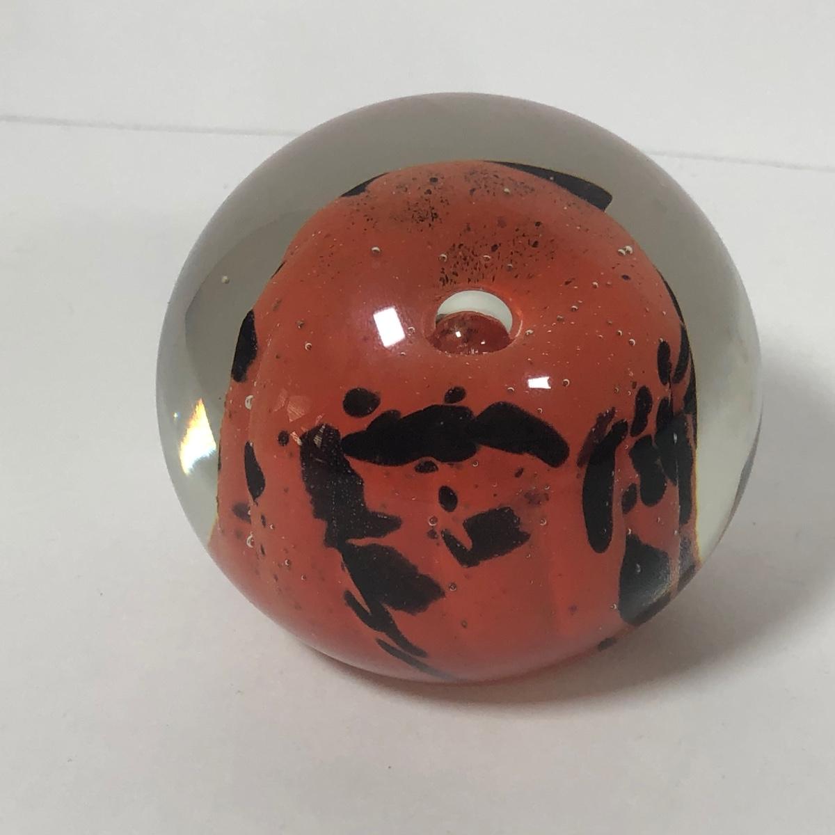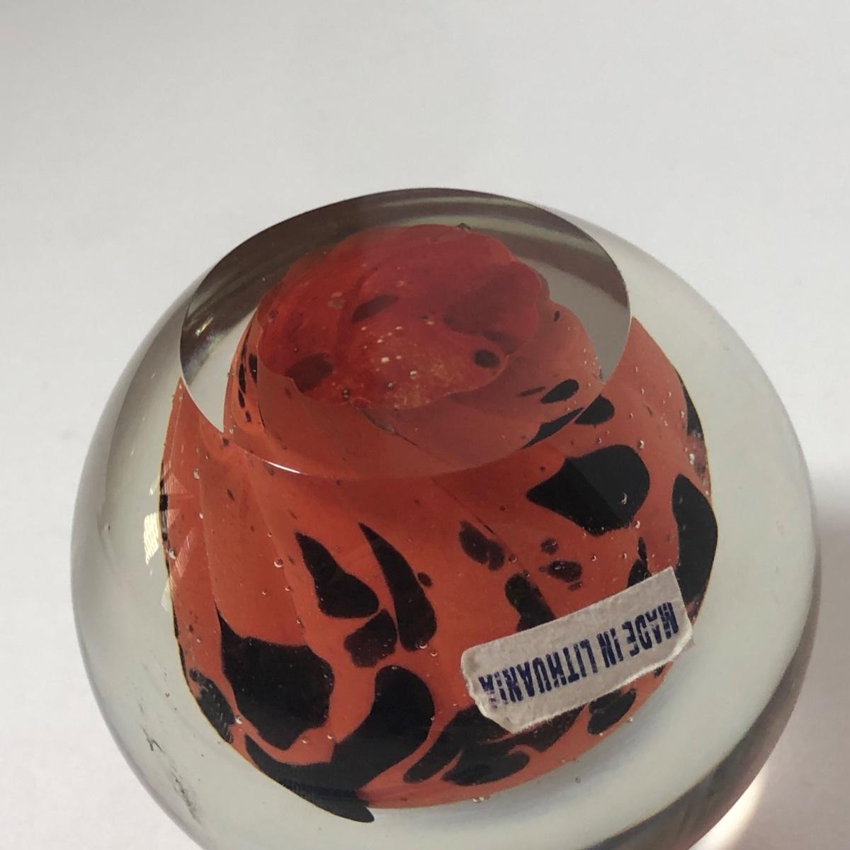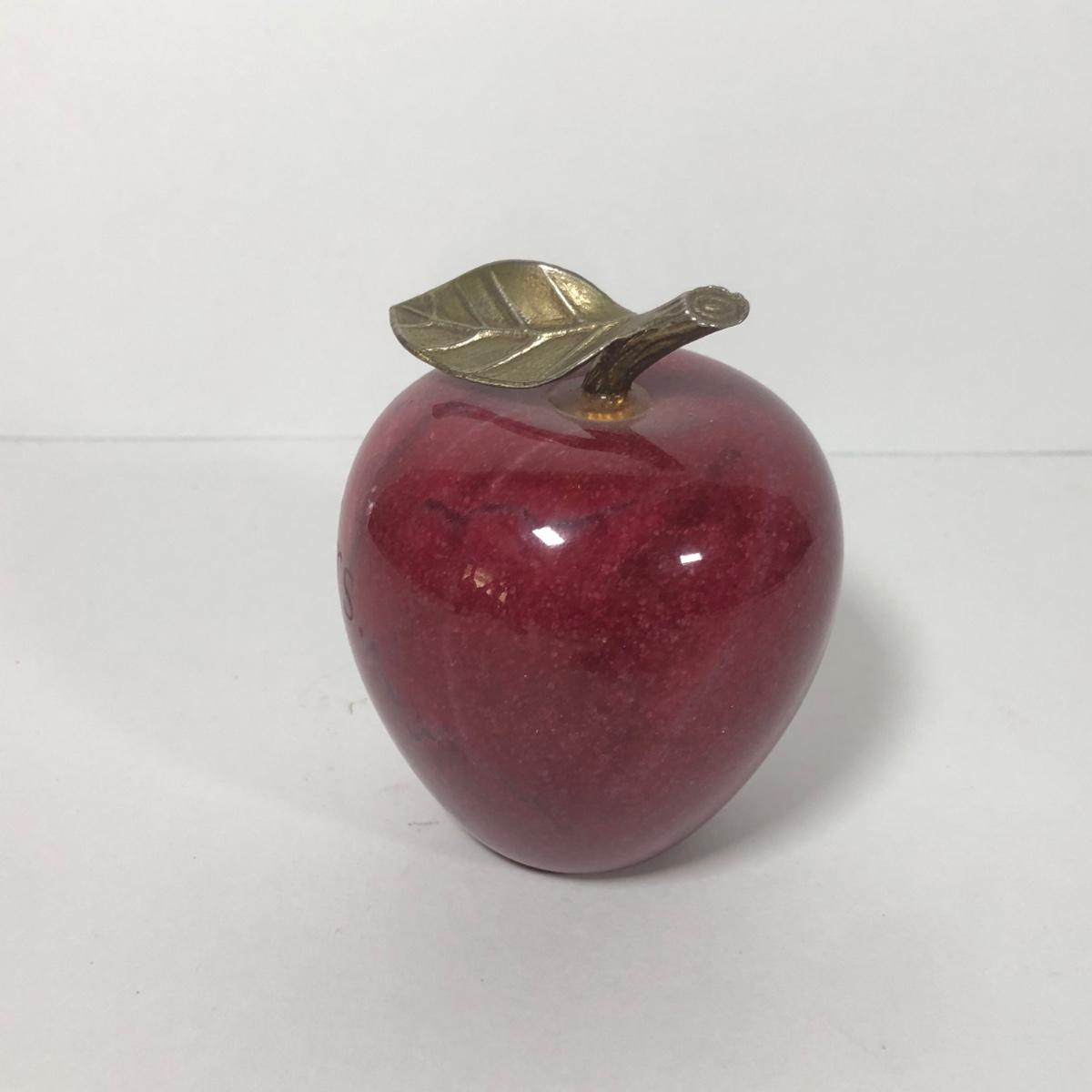 LOT 225K: Vintage Paperweights - Green Swirl Glass Egg, Green Glass Pear, Red Marble Apple & Orange Glass Orb made in Lithuania