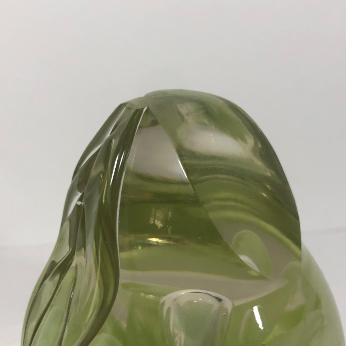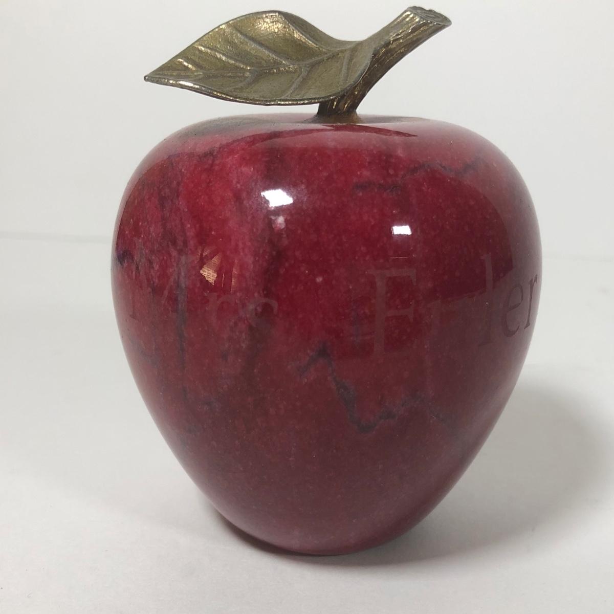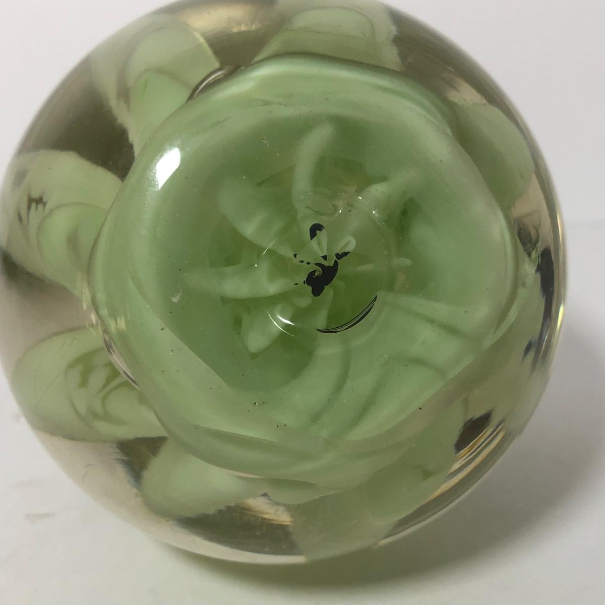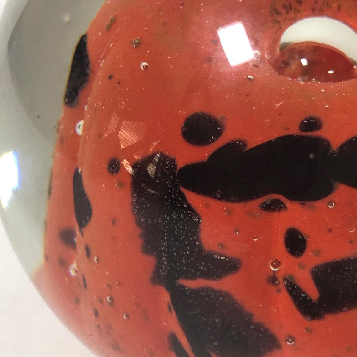 LOT 225K: Vintage Paperweights - Green Swirl Glass Egg, Green Glass Pear, Red Marble Apple & Orange Glass Orb made in Lithuania