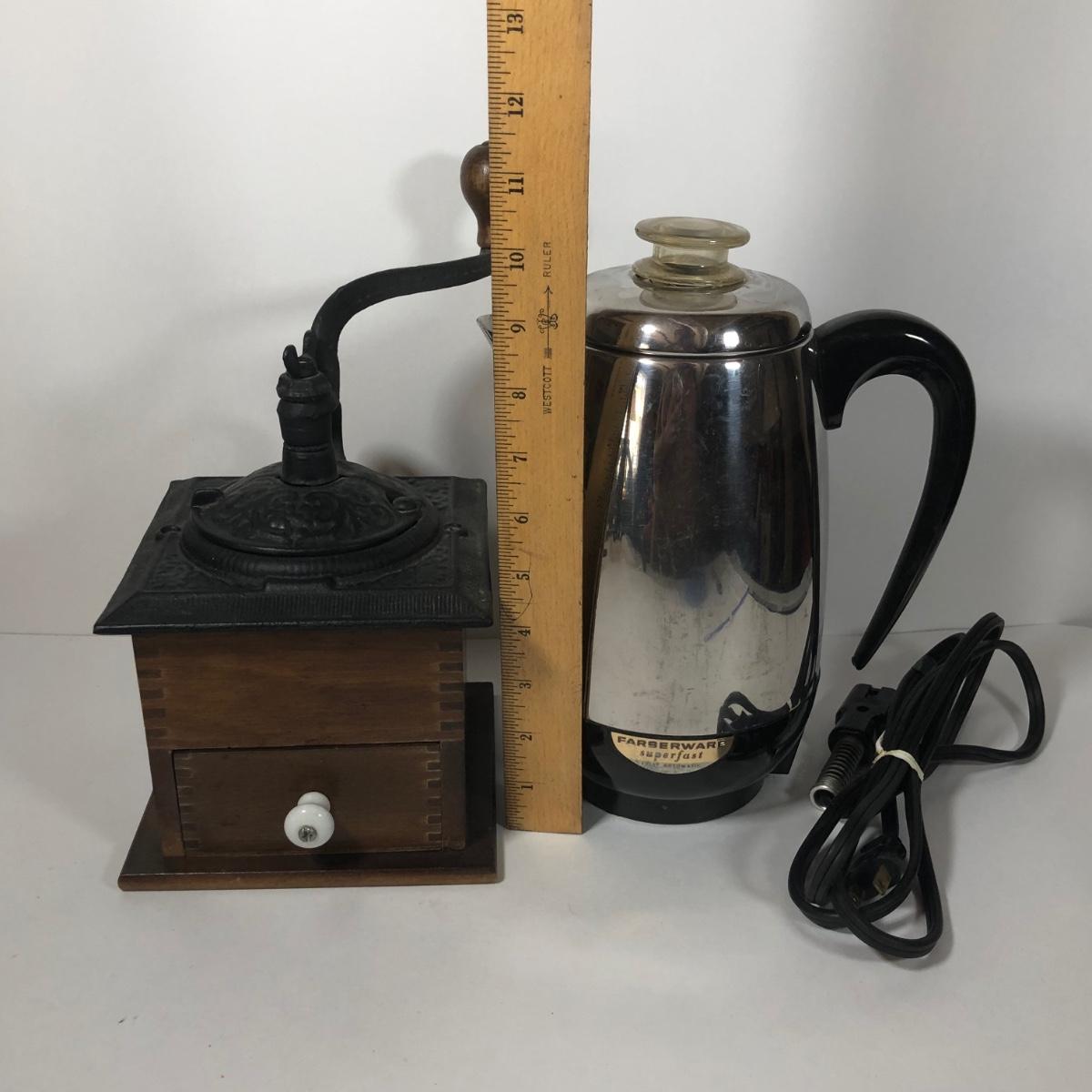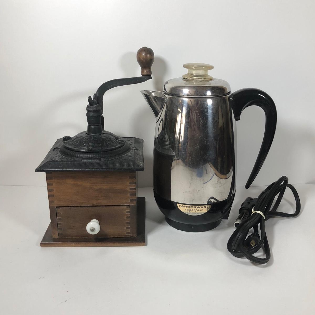 LOT 228K: Coffee Mill w/ Farberware Superfast Percolator Model 138
