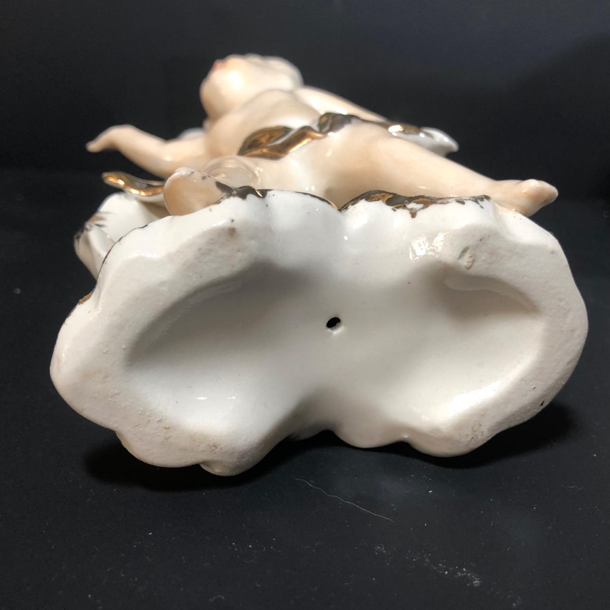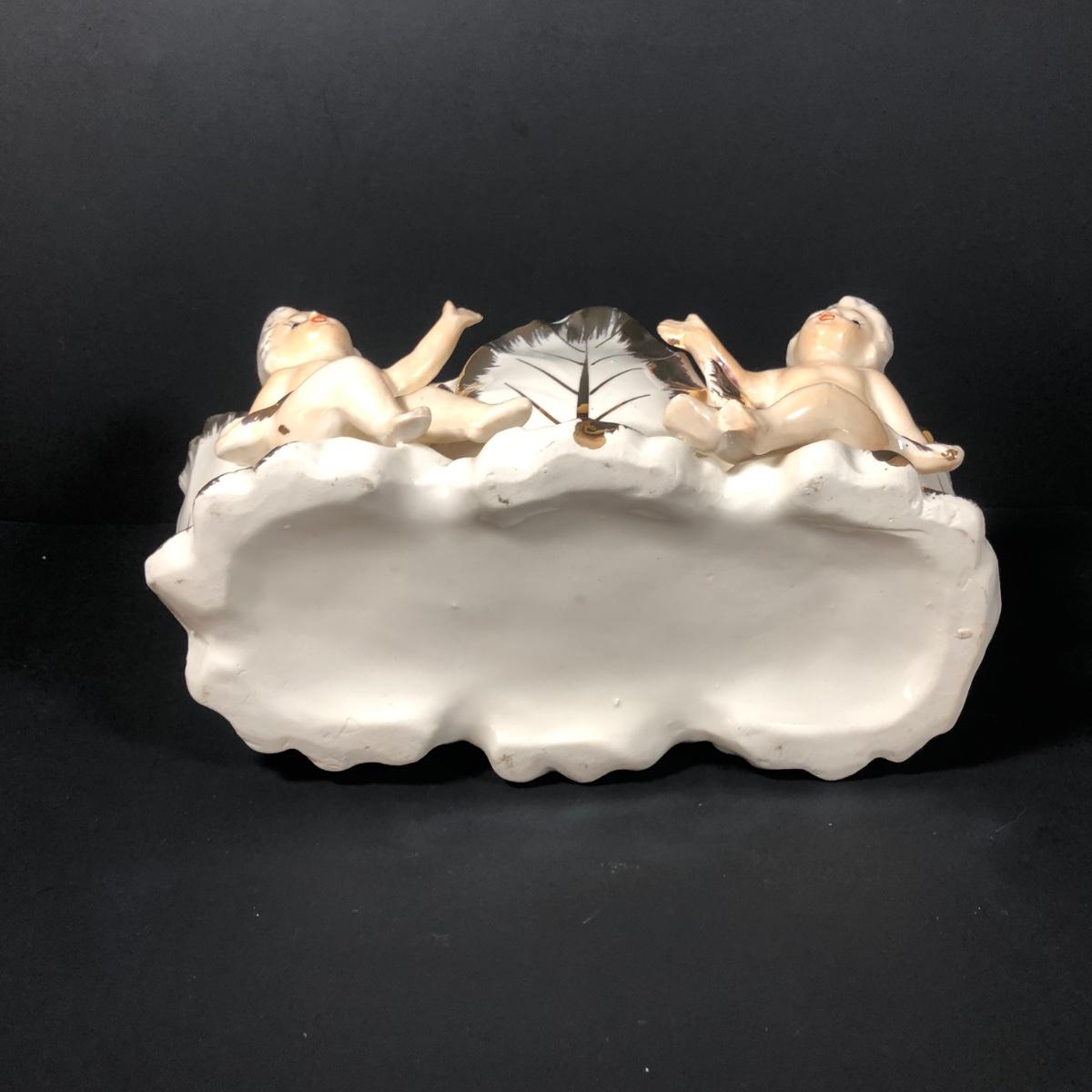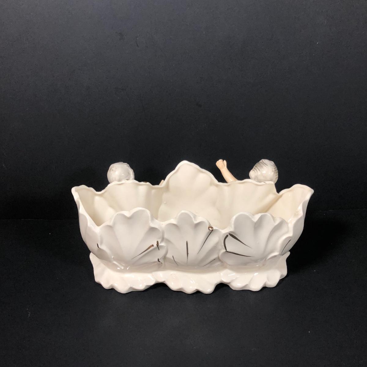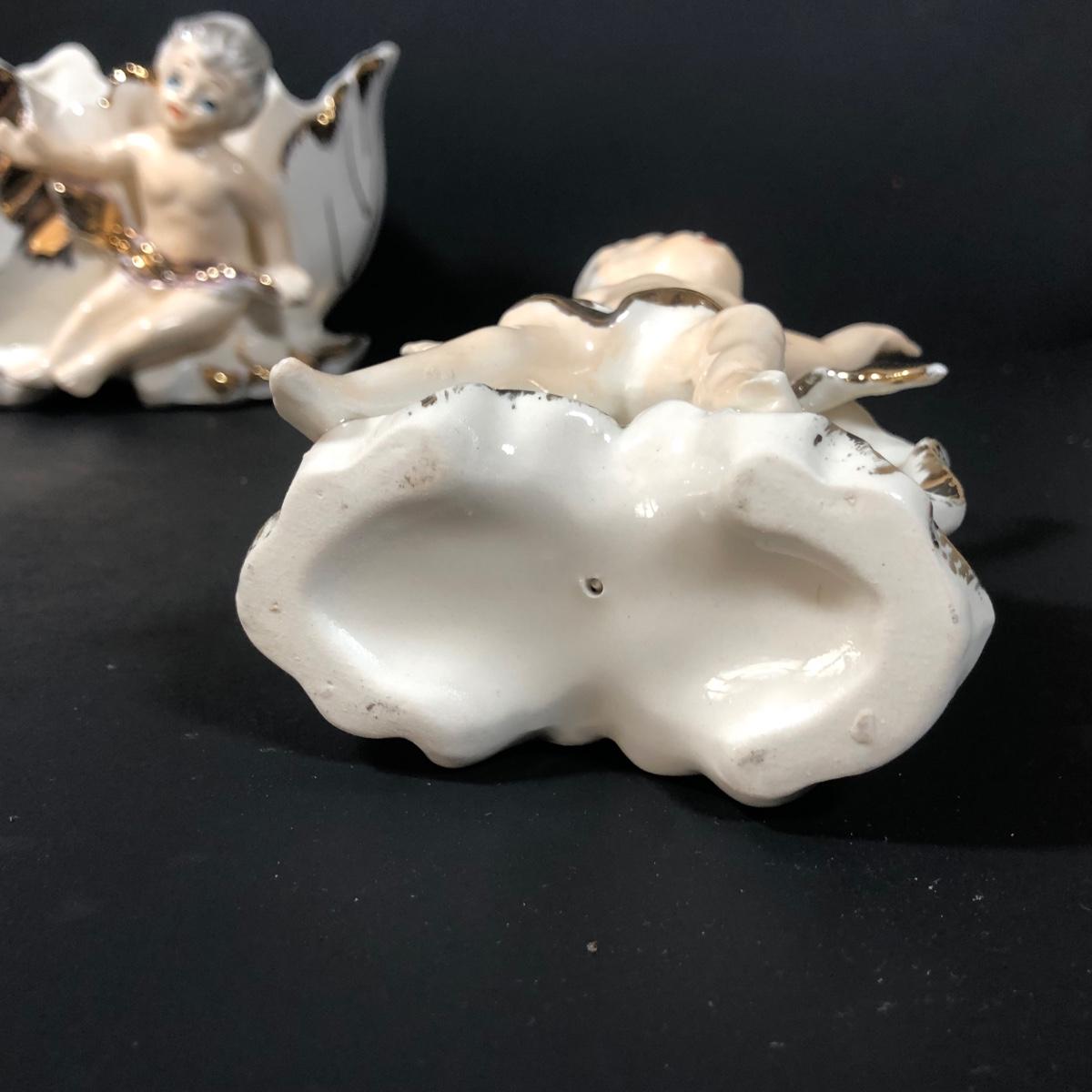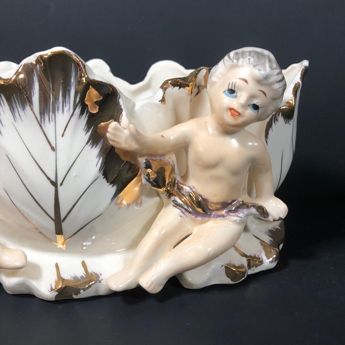 LOT 230K: Vintage White & Gold Ceramic Cherub Set - Candle Holders & Planter/Centerpiece
