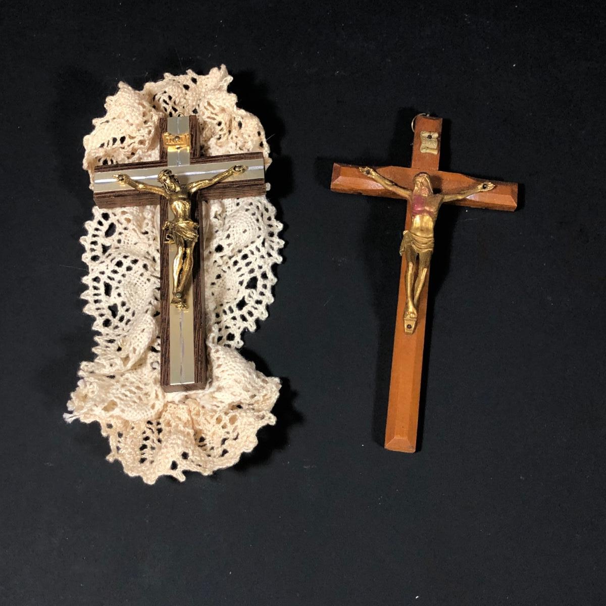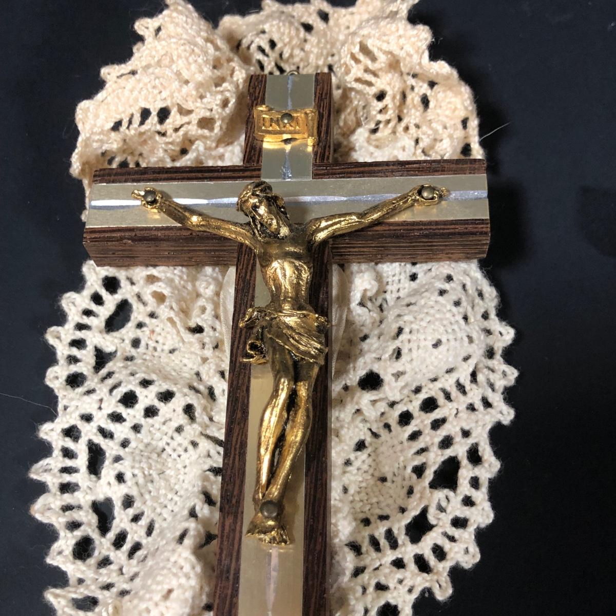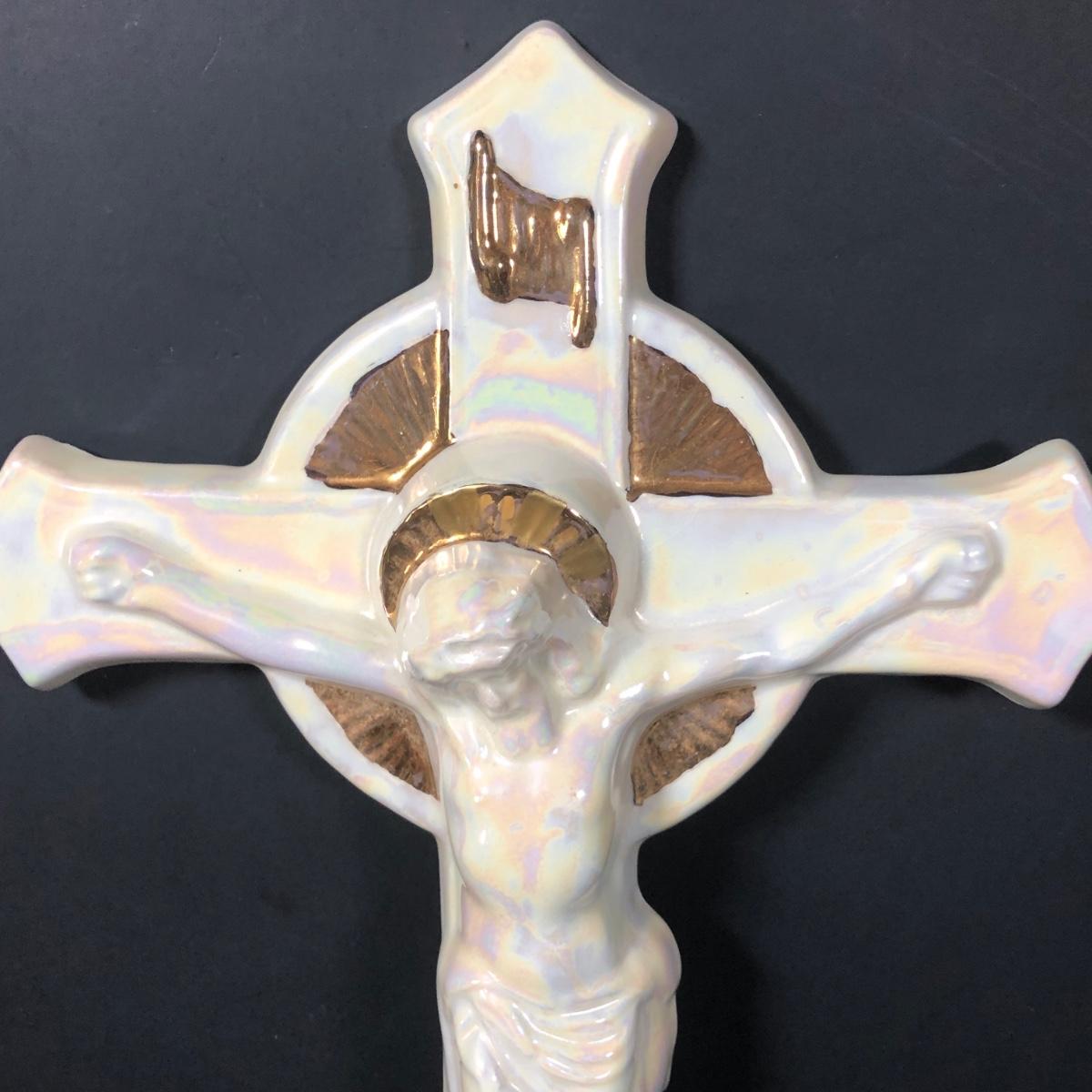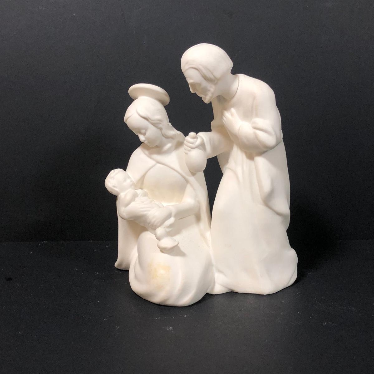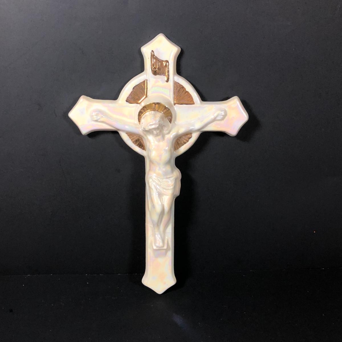LOT 231K: Decorative 18kt Gold Accent Last Supper Plate, Crucifixes made in Italy, White Goebel Holy Family Figure & White & Gold Porcelain Crucifix