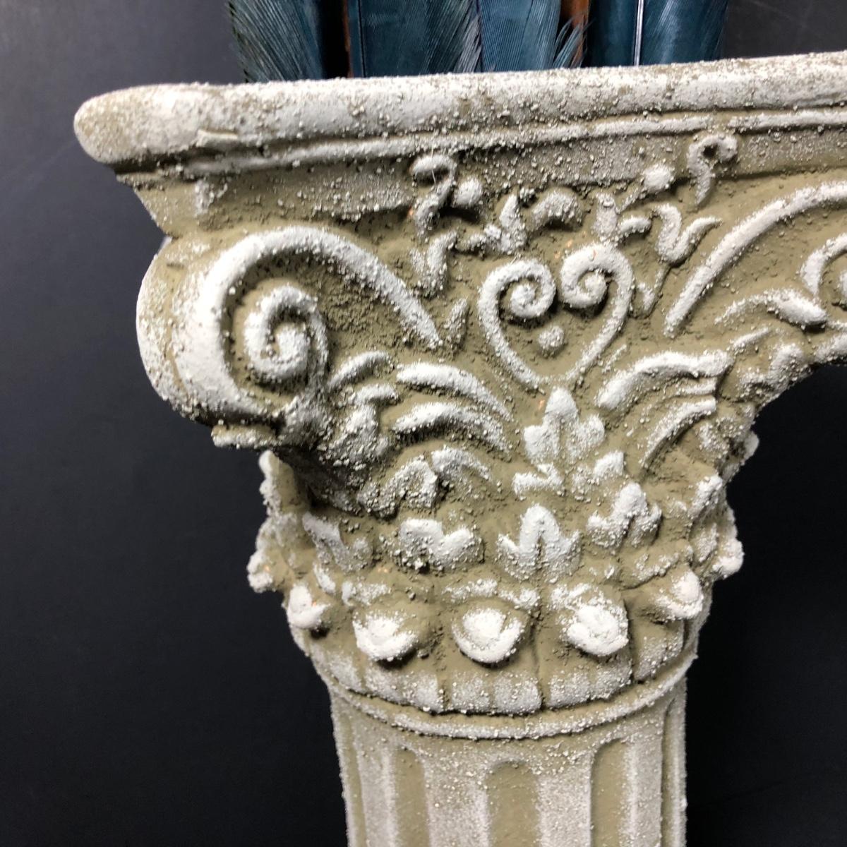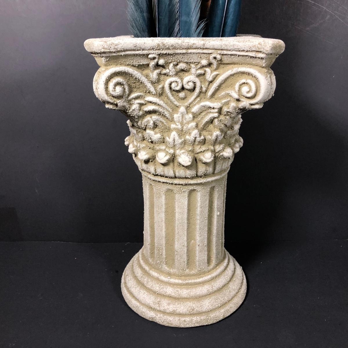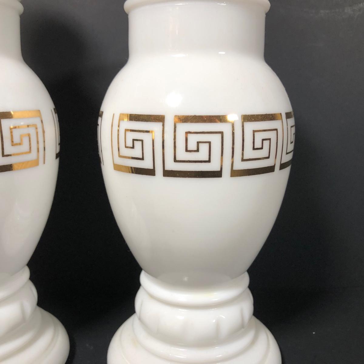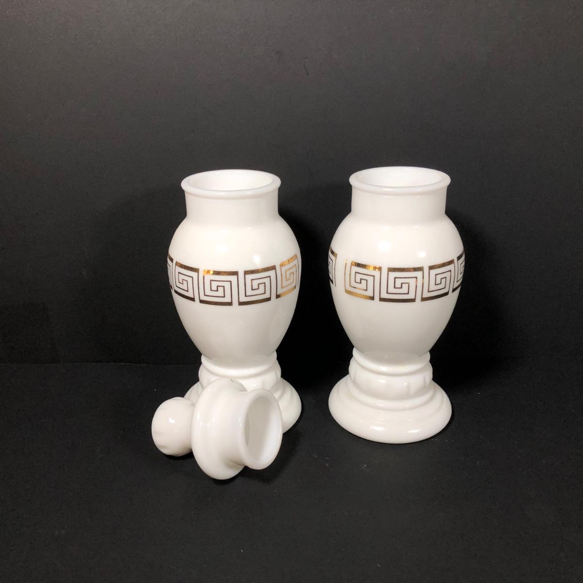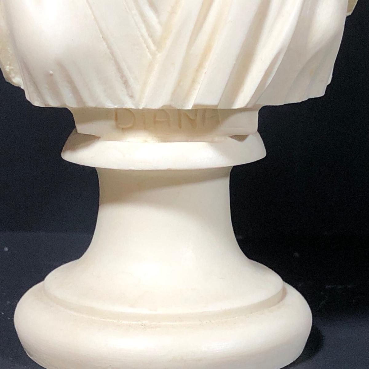 LOT 236K: Artemis Diana Bust Sculpture, David Bust Sculpture, Milk Glass Pedestal Apothecary Jars w/ Gold Greek Key (One with Lid, one without) & Column Planter Marked LBK