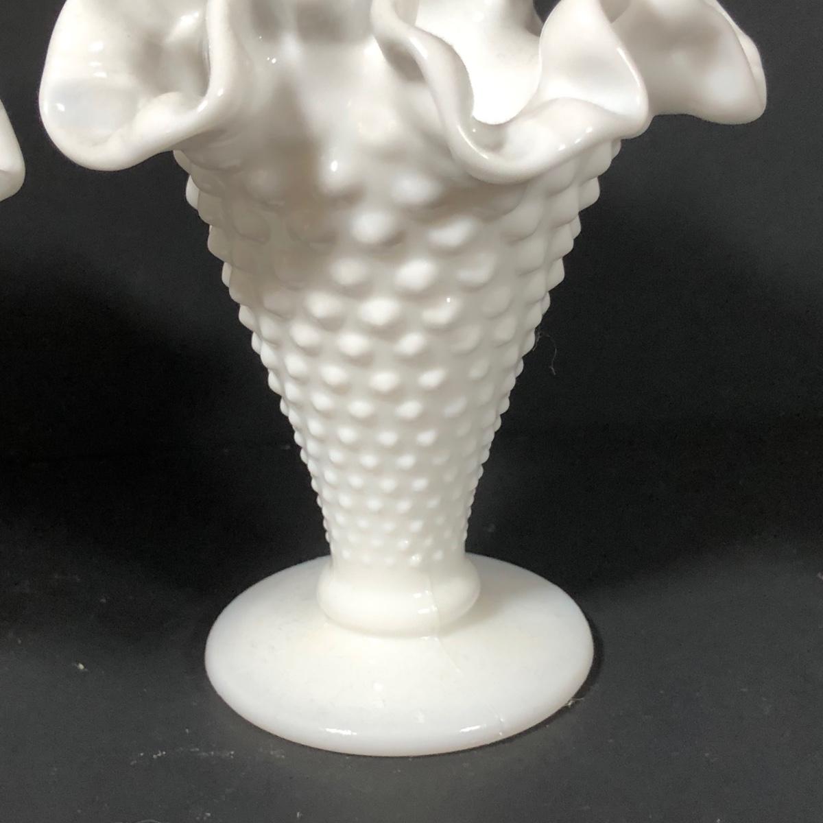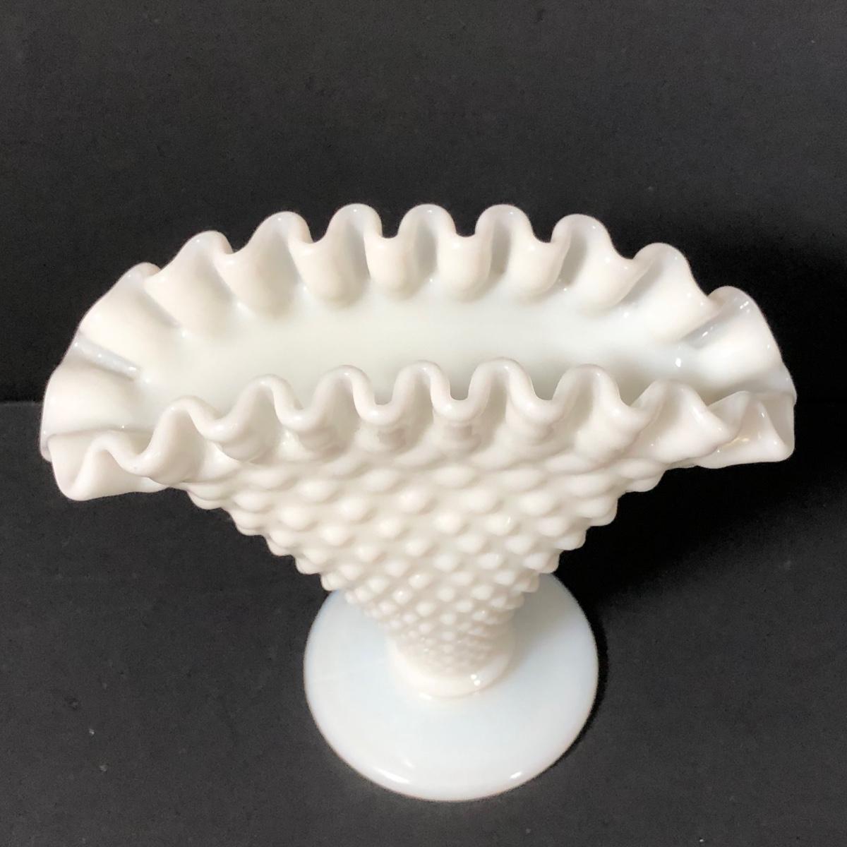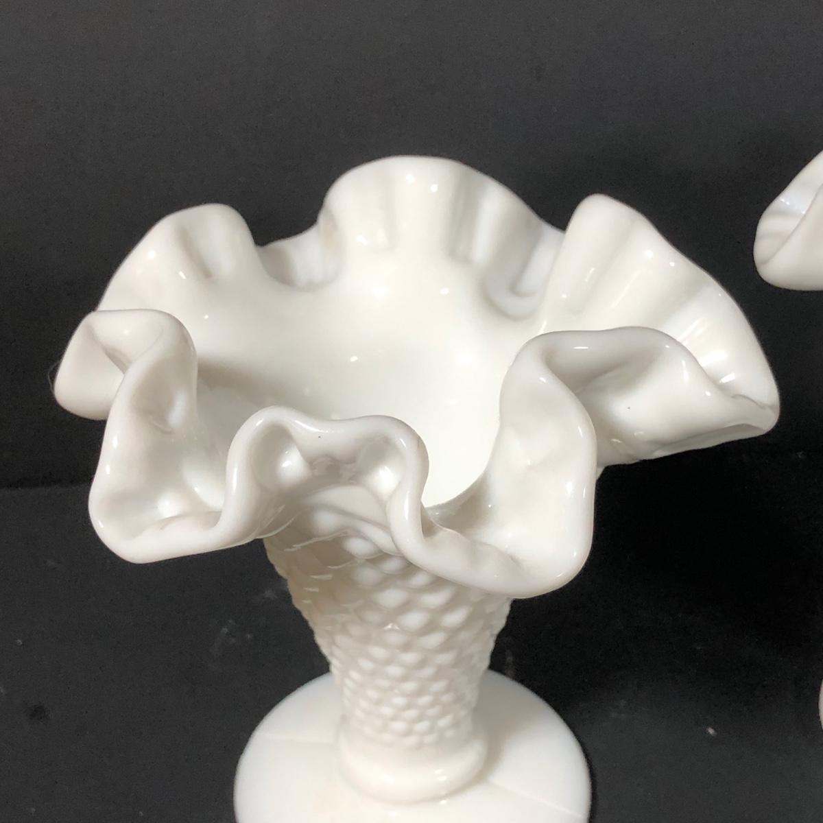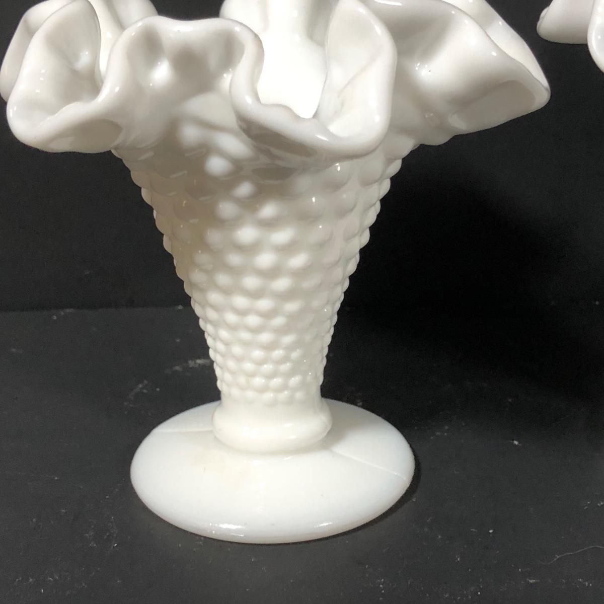 LOT 240W: Milk Glass - Fenton Hobnail Trumpet Vases, Hobnail Footed Vase & Hobnail Fan Vase