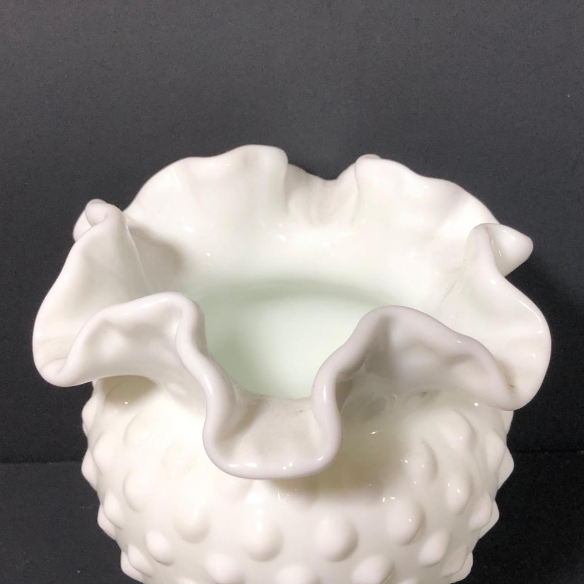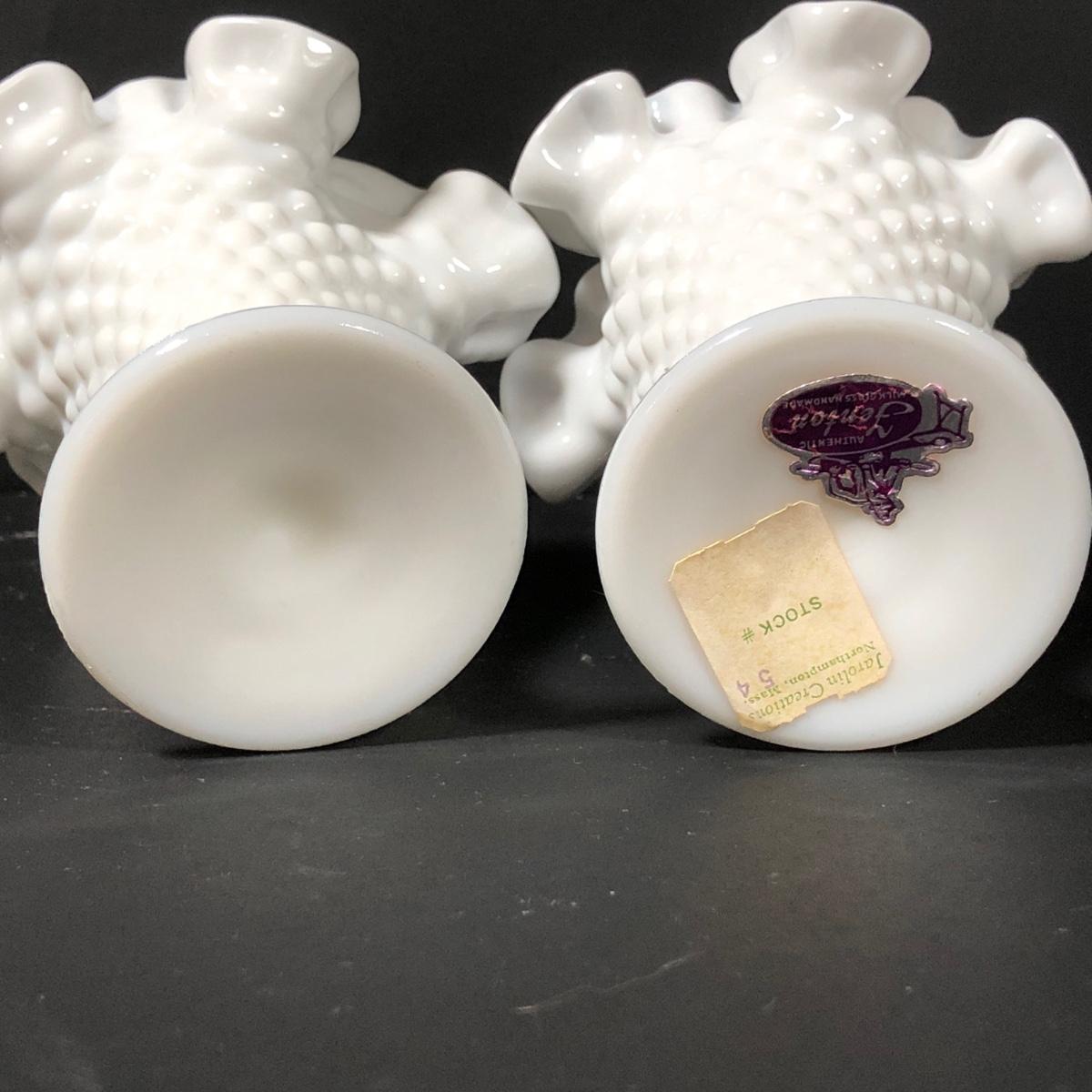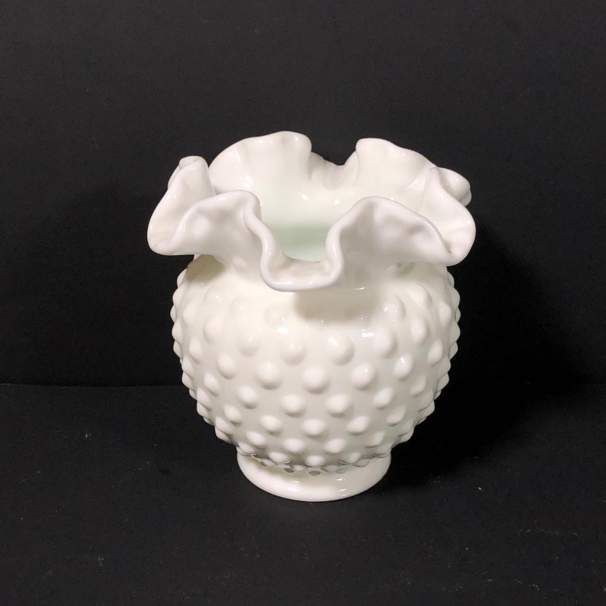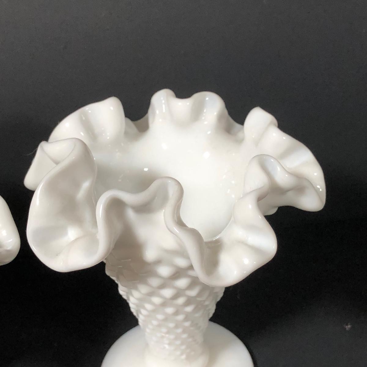 LOT 240W: Milk Glass - Fenton Hobnail Trumpet Vases, Hobnail Footed Vase & Hobnail Fan Vase