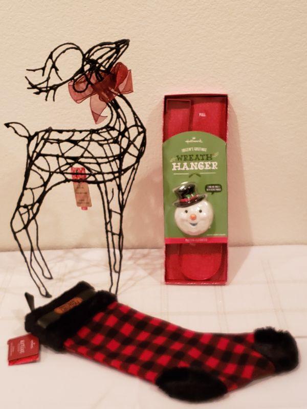 Lot 945: NEW Hallmark Artist Stocking, Reindeer and Animated Wreath Hanger
