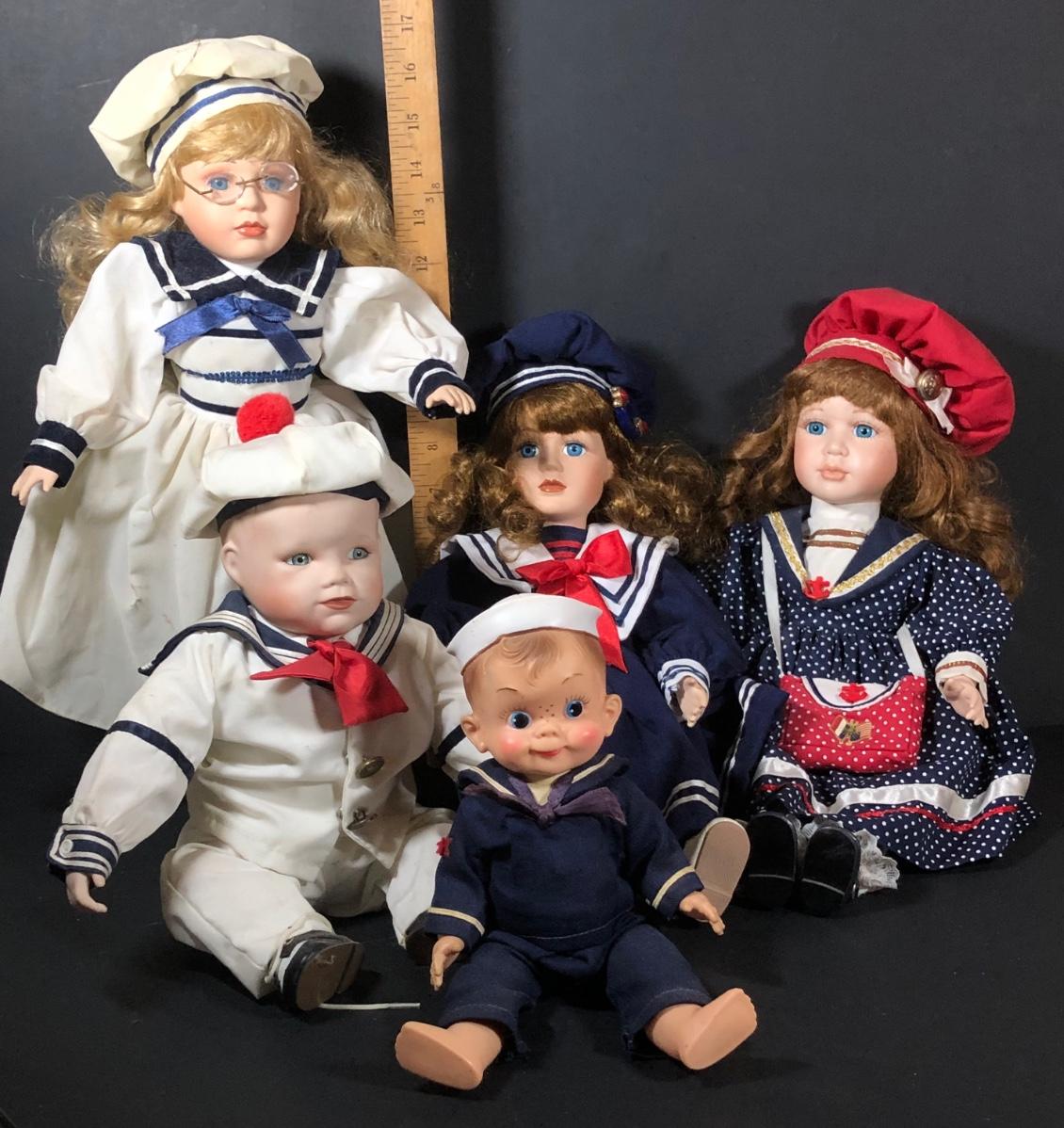 LOT 4F: Vintage Sailor Dolls - Blonde Victorian w/ Glasses, Yolanda Bellos (1666TT), "Mickey" by Effanbee & More