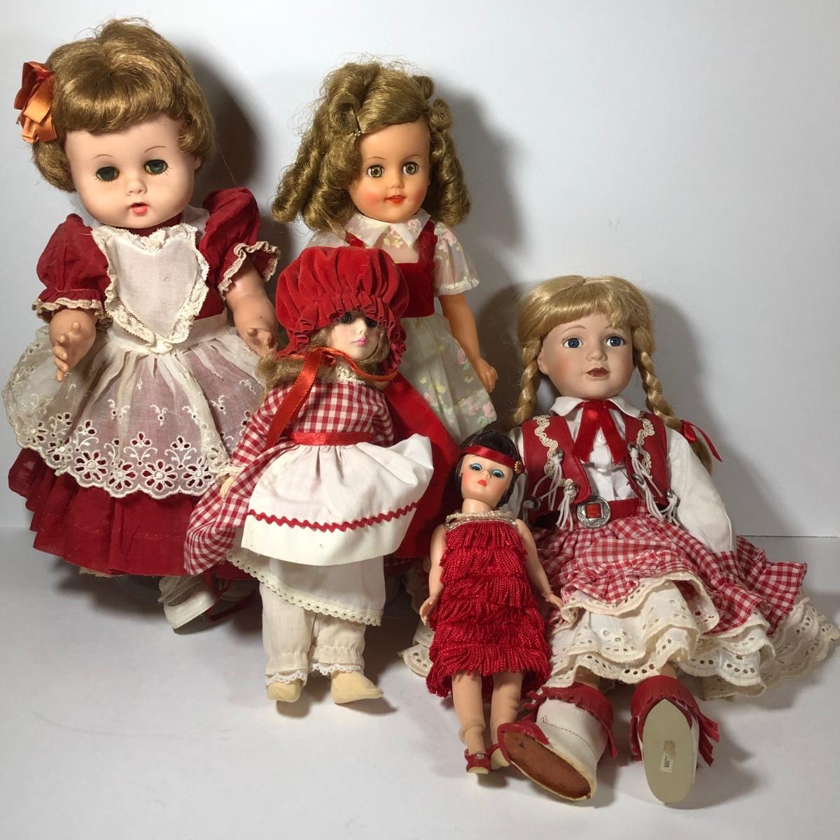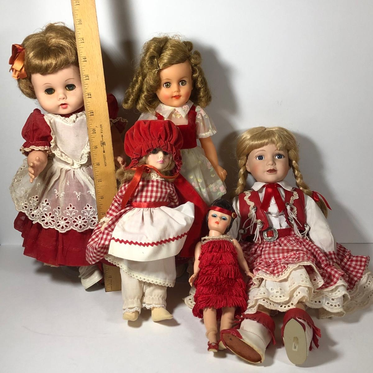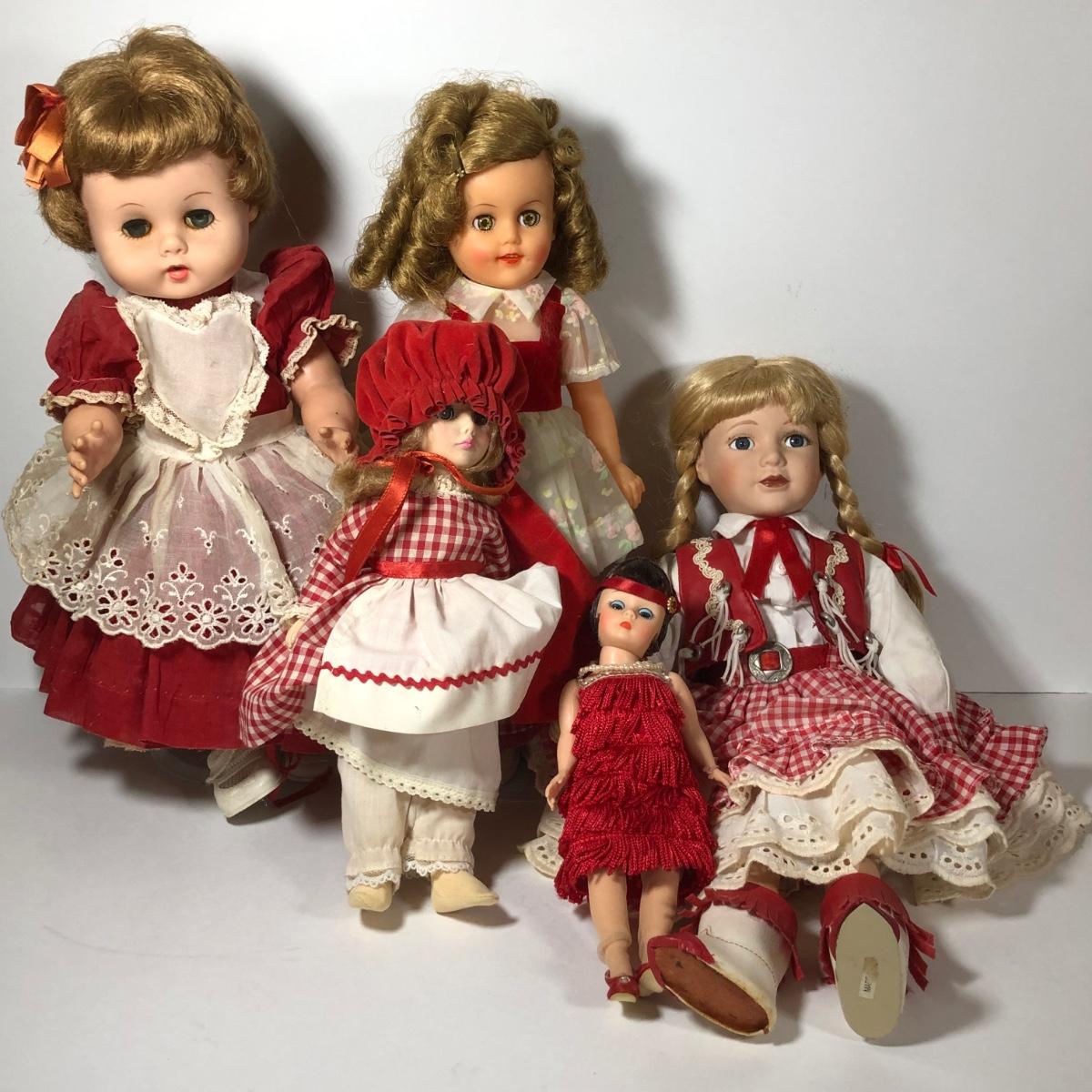 LOT 11F: Vintage Dolls - Madame Alexander Red Flapper, 1975 Effanbee 1176, 1991 Royalton Collection, Ideal Toys Shirley Temple & Ginny Baby by Vogue Doll Inc.
