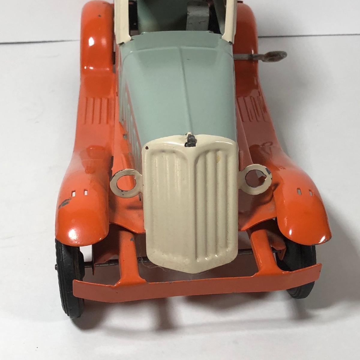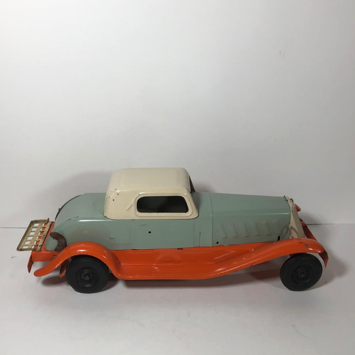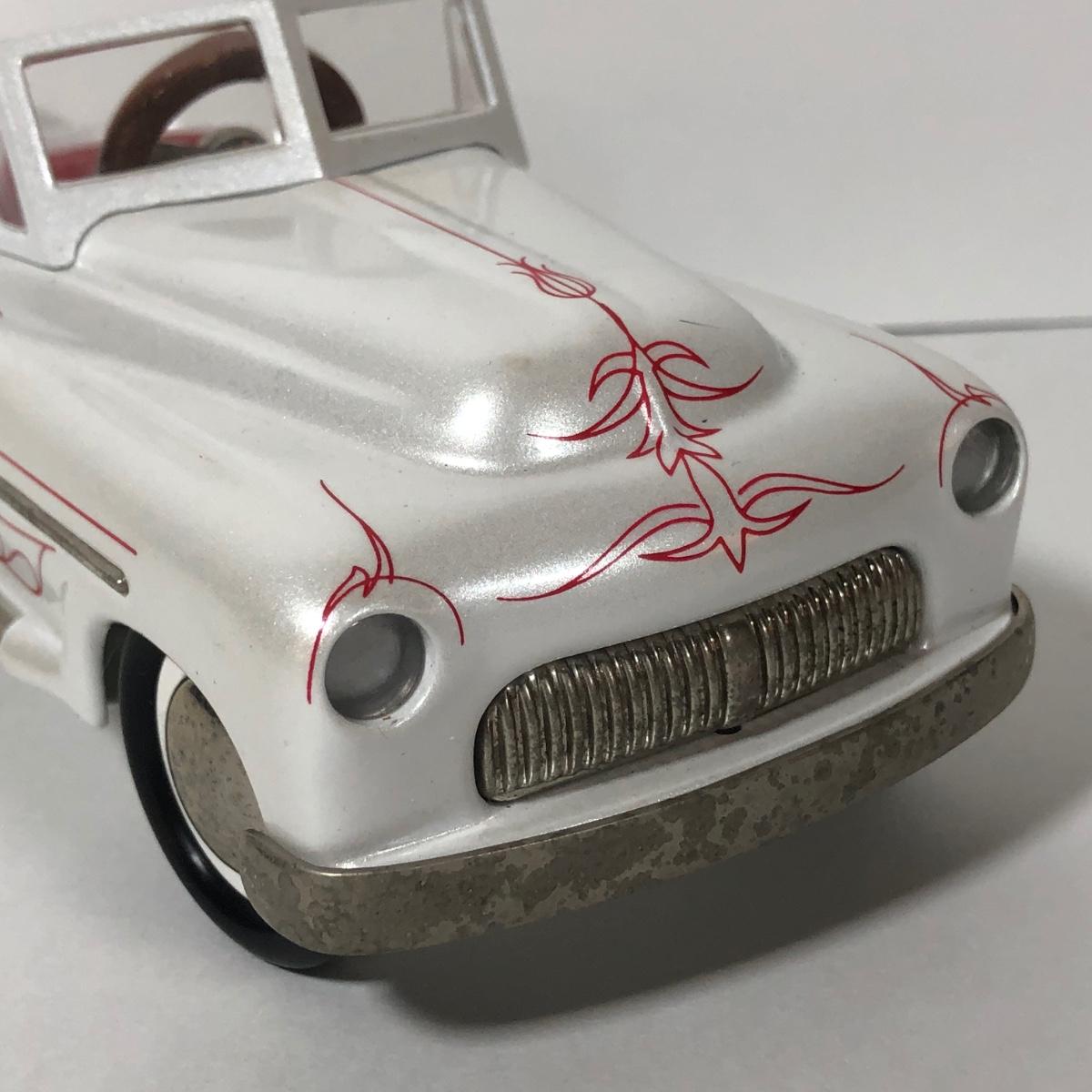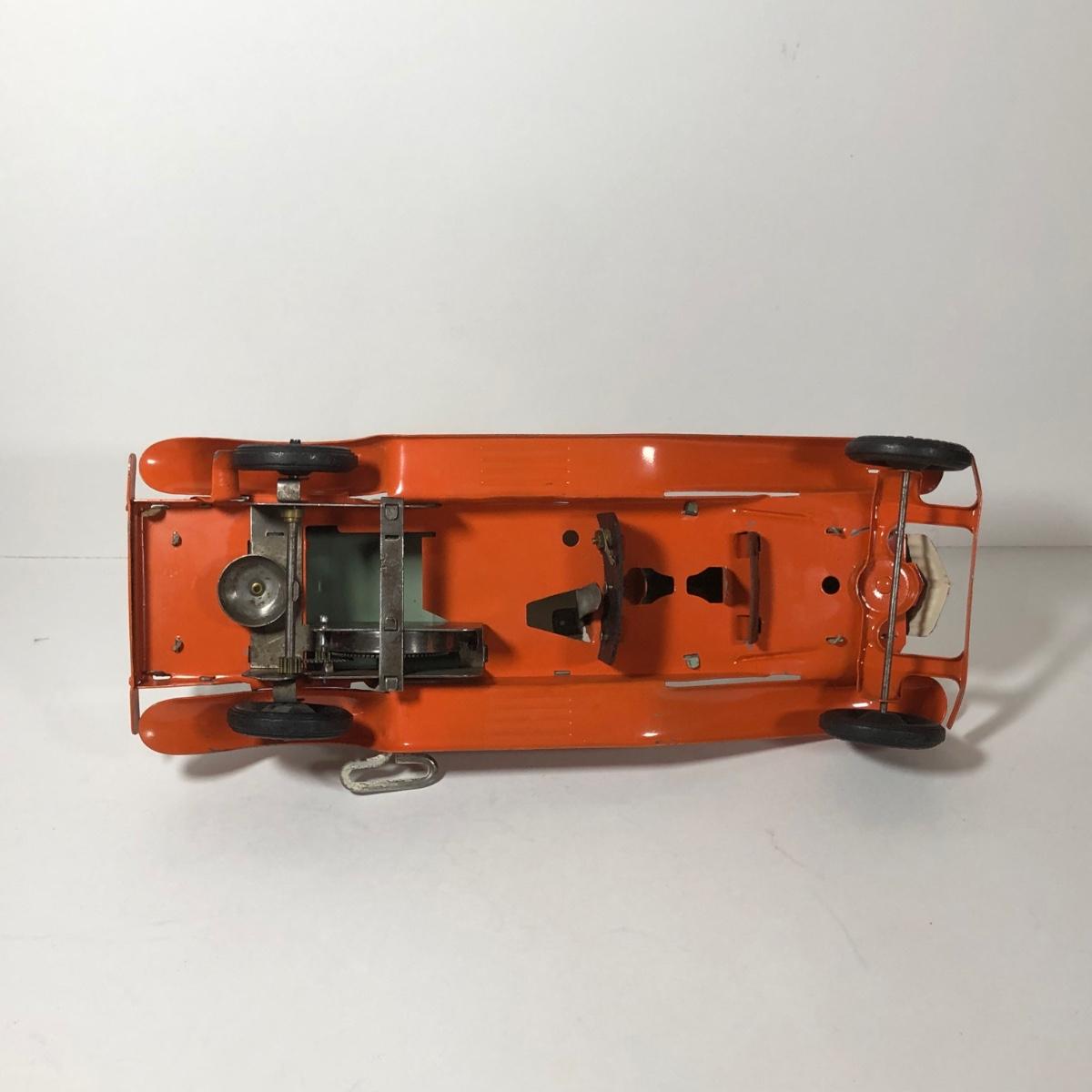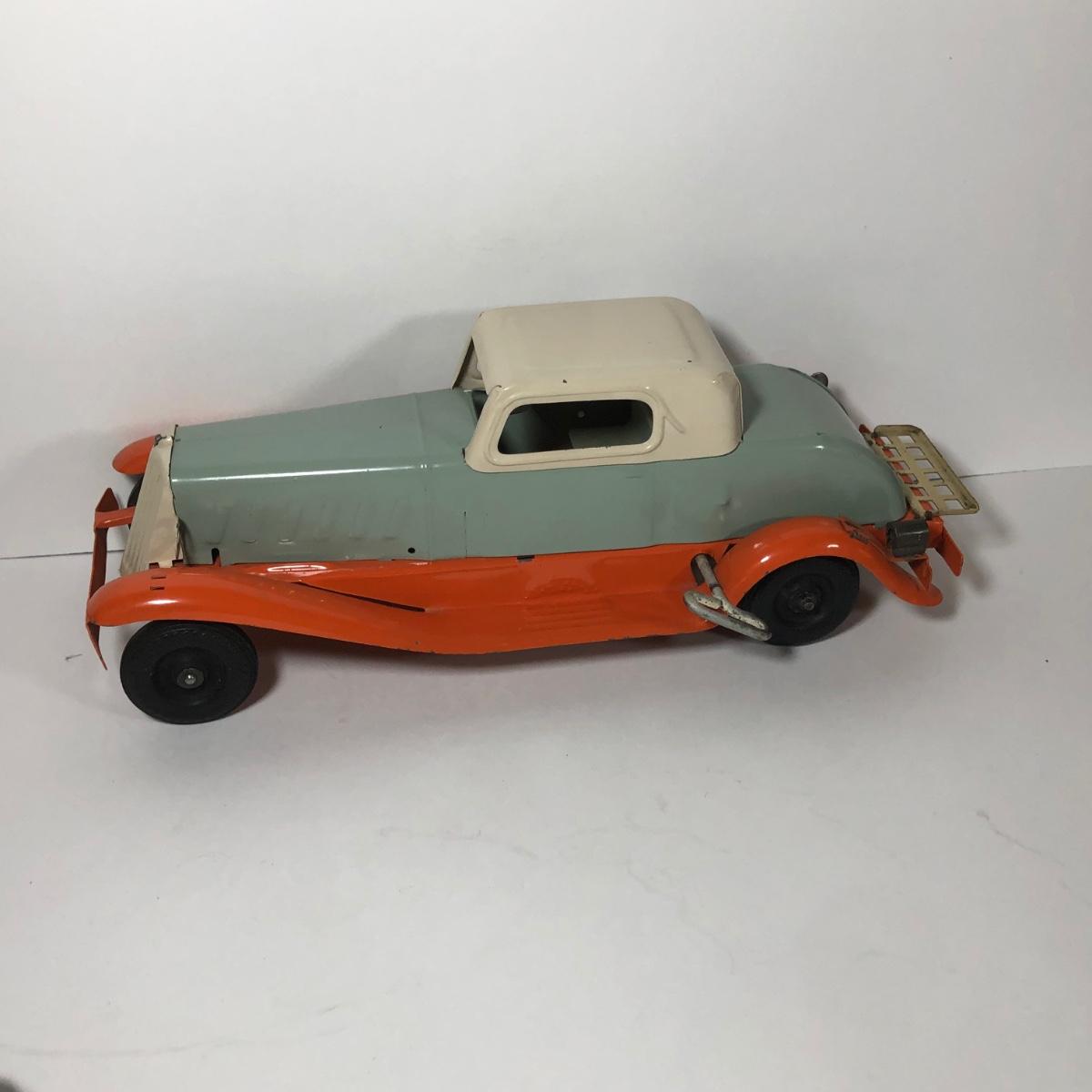 LOT 13F: Vintage Girard Pierce Arrow Coupe Windup Metal Car, 1931 Ford Model A Replica, 1967 Volkswagen Beetle Replica, Avon Volkswagen Bottle, Hallmark Classics 1950s Custom Convertible