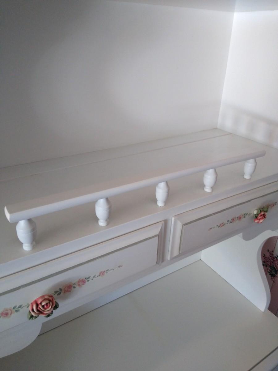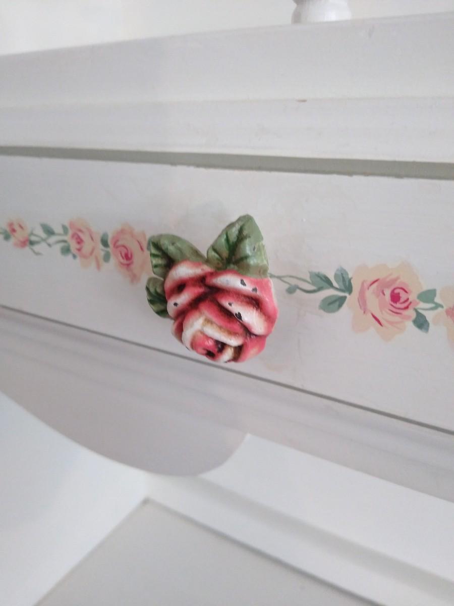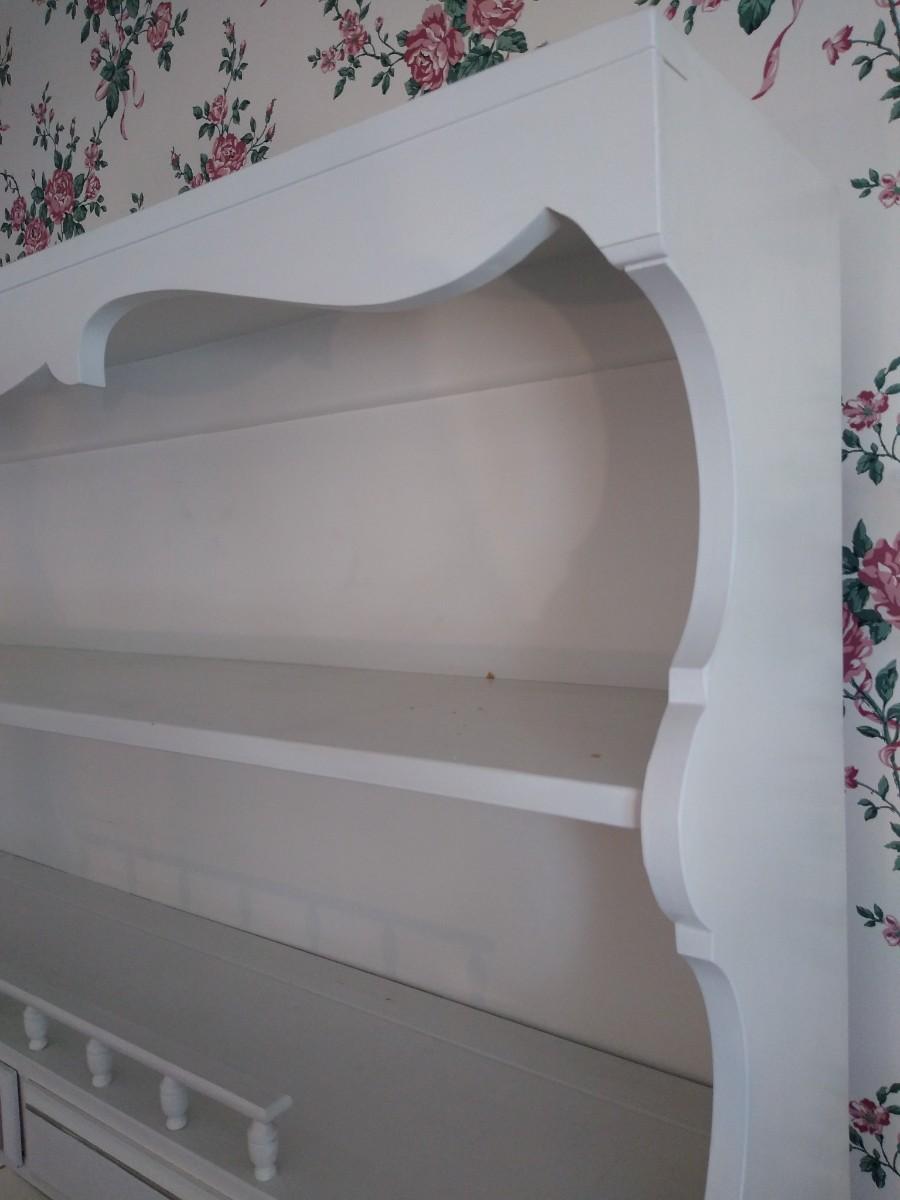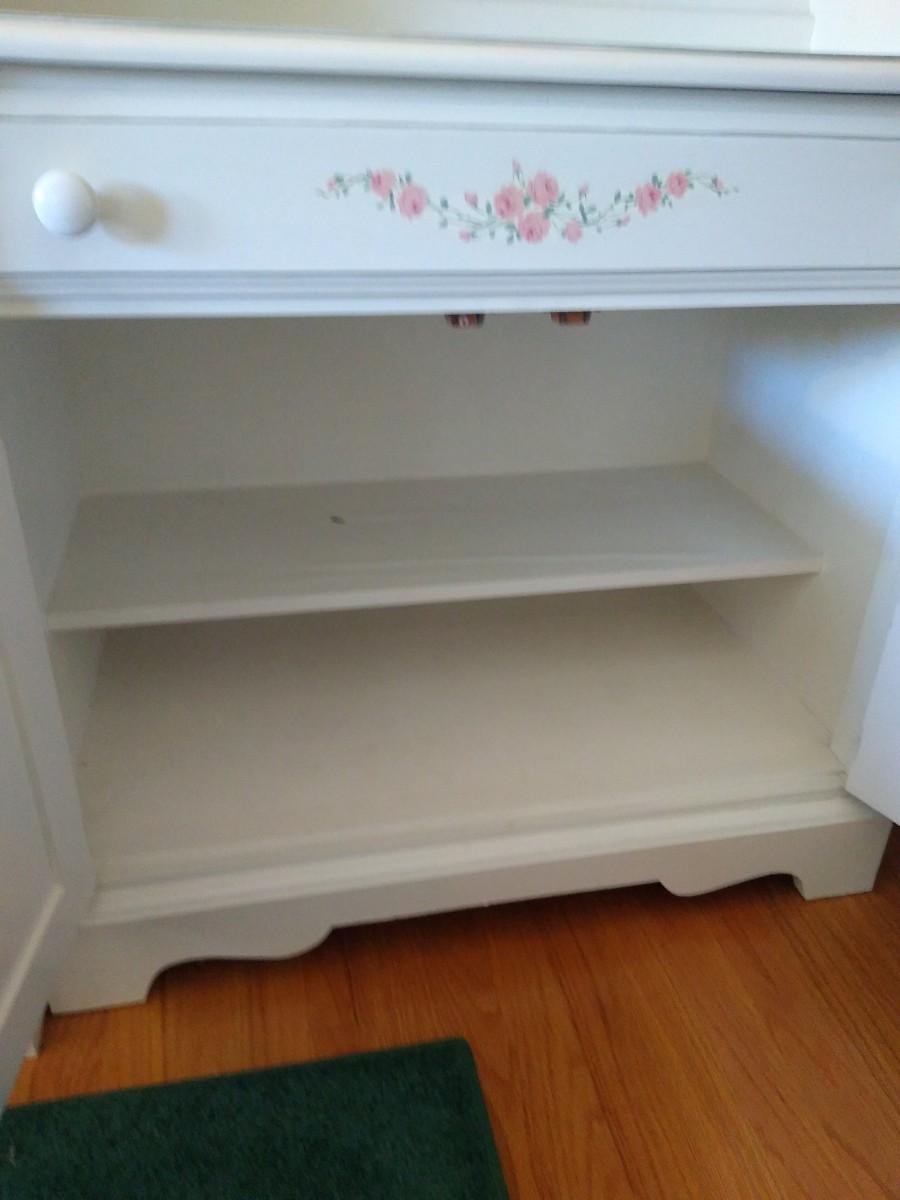 LOT 28P: White with Pink Floral Design 8 Drawer Dresser w/ Hutch and Cabinet w/ Hutch