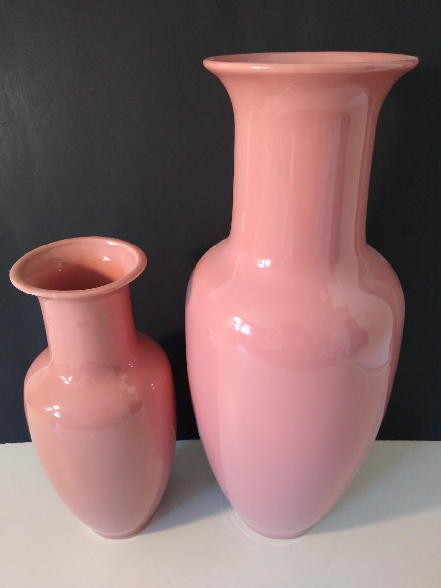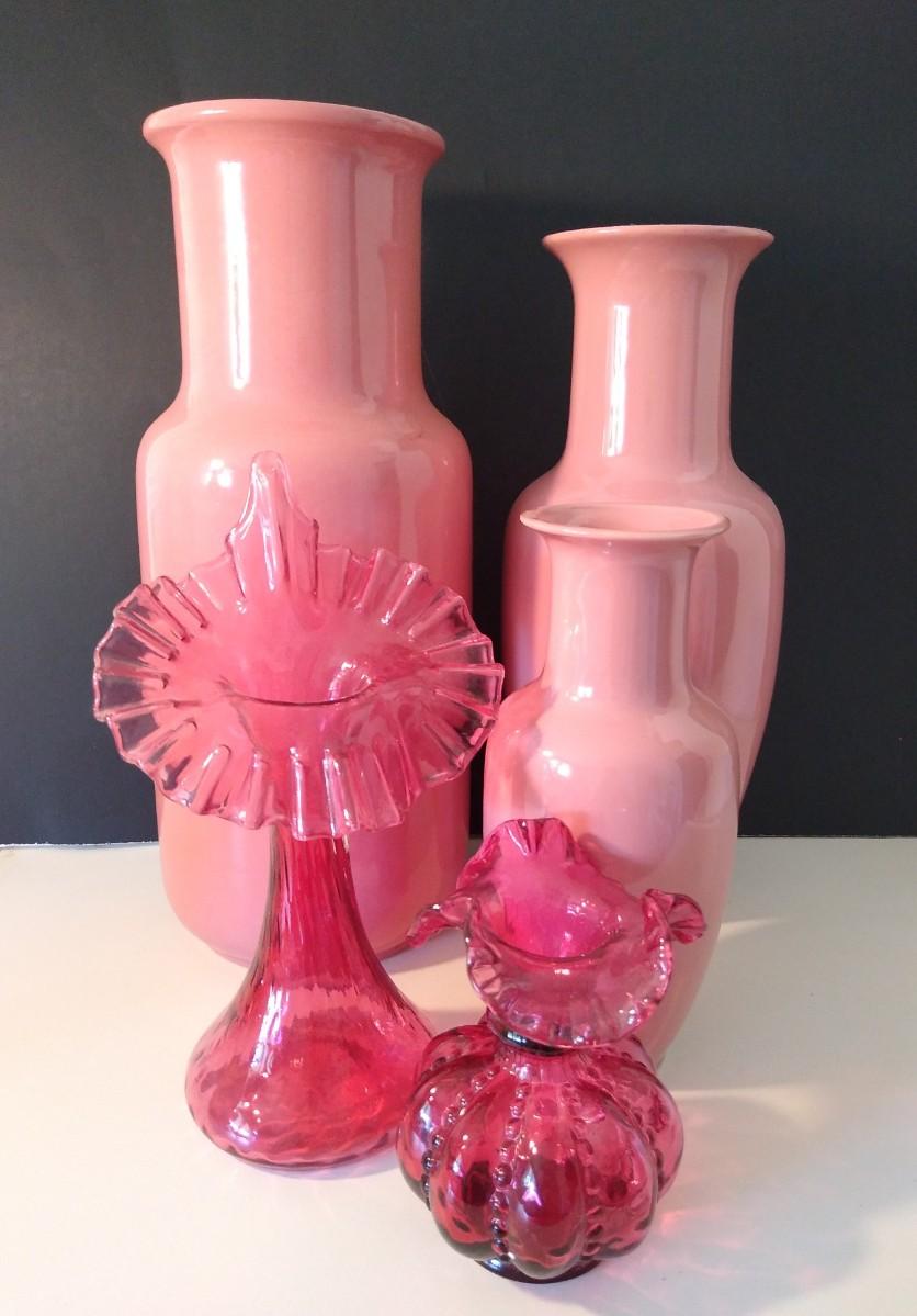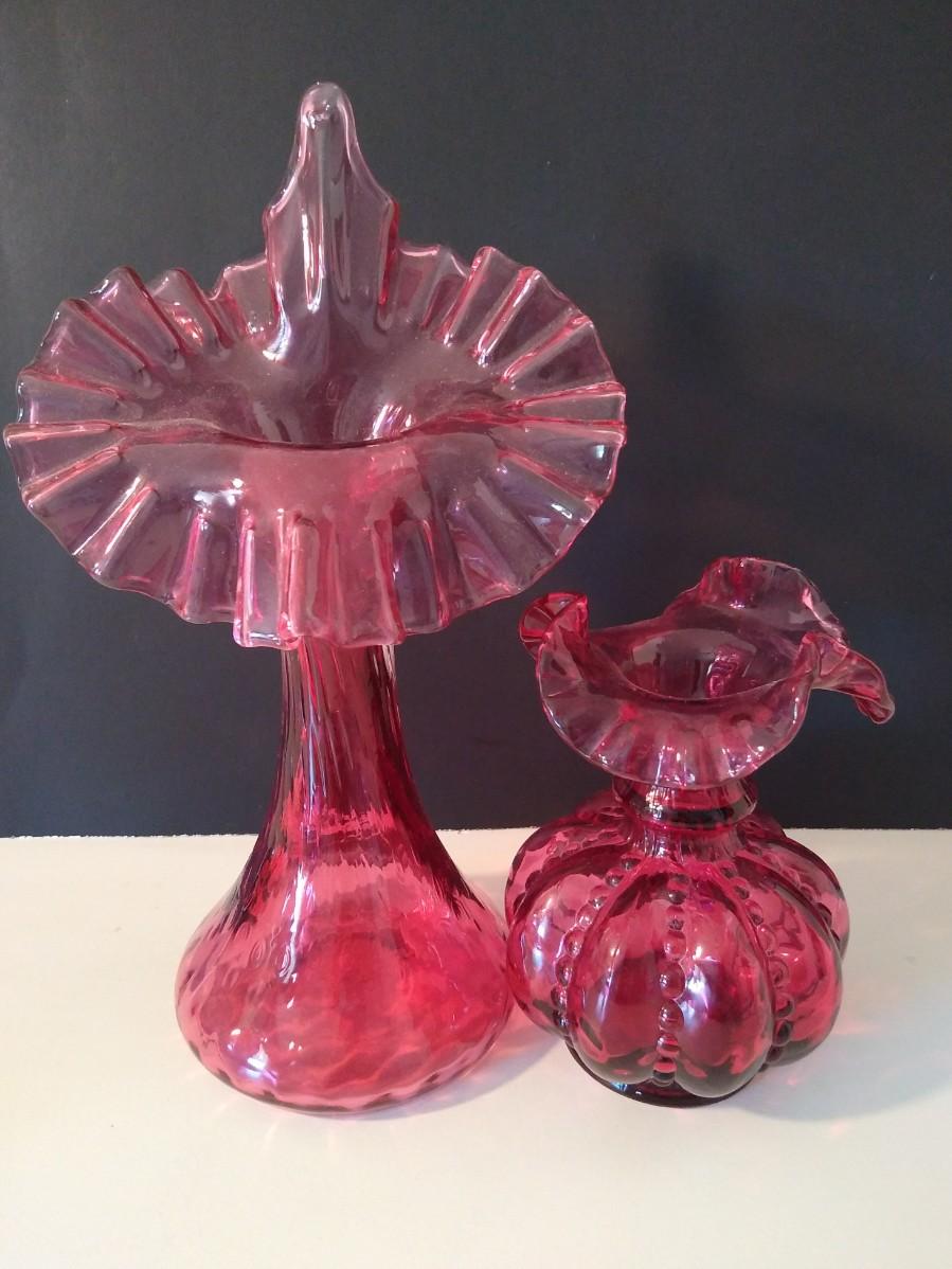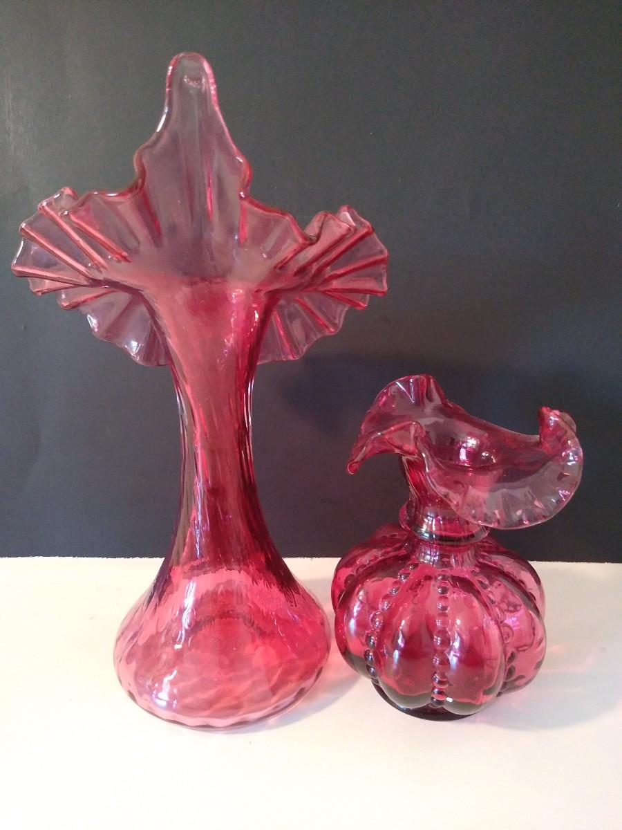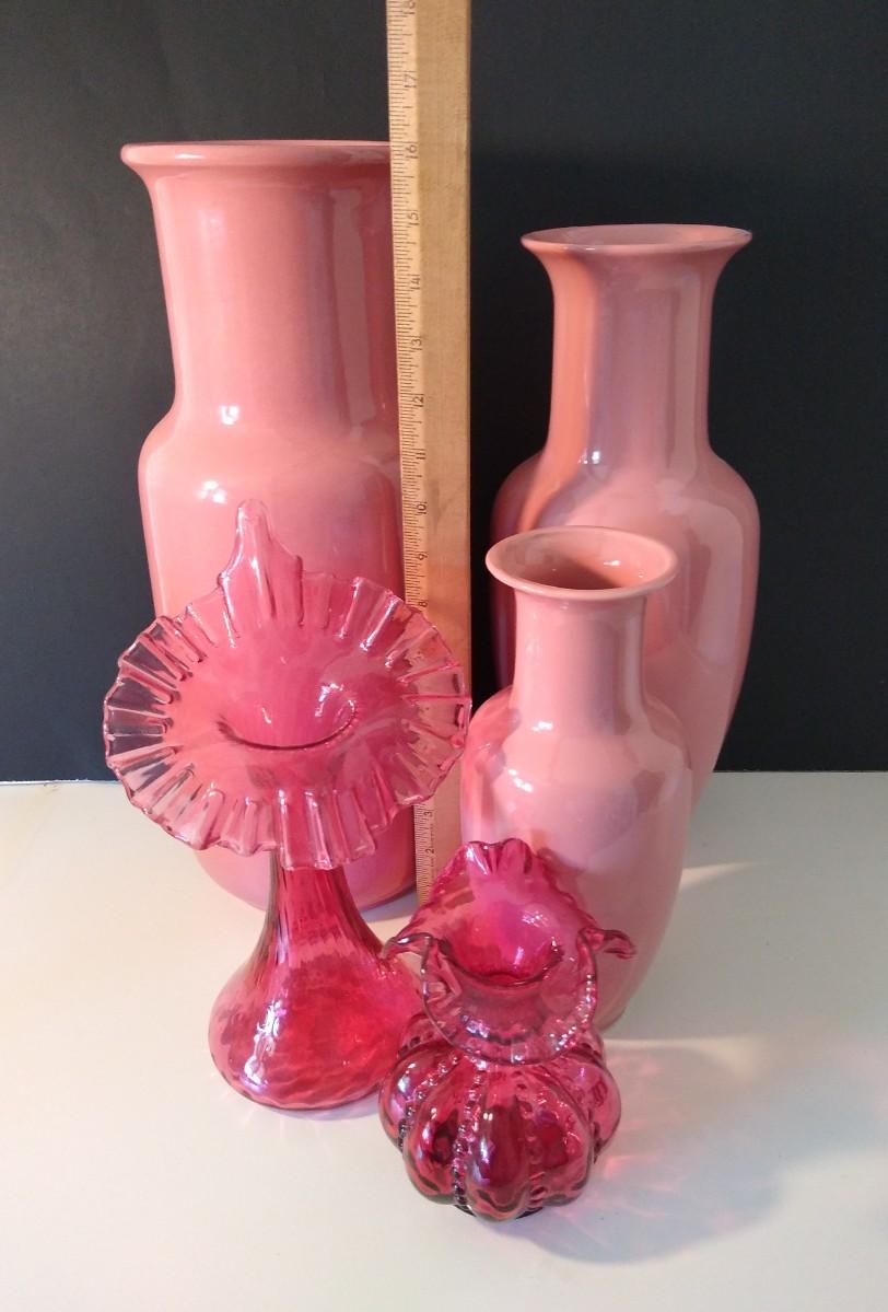 LOT 31P: Vintage Fenton Cranberry Glass Jack-in-the-Pulpit Vase, Ruffled Vase, Pink Schleurich Keramilk Ceramic Vase & More