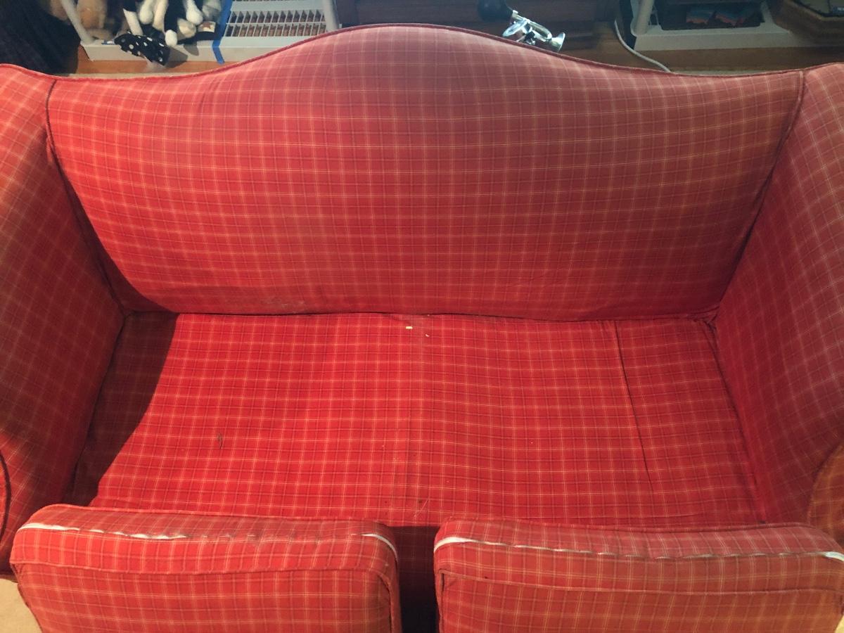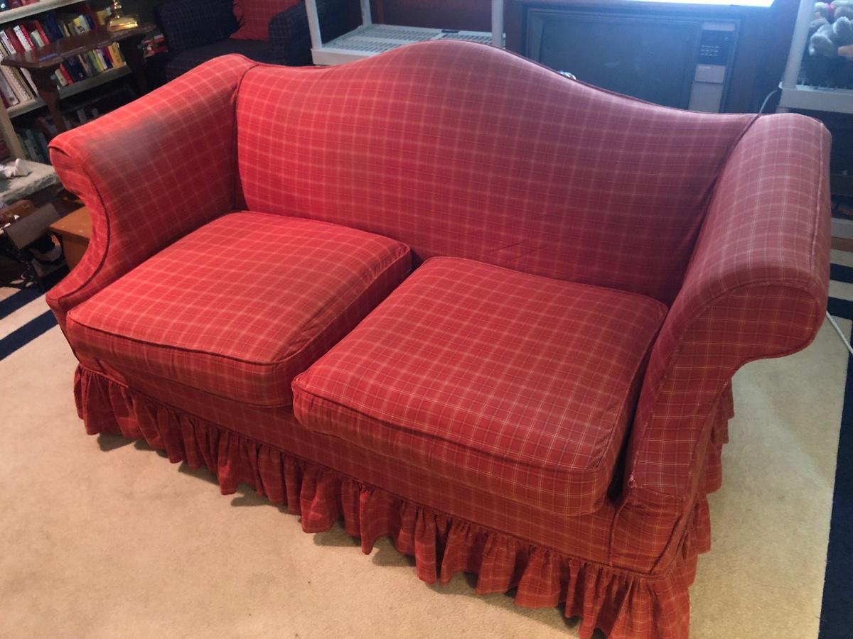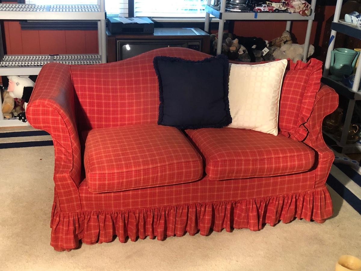 Couch measures 79W x 31D x 29H and loveseat measures 62W x 29D x 34H. Some condition issues.