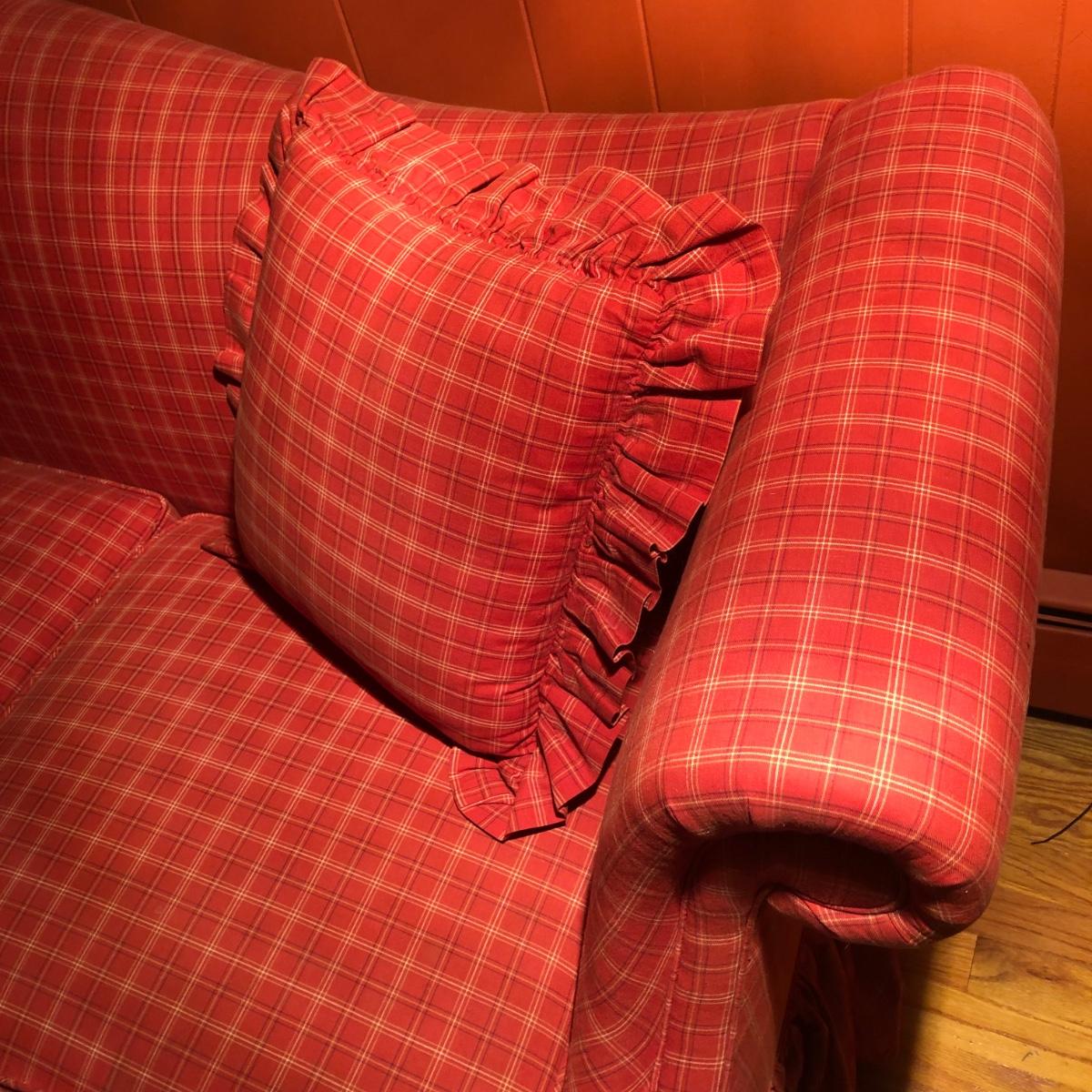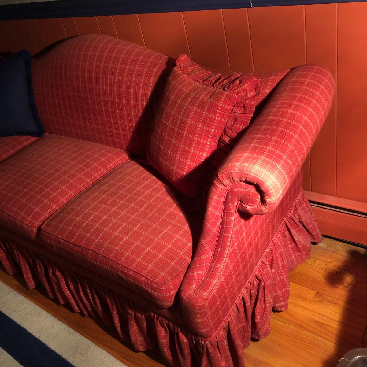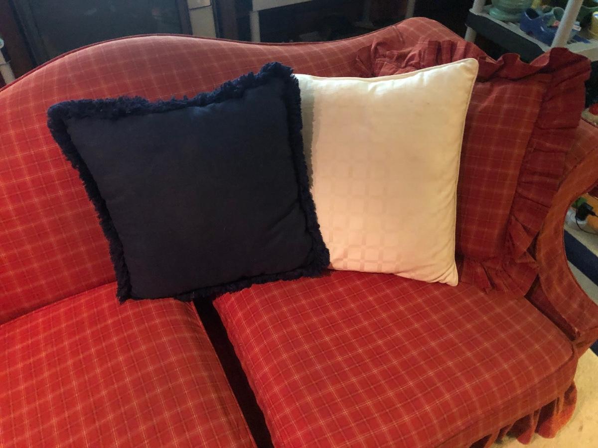 Couch measures 79W x 31D x 29H and loveseat measures 62W x 29D x 34H. Some condition issues.