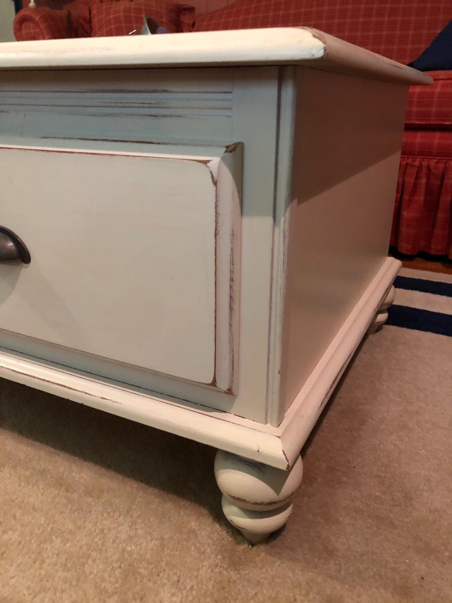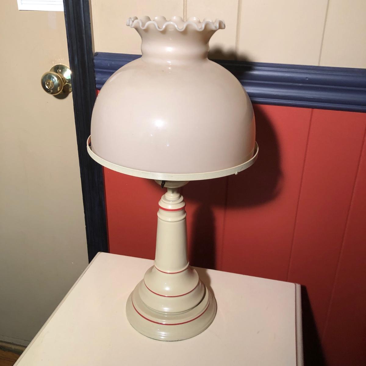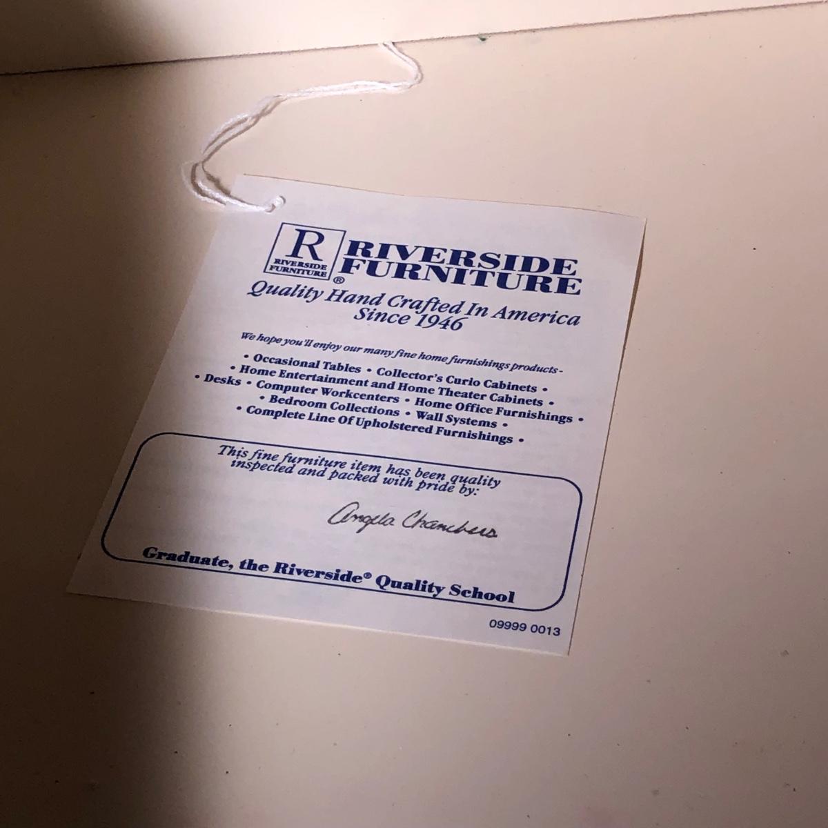 LOT 53F: Riverside Furniture End Table & Coffee Table w/ Glass Shade Lamp