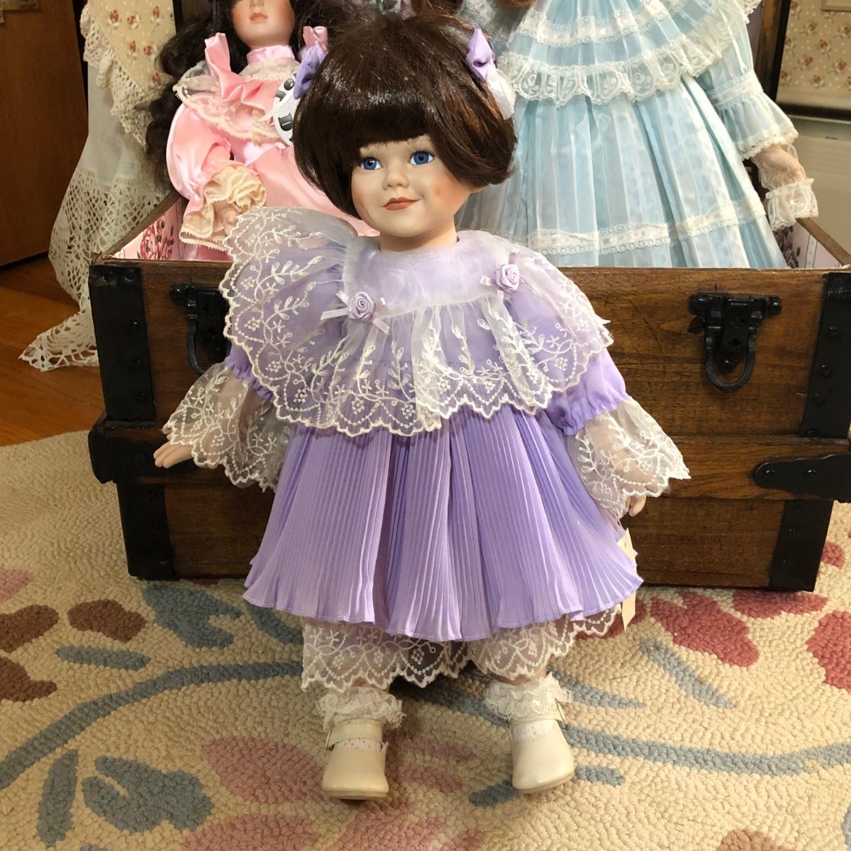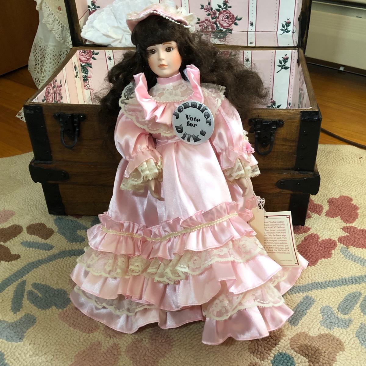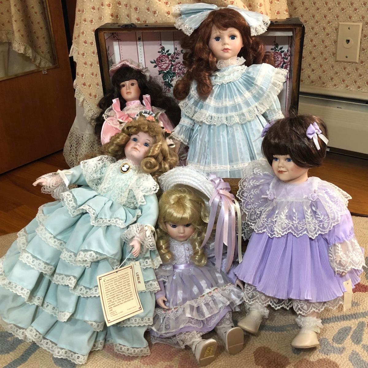 LOT 72C: Vintage Victorian Dolls w/ Miniature Chest - Dynasty Doll Collection, 1990 Brinn's "Melody, Seymour Mann "Louise" & More