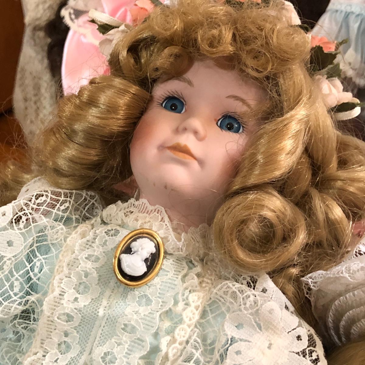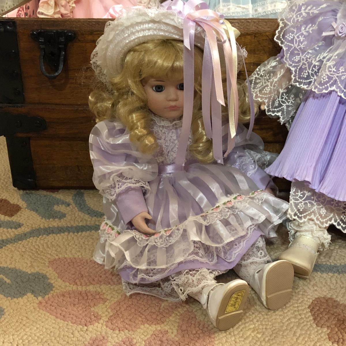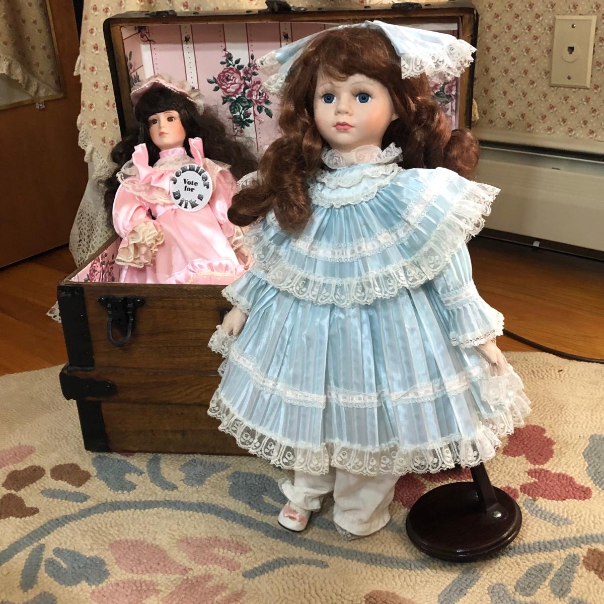 LOT 72C: Vintage Victorian Dolls w/ Miniature Chest - Dynasty Doll Collection, 1990 Brinn's "Melody, Seymour Mann "Louise" & More