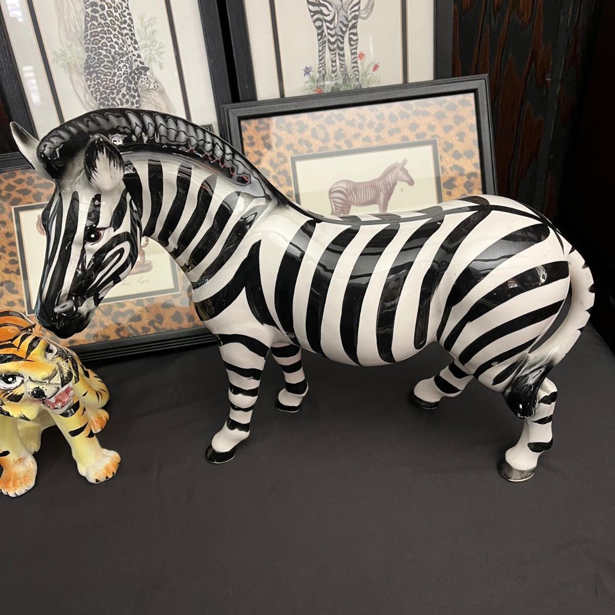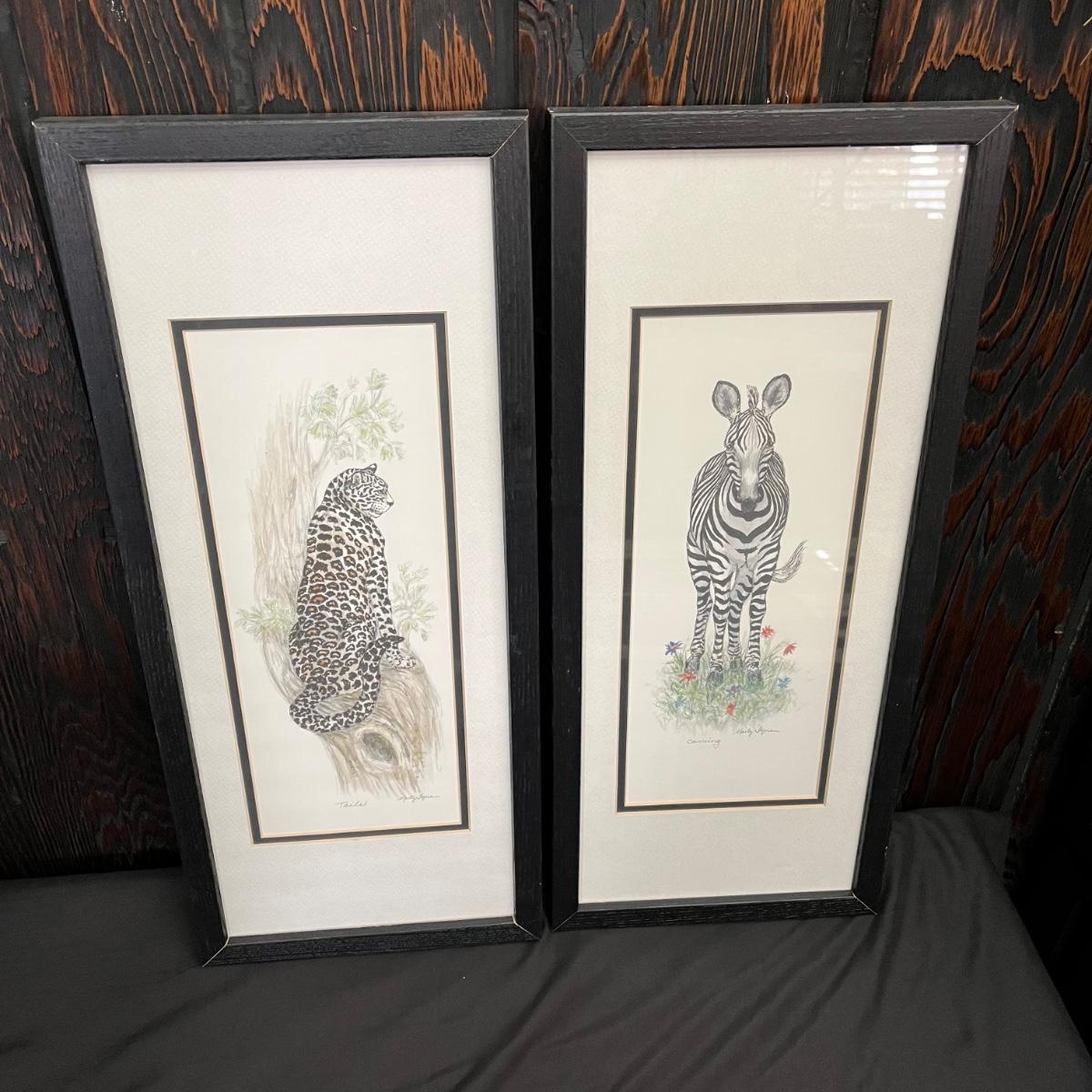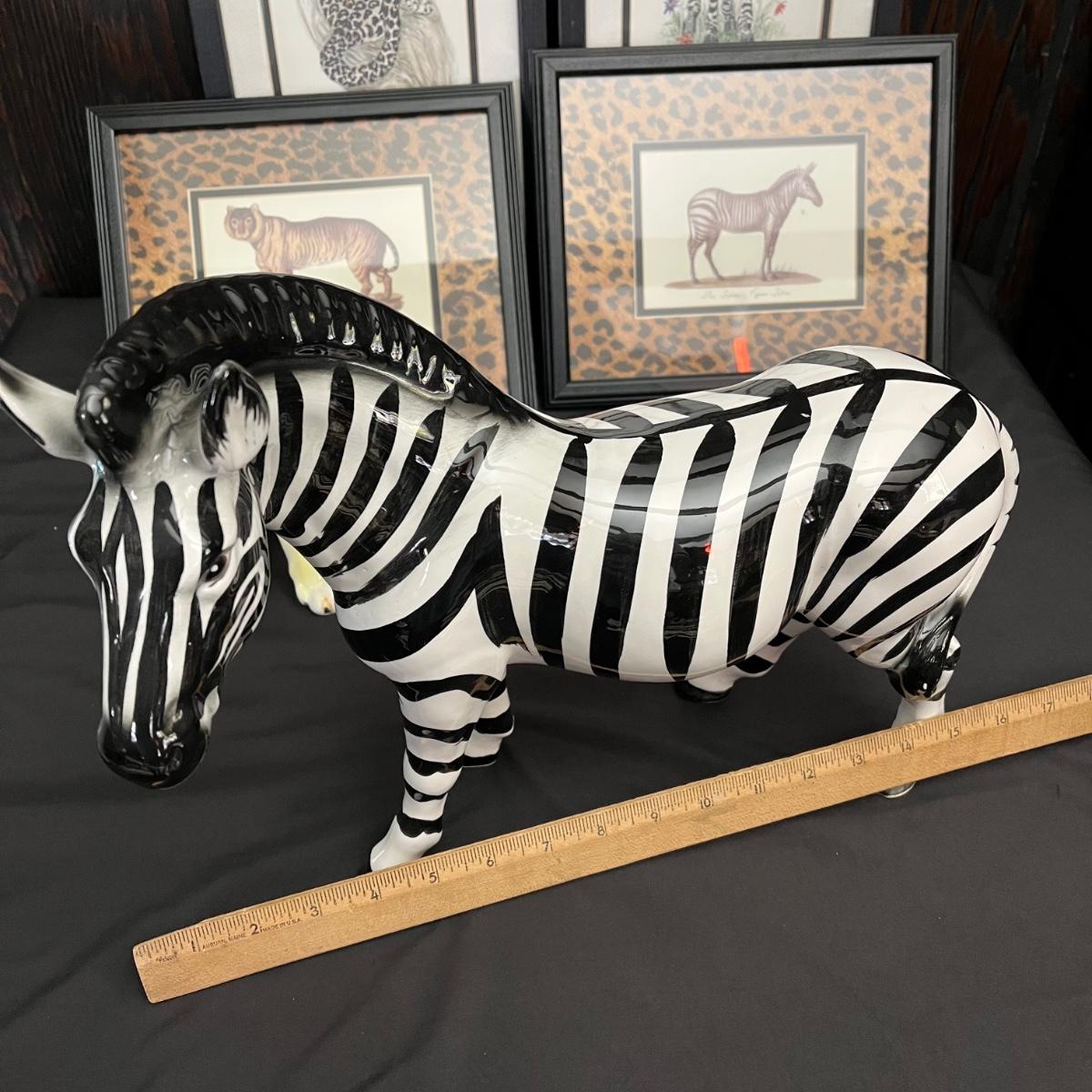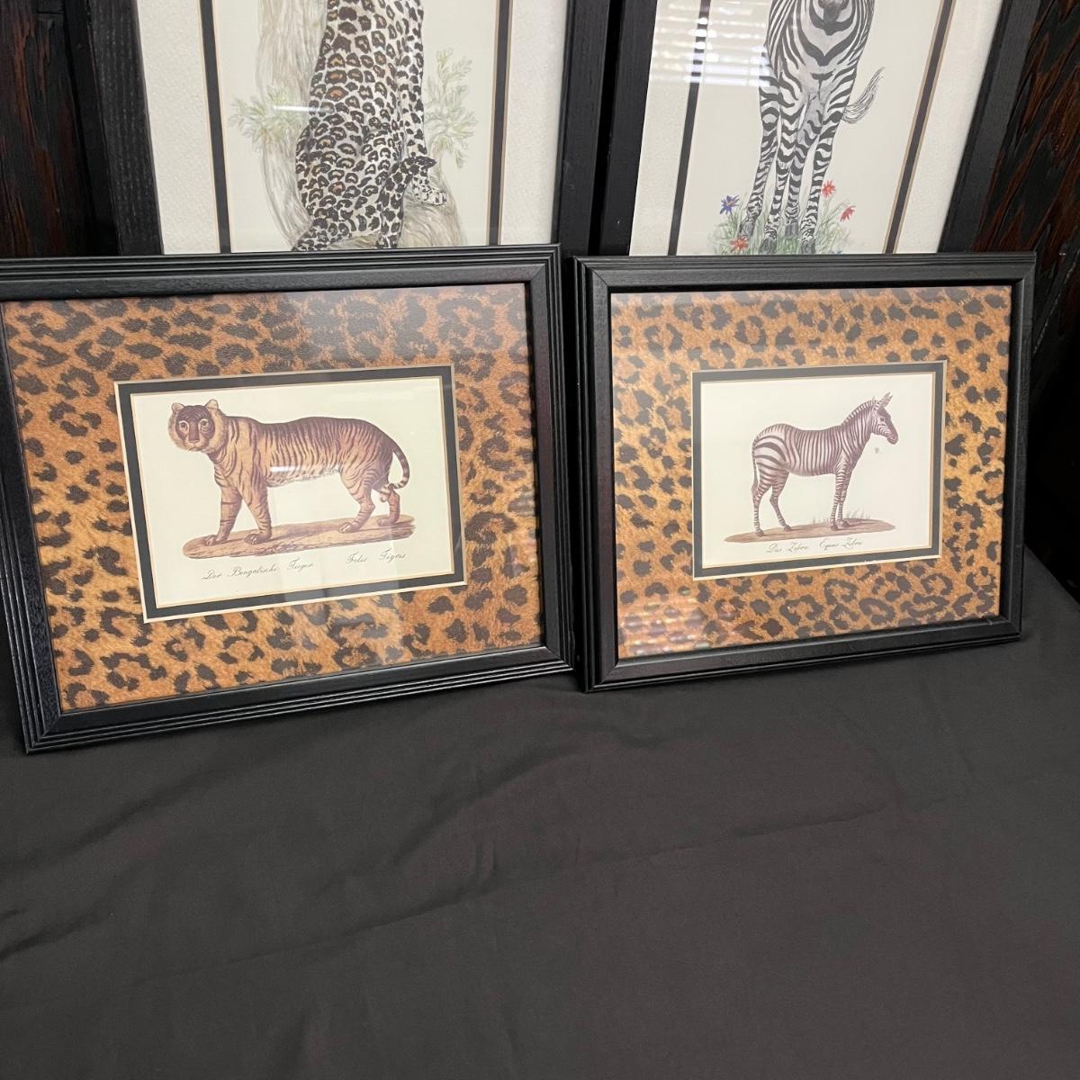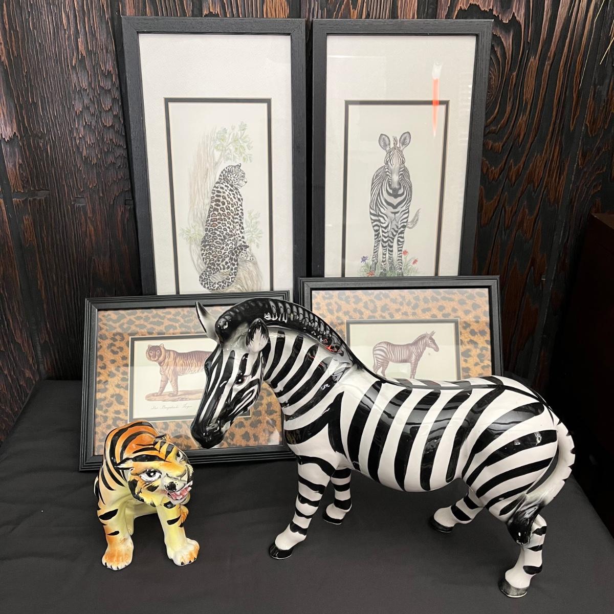 LOT 84Z: Animal Themed Room Decor - Prints, Figurines, Zebra, Tiger, Leopard