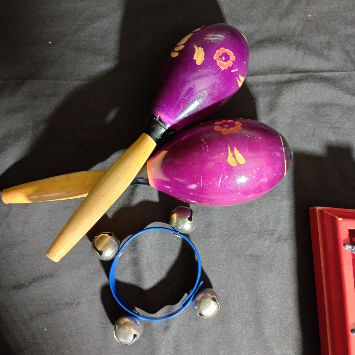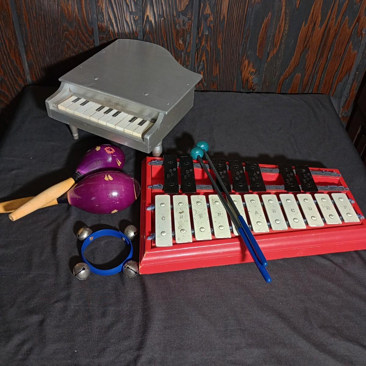 LOT 90Z: Musical Instruments: Schoenhut Mini Piano, Maracas, Bells and Xylophone