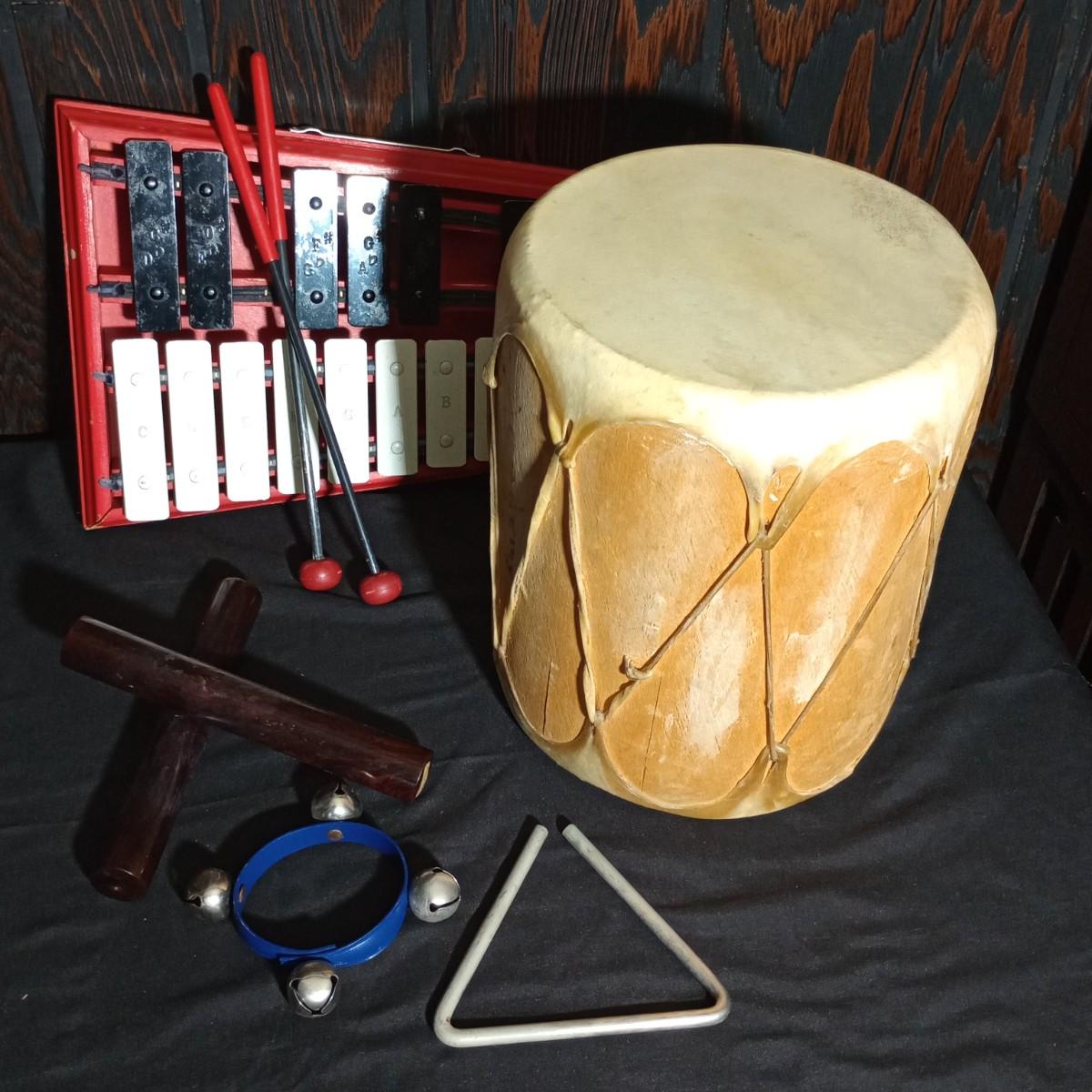 LOT 93Z: Musical Instruments for Children - Bells, Drum, Triangle and More
