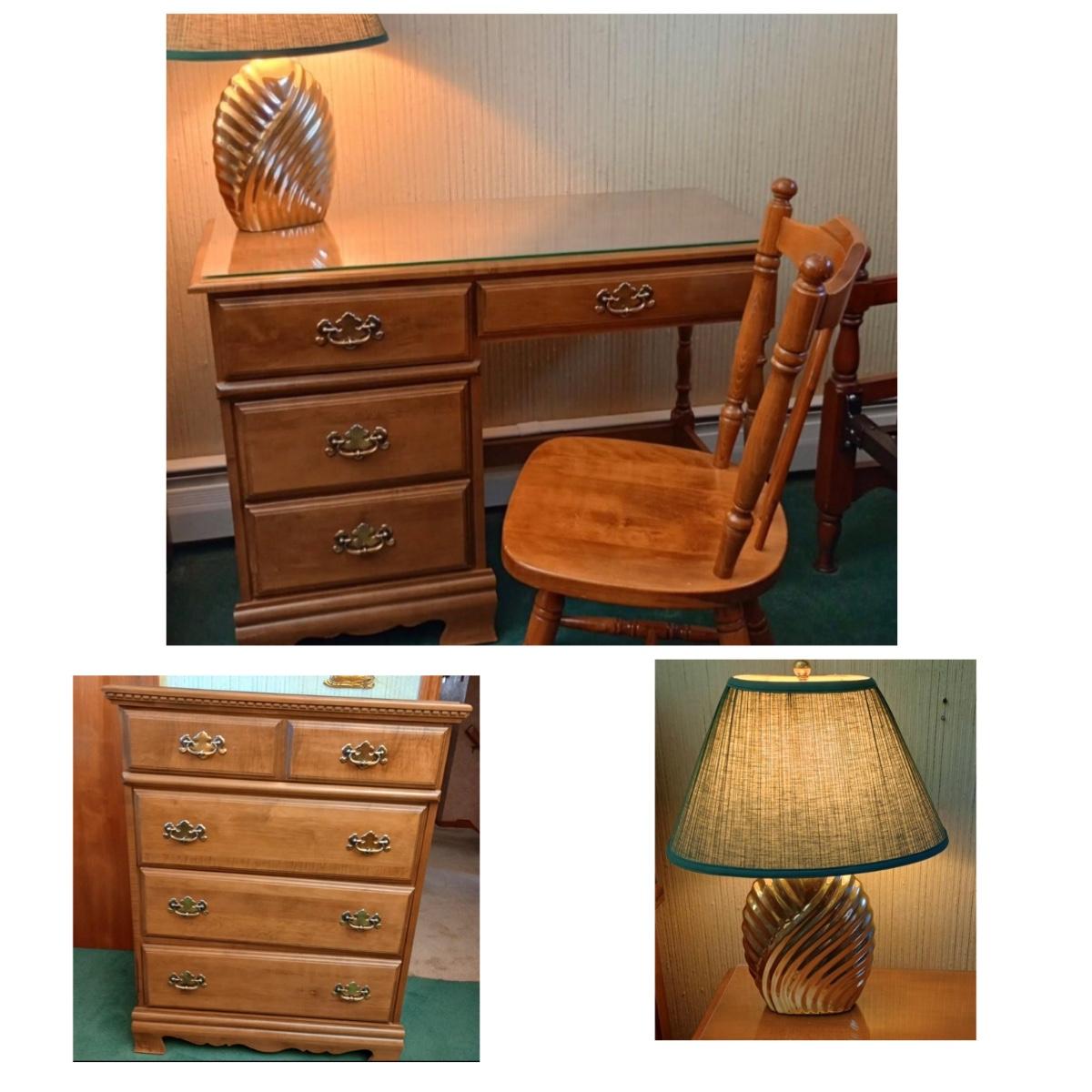 LOT 99D: Dresser, Desk, Lamp and Chair