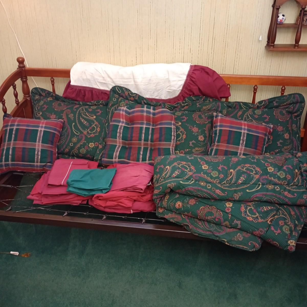 LOT 108D: Wood Day Bed Frame w/ Bedding