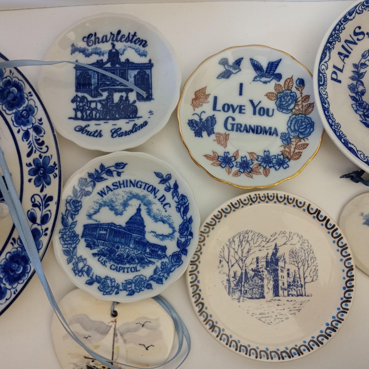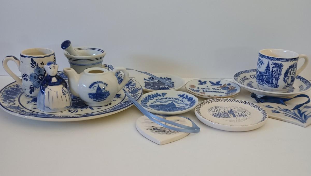LOT 109M: Blue and White Plates, Cups, and More