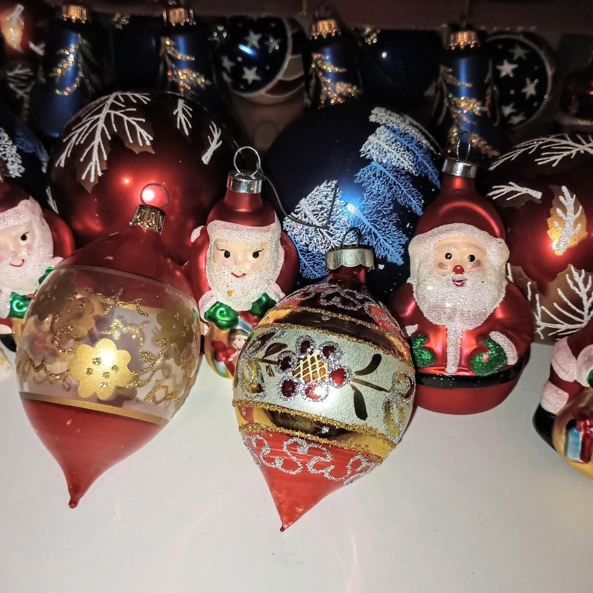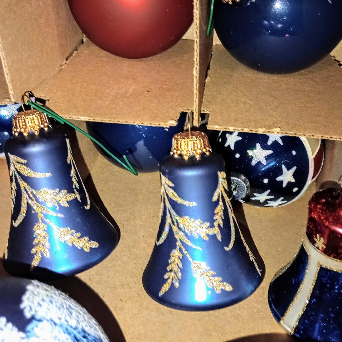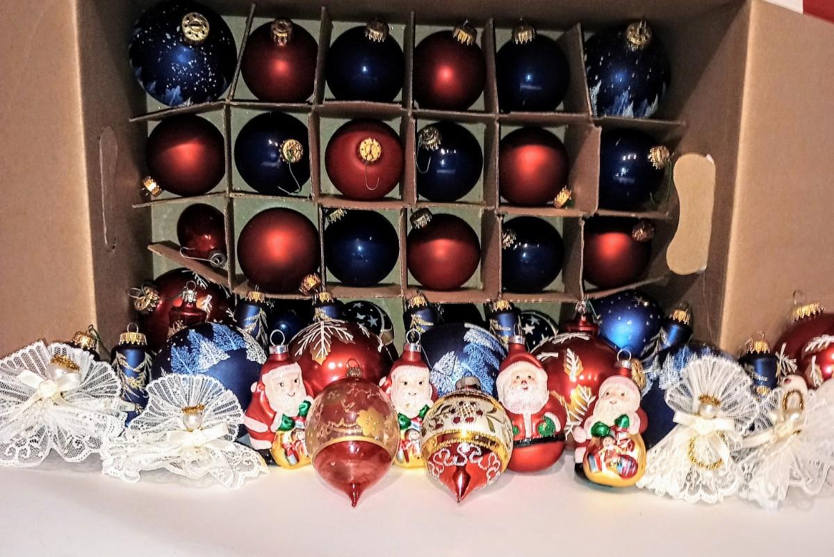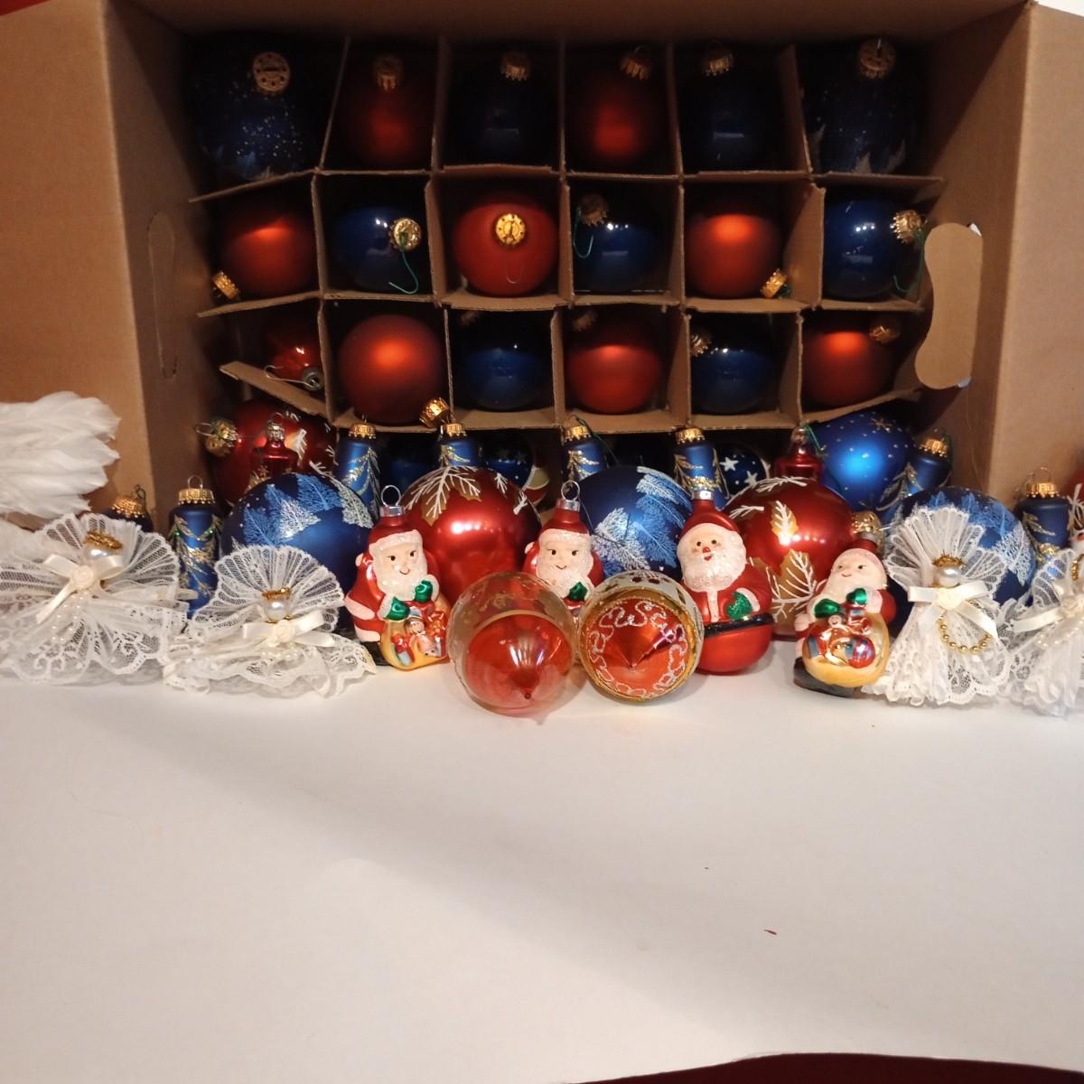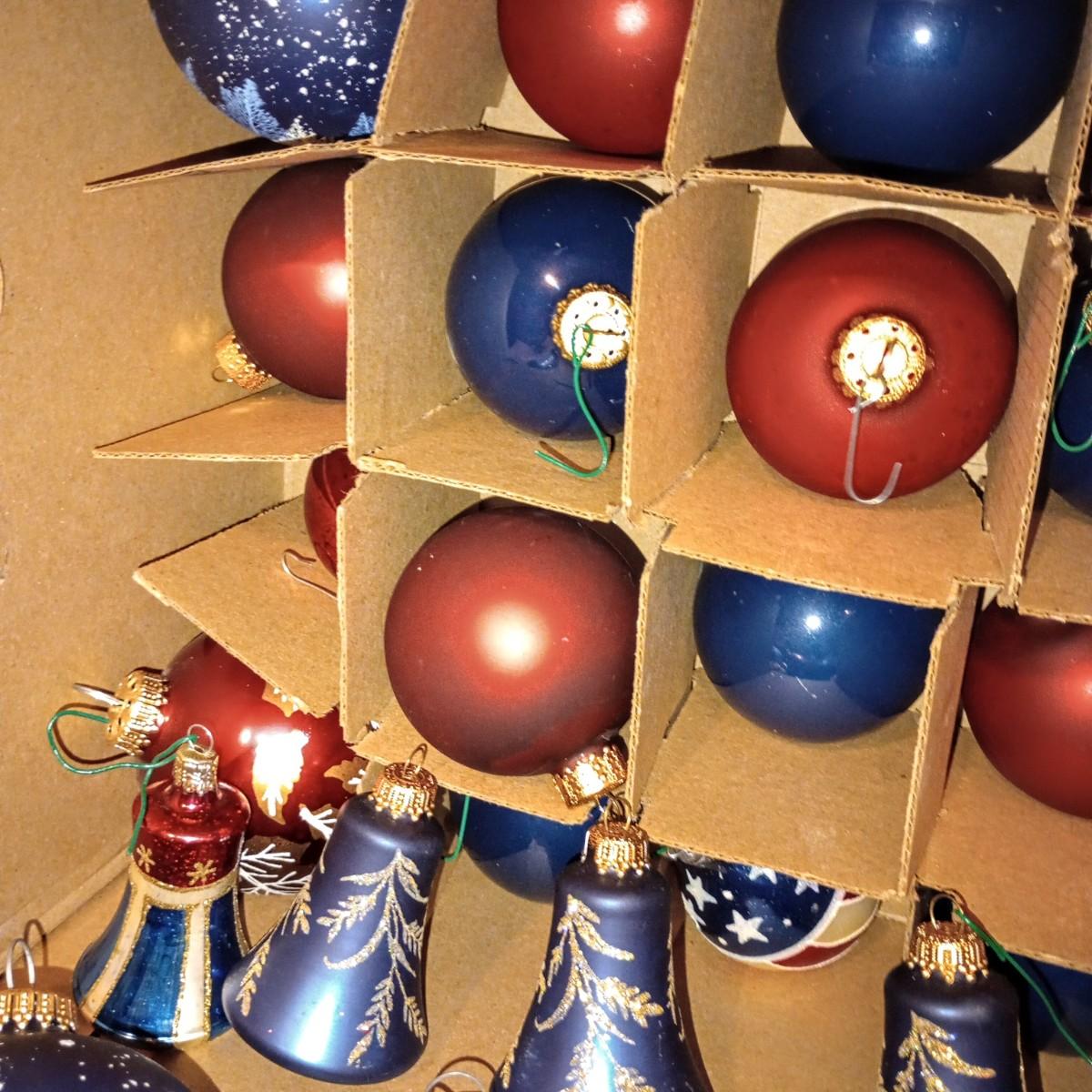 LOT 113B: Box of Red, White, and Blue Christmas Ornaments