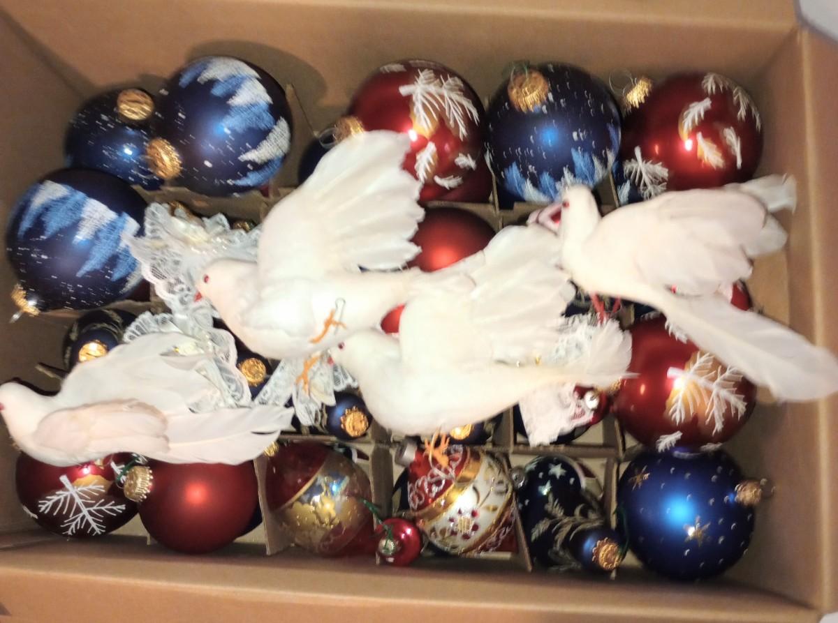 LOT 113B: Box of Red, White,  and Blue Christmas Ornaments