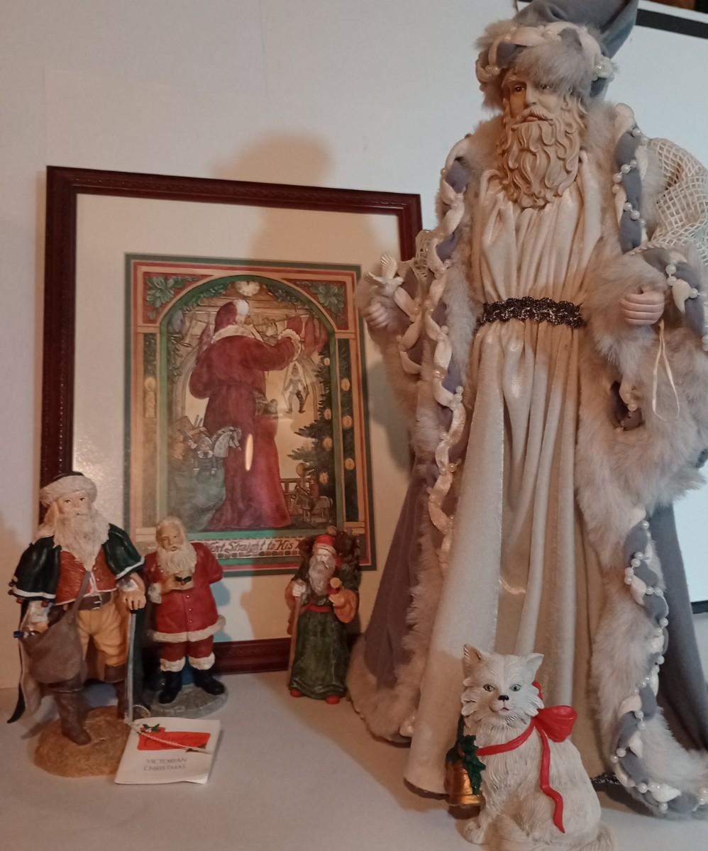 LOT 116B: Large Russian Santa, Santa Picture, and Christmas  Figurines