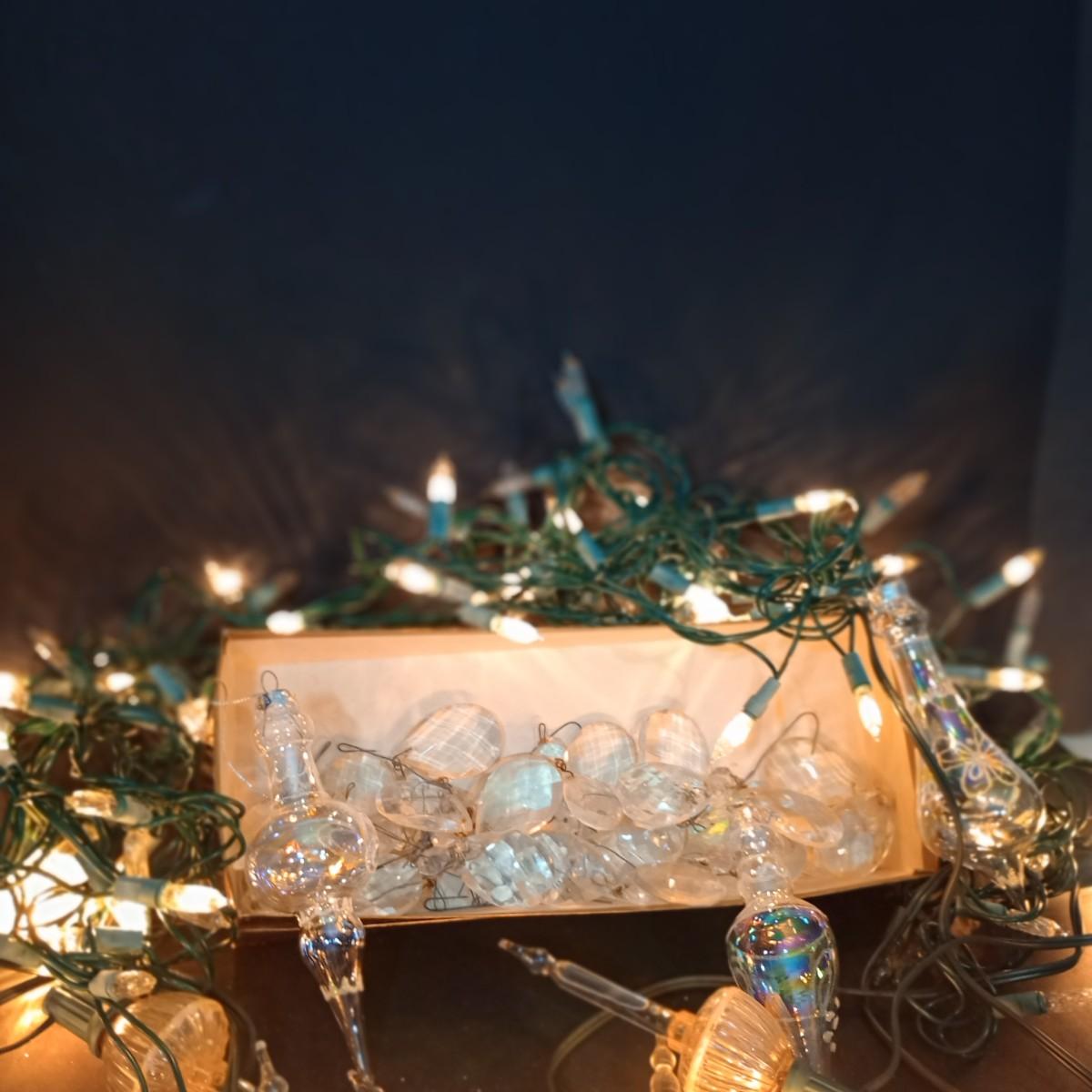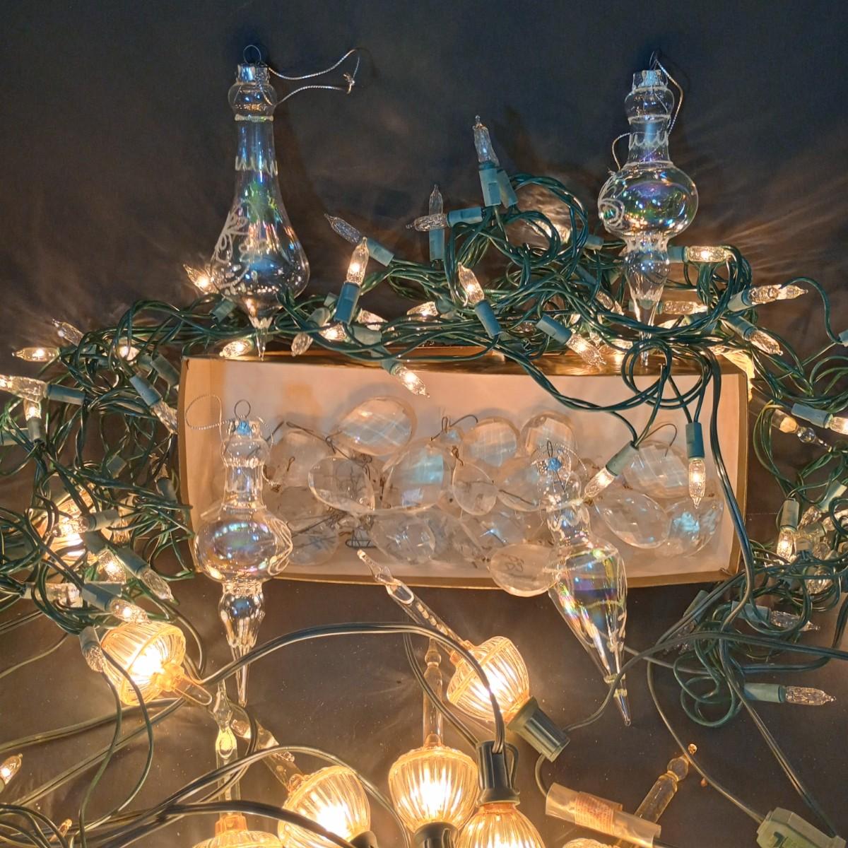 LOT 120B: A Sparkling Christmas- Twinkle Lights, Bubble Lights, Gorgeous Hand Blown Ornament, and Chandelier Crystals
