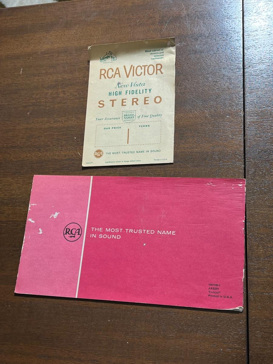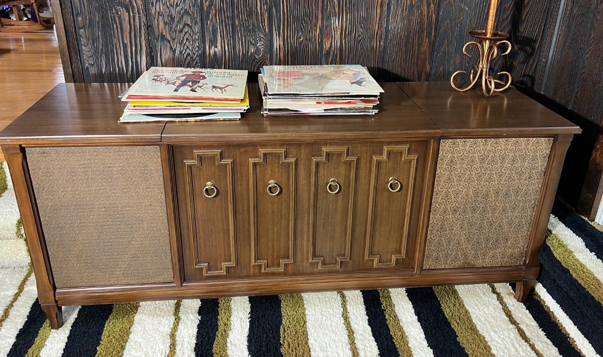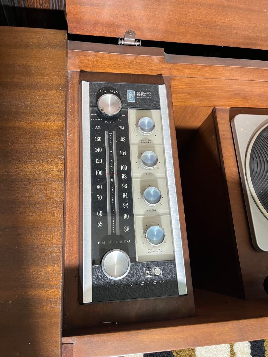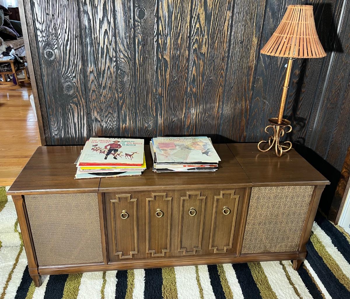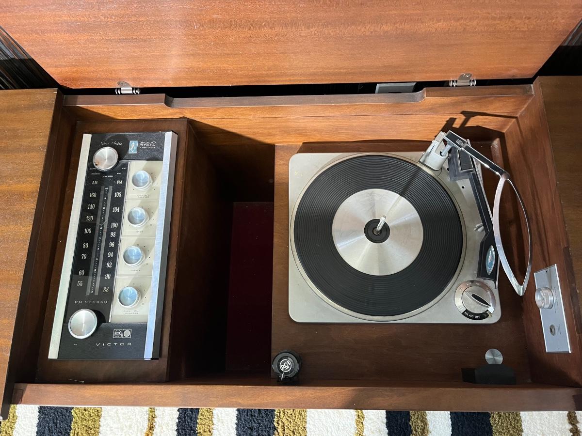 LOT 150Z: Vintage RCA Victor Victrola Console Stereo Radio Record Player w/ Records and Lamp