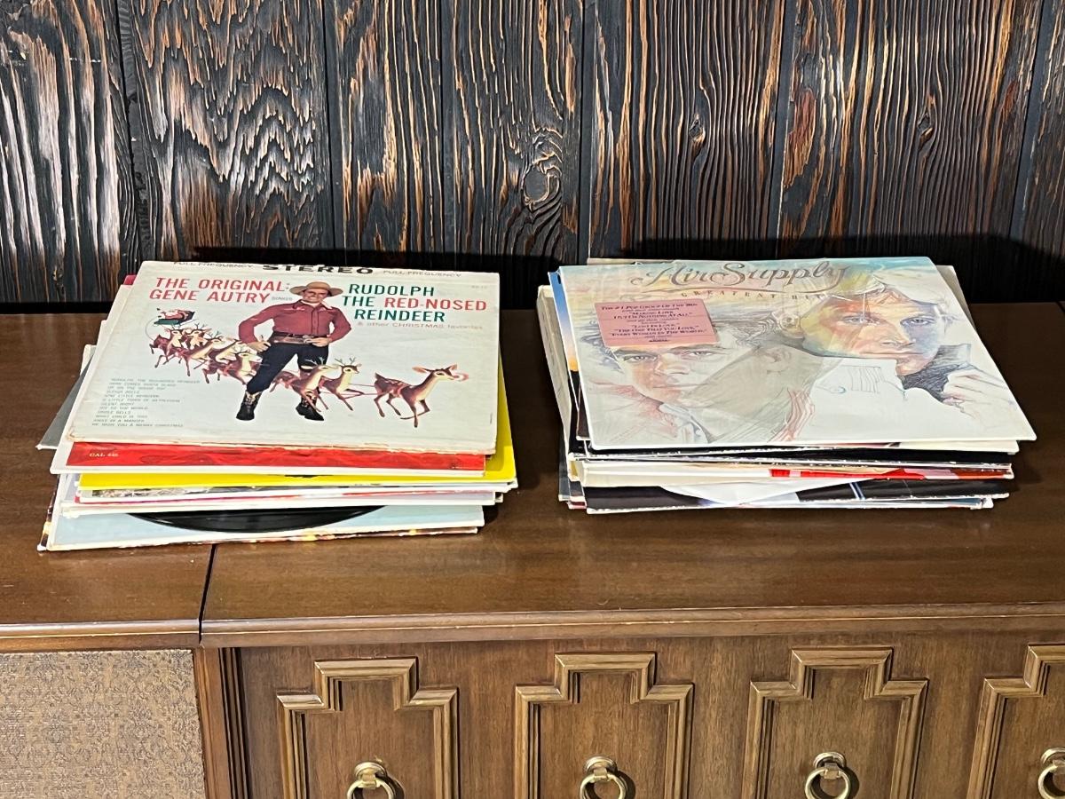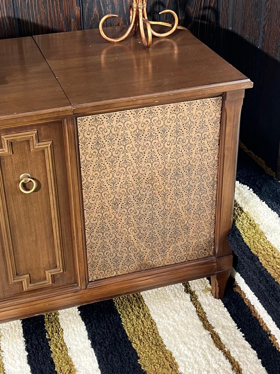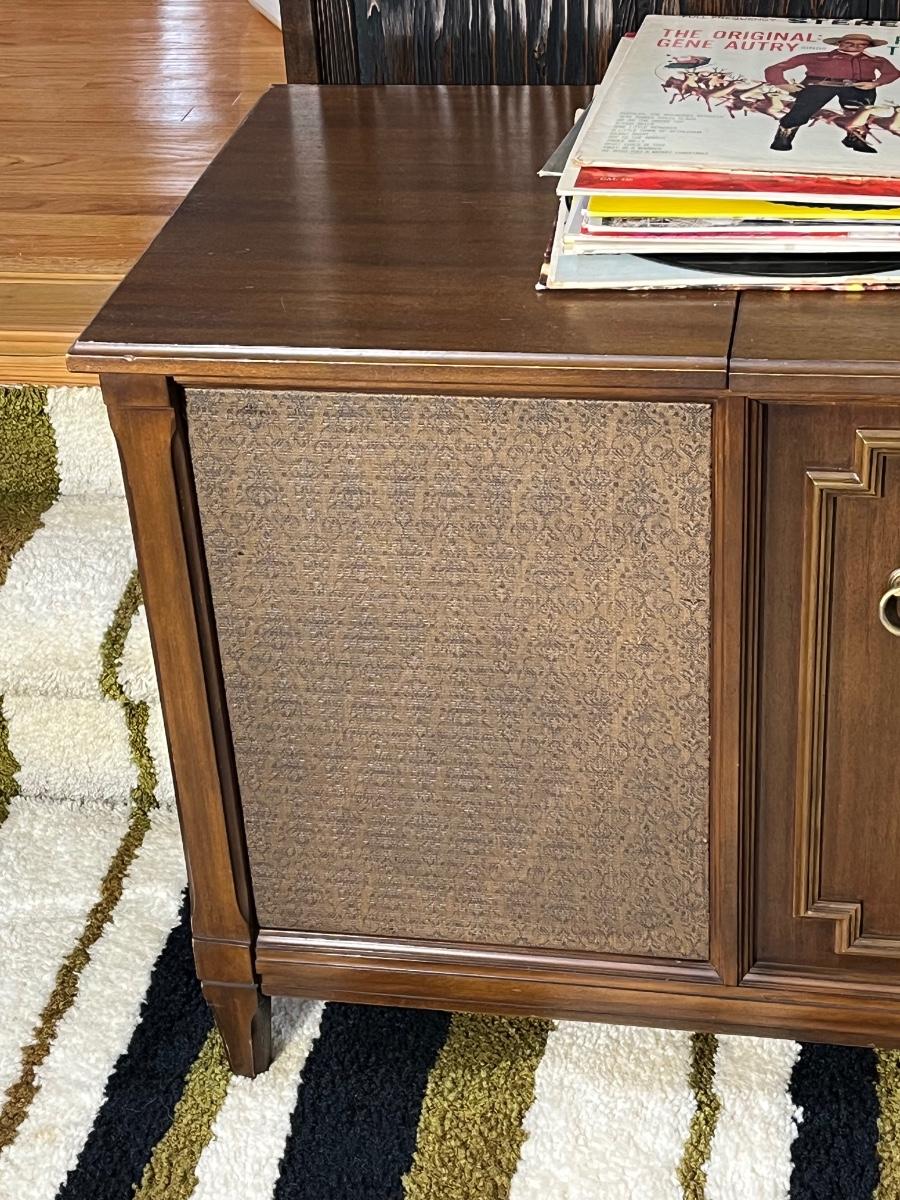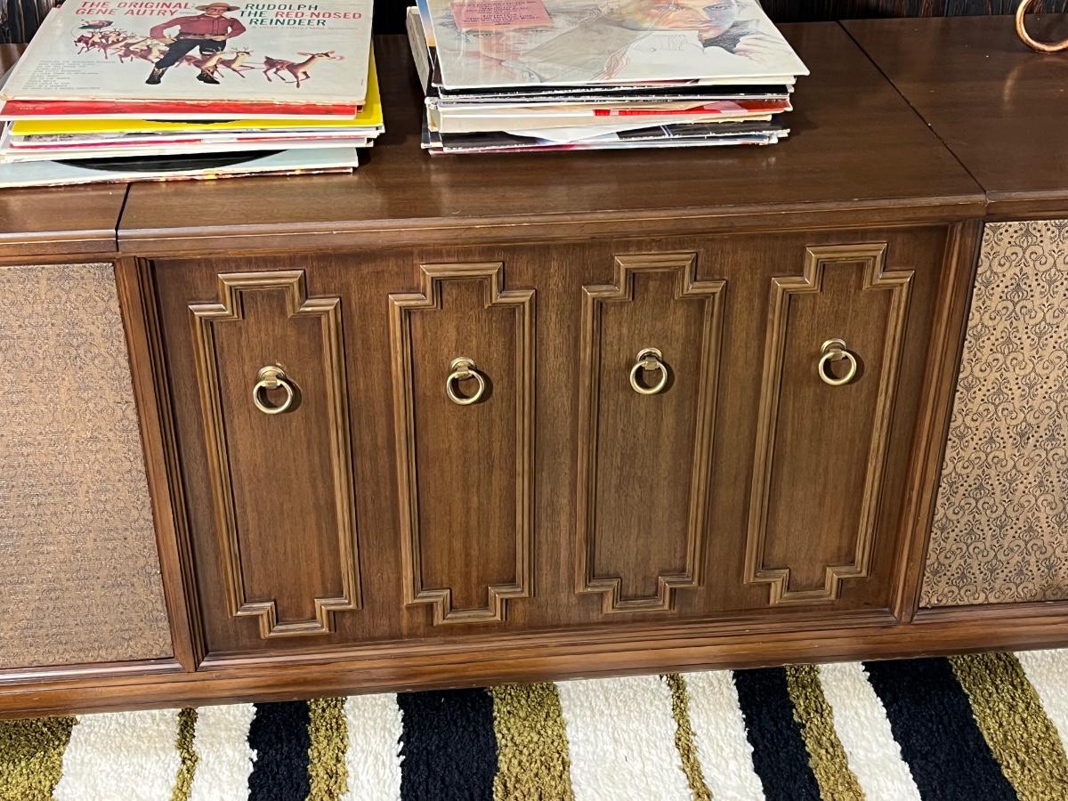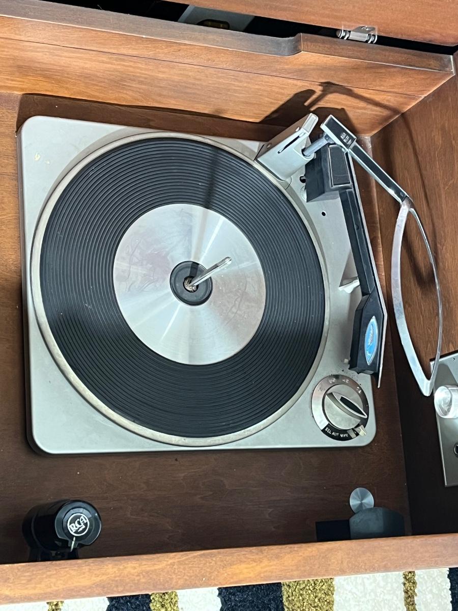 LOT 150Z: Vintage RCA Victor Victrola Console Stereo Radio Record Player w/ Records and Lamp