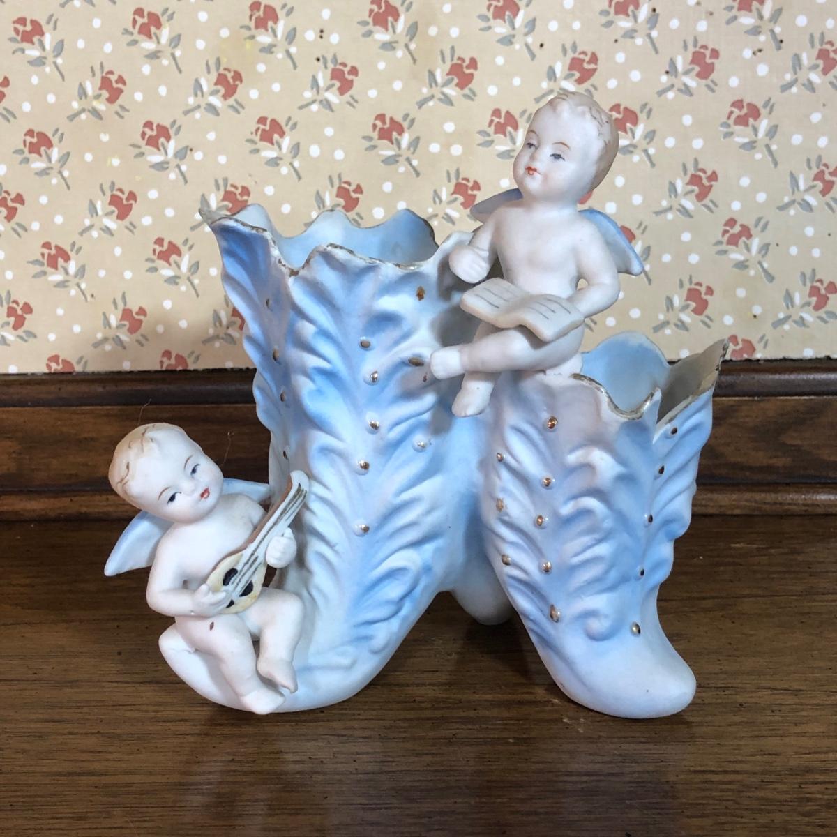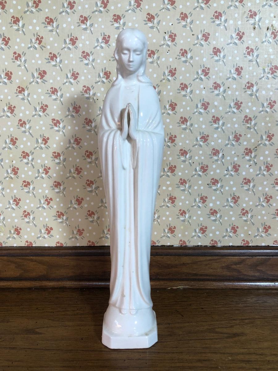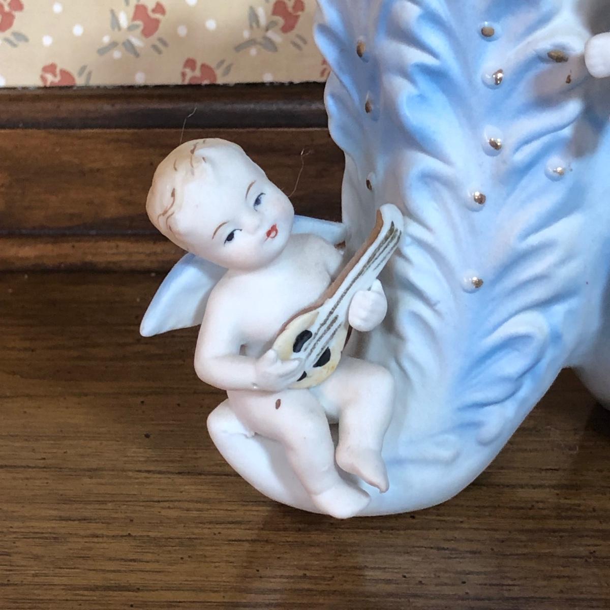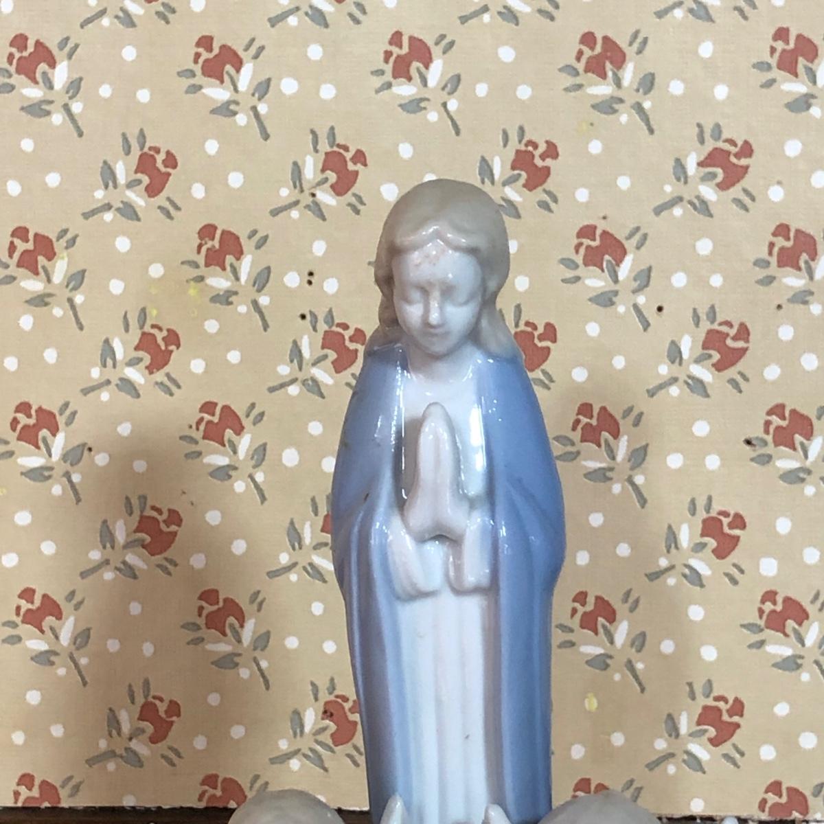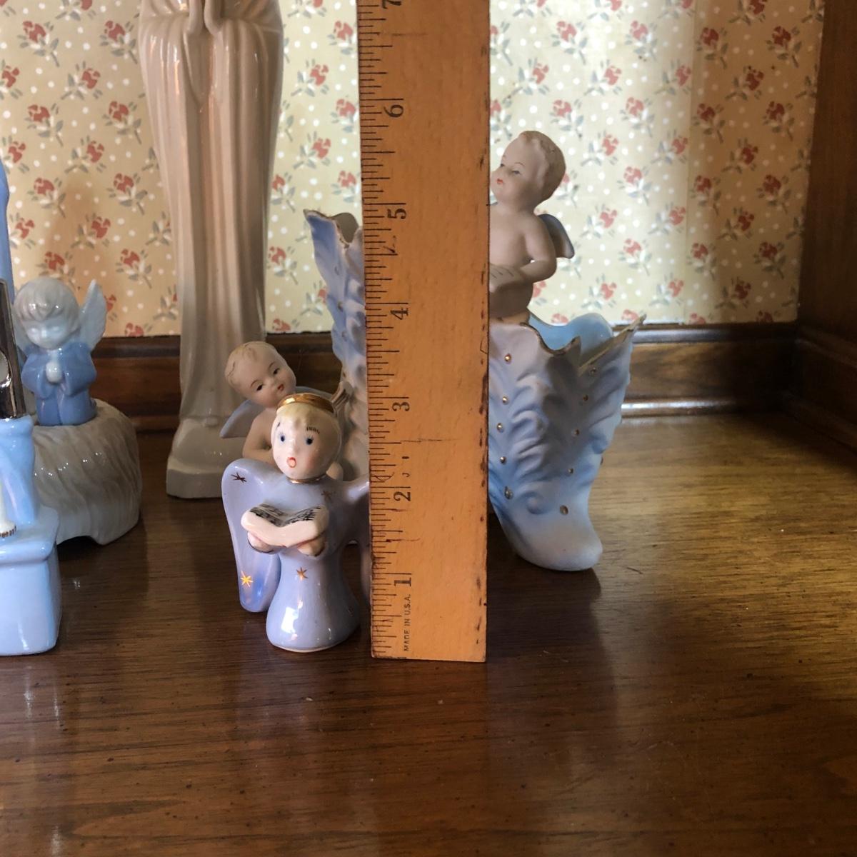 LOT 153C: Porcelain Figures - Praying Madonna, Vintage Mary w/Angels Music Box, Cherub Vase, Piano & Choir Angel