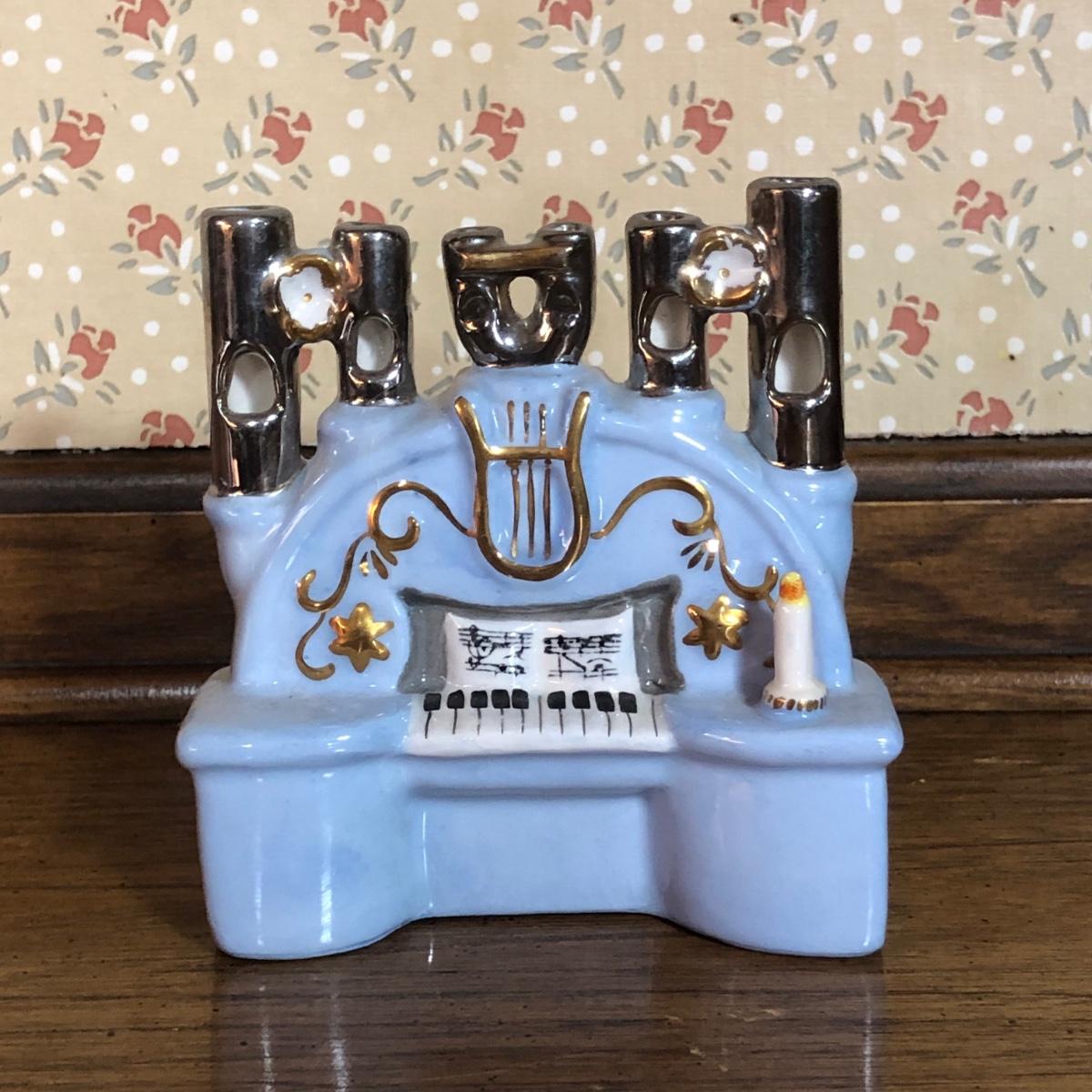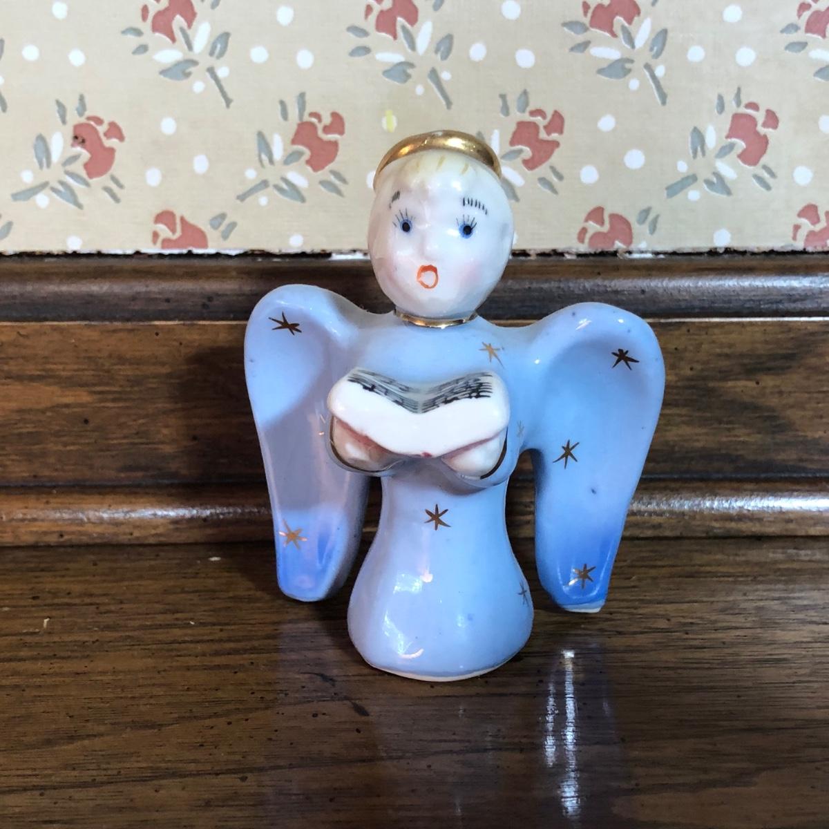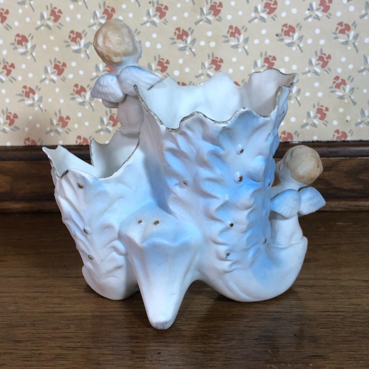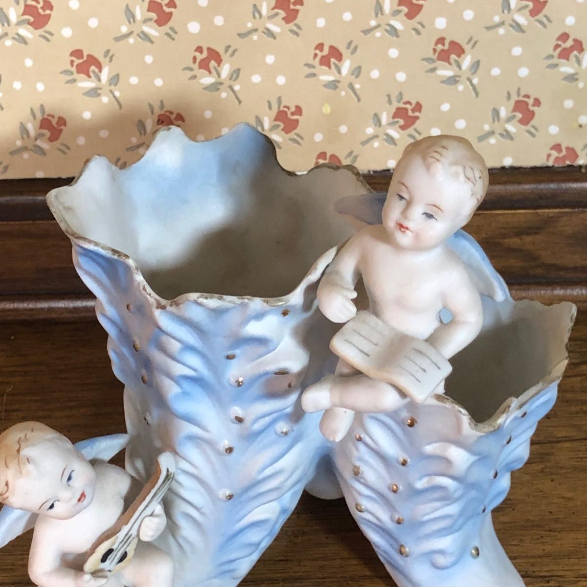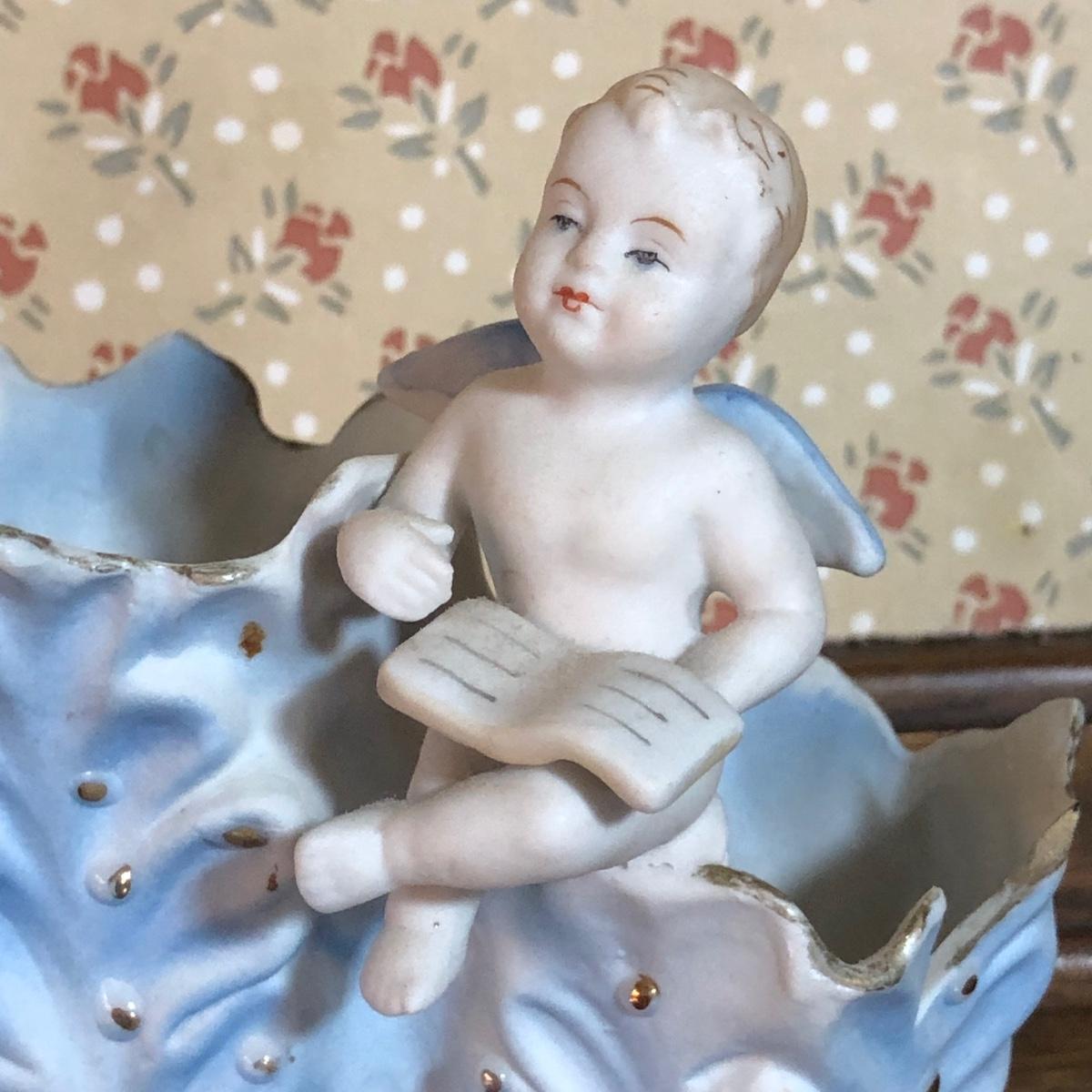 LOT 153C: Porcelain Figures - Praying Madonna, Vintage Mary w/Angels Music Box, Cherub Vase, Piano & Choir Angel