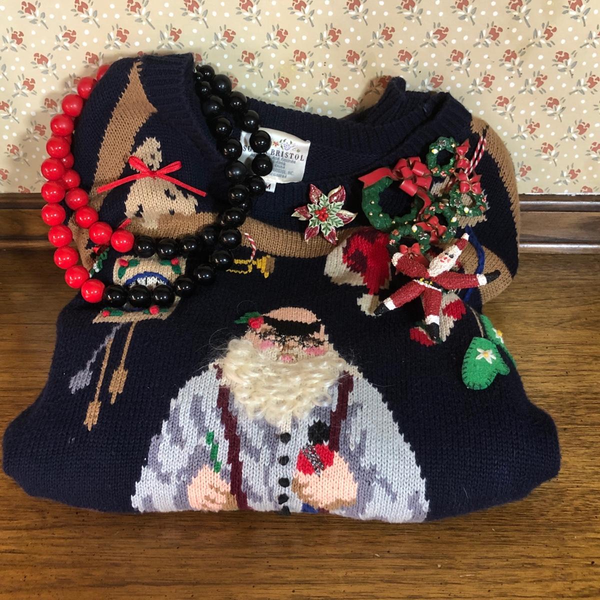 LOT 158C: Susan Bristol Santa Sweater w/ Christmas Holiday Accessories