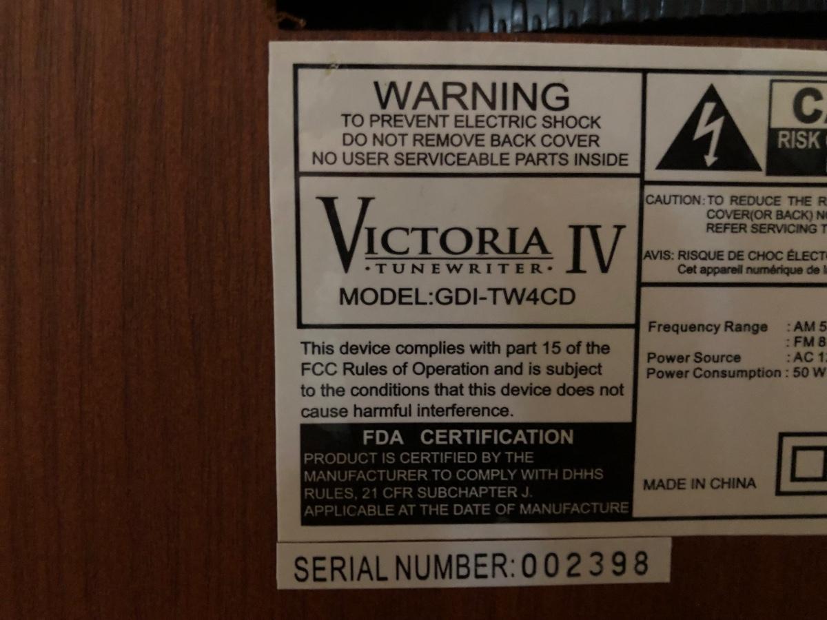 LOT 160B: Victoria Tunewriter IV Model GDI-TW4CD