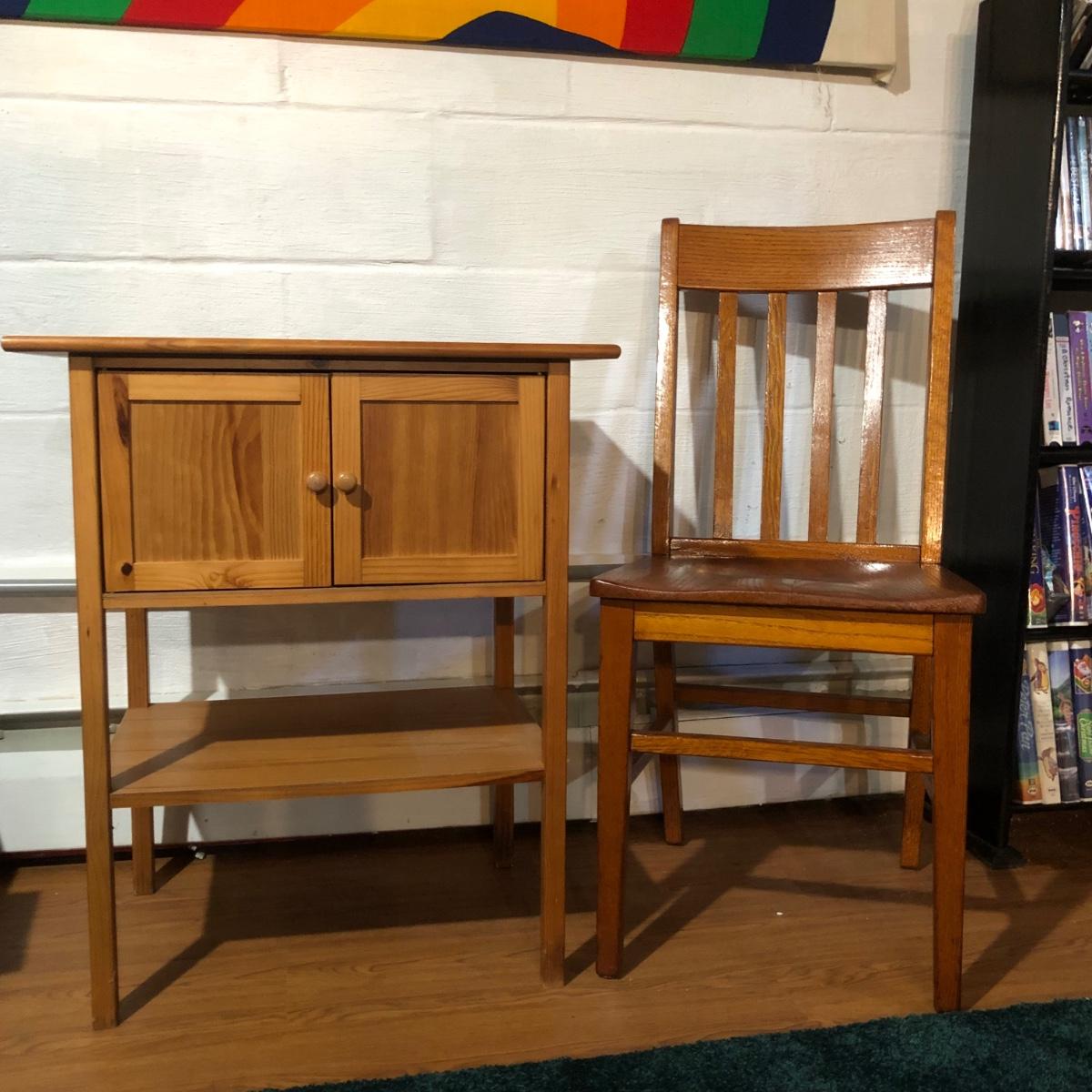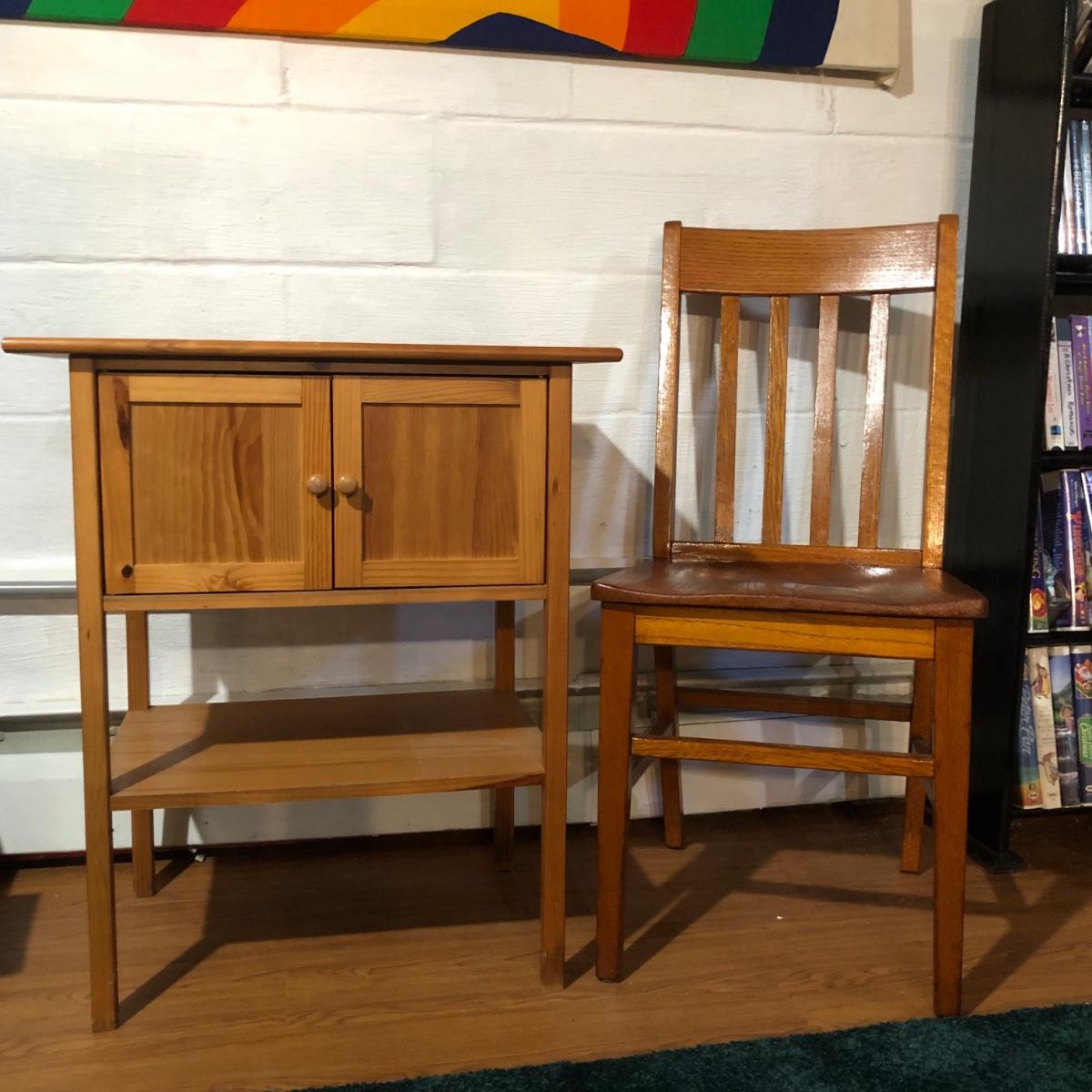 LOT 162B: Wooden Side Table w/ Chair
