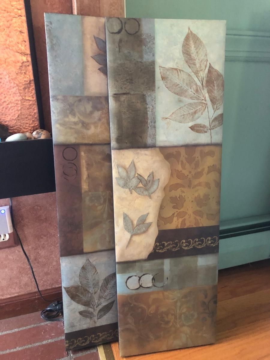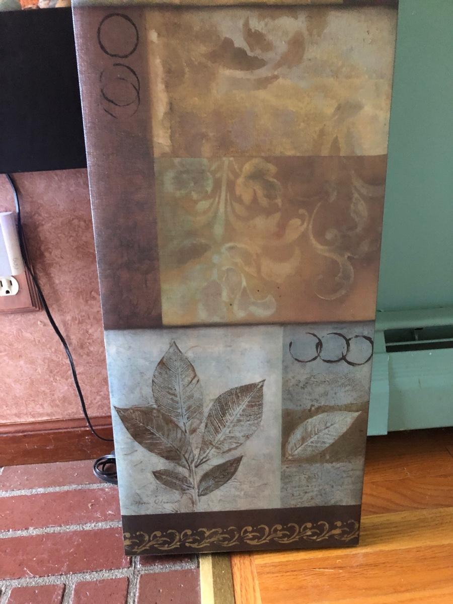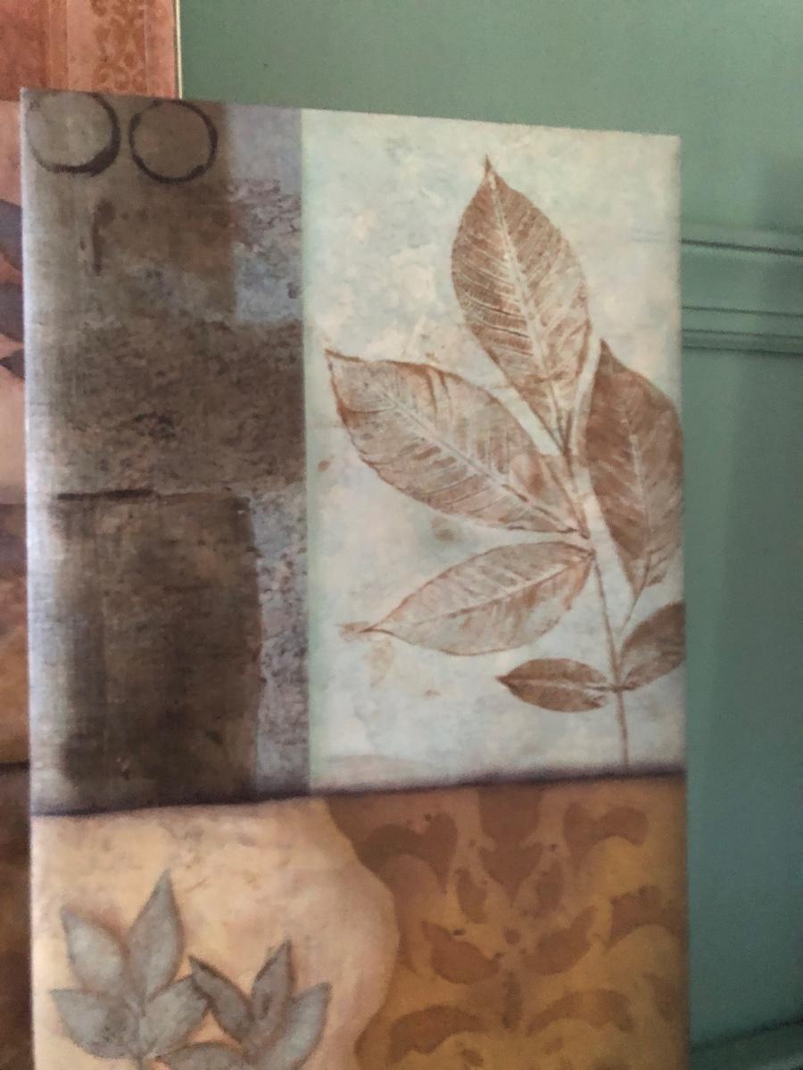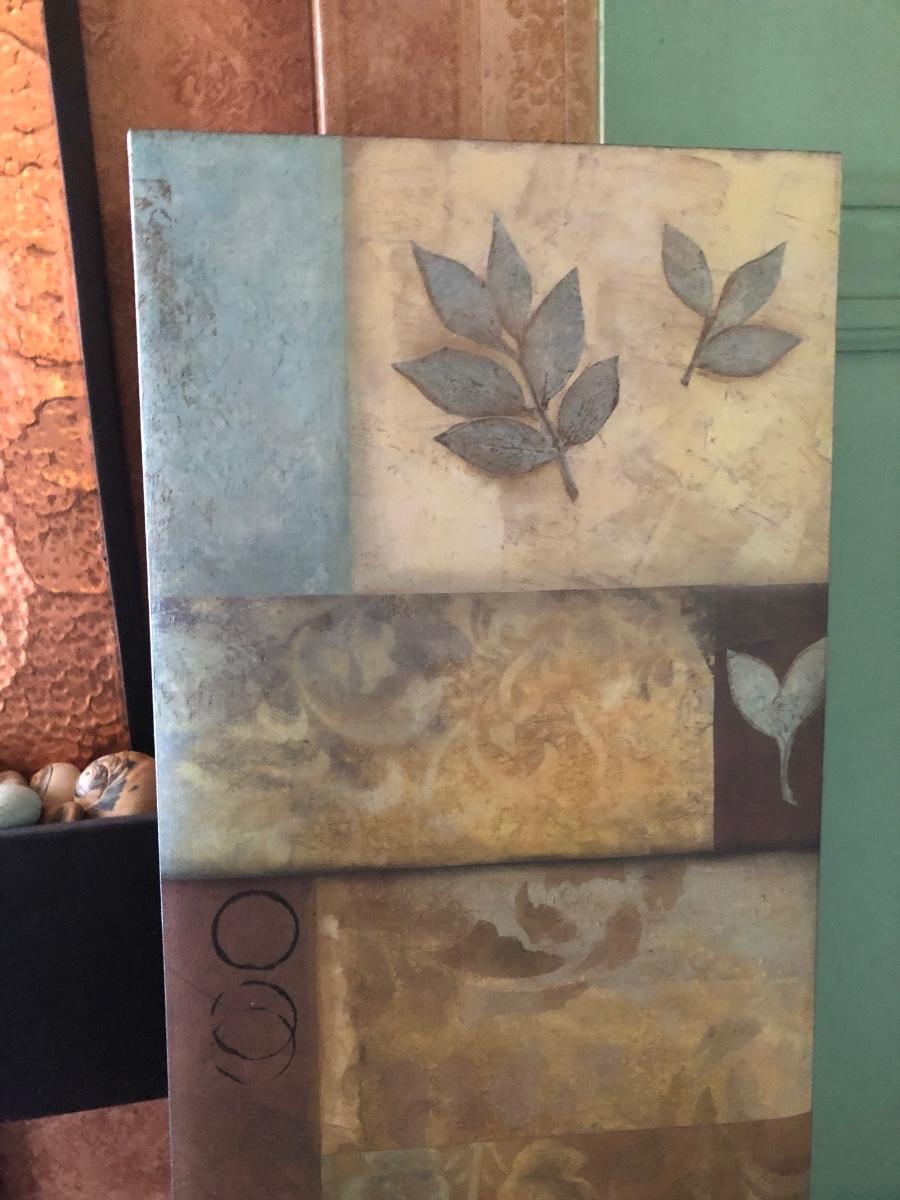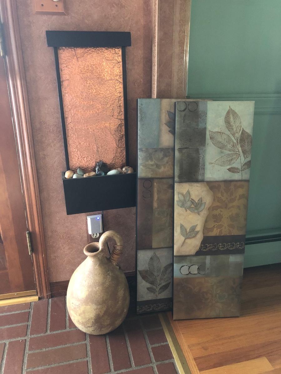 LOT 170D: Home Decor Collection - Art Leaf Prints, Pottery Water Jug & Electric Wall Mounted Fountain