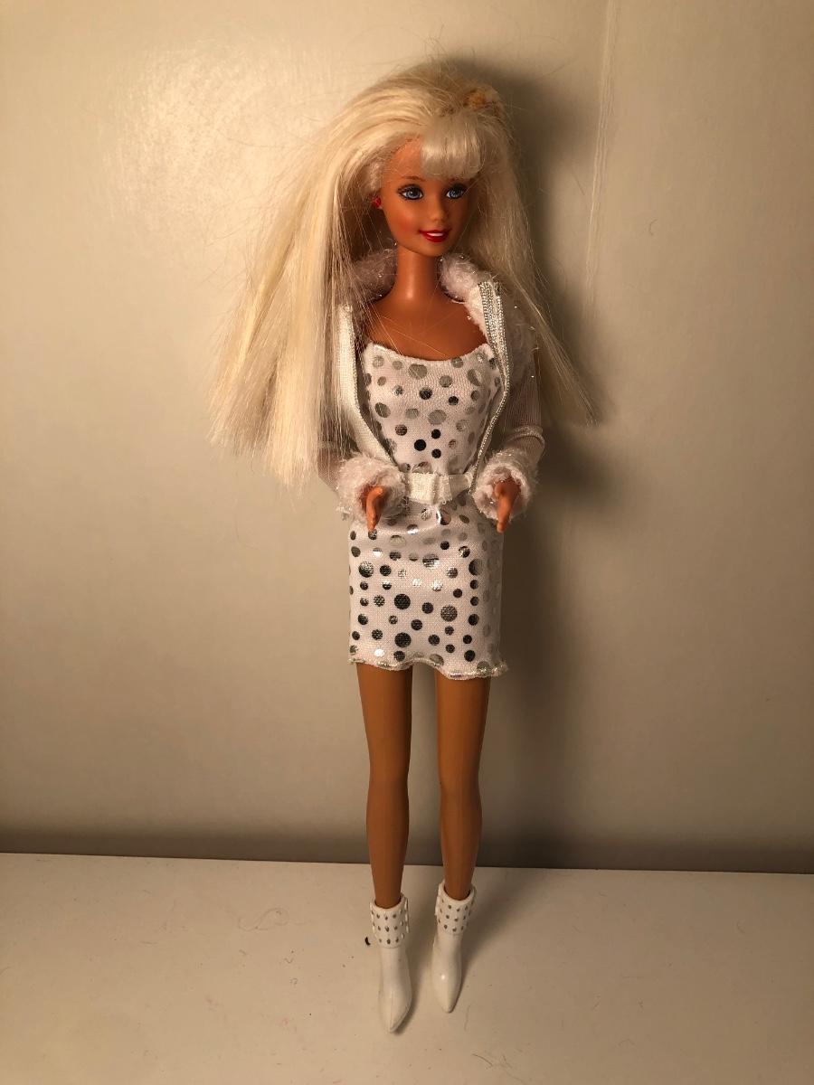 LOT 172B: 1997 Wild Style Barbie, Barbie in 1987 "Barbie & the Sensations" Fashion Pack (missing a shoe) & More Barbies w/ Outfits