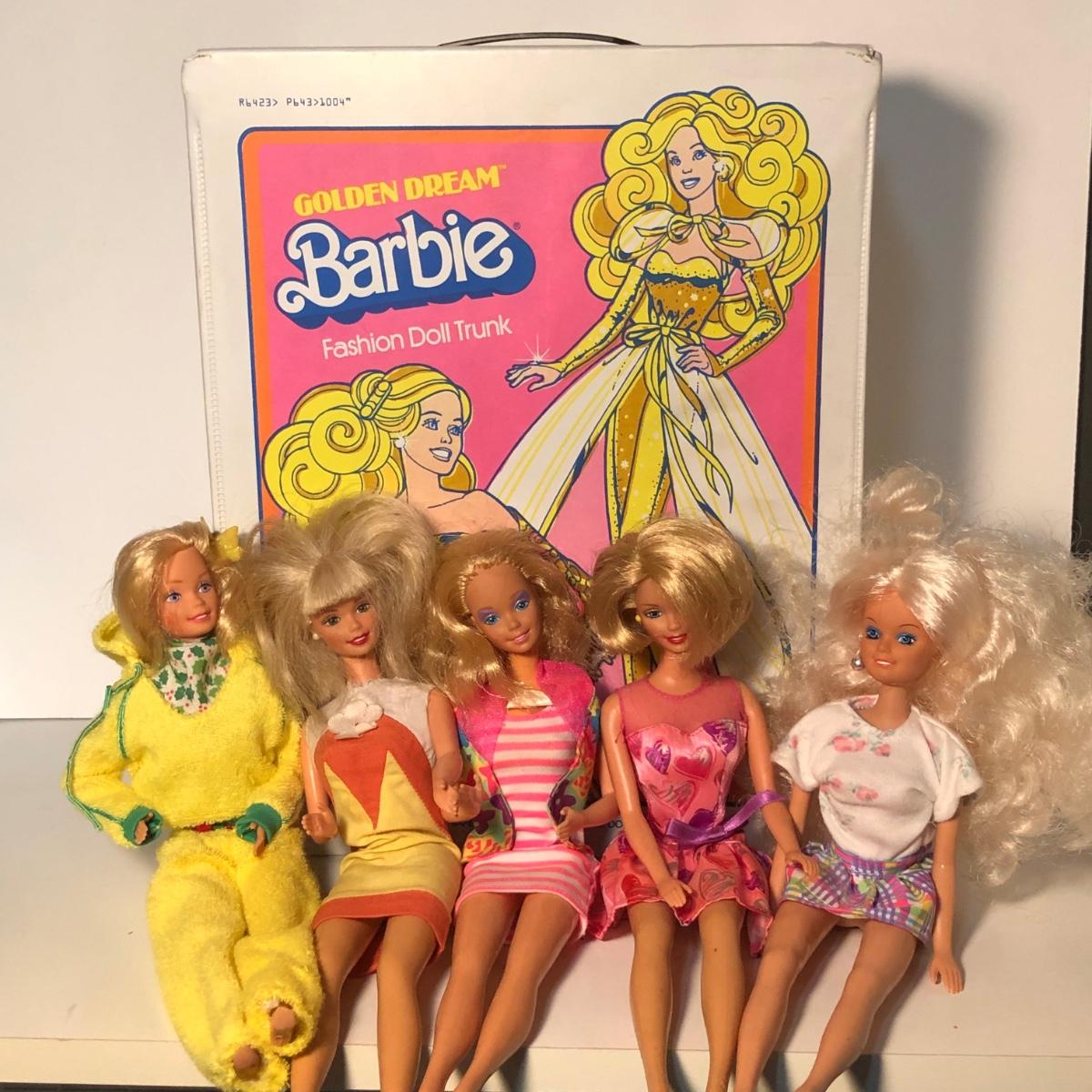 LOT 173B: Golden Dream Barbie Fashion Doll Trunk w/ Barbies & Fashion Doll w/ Vintage Clothes & Accessories