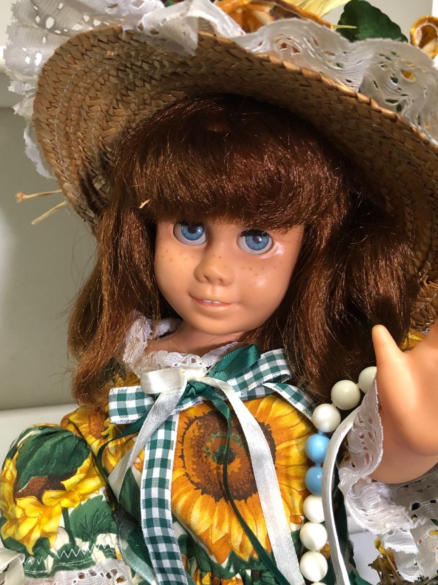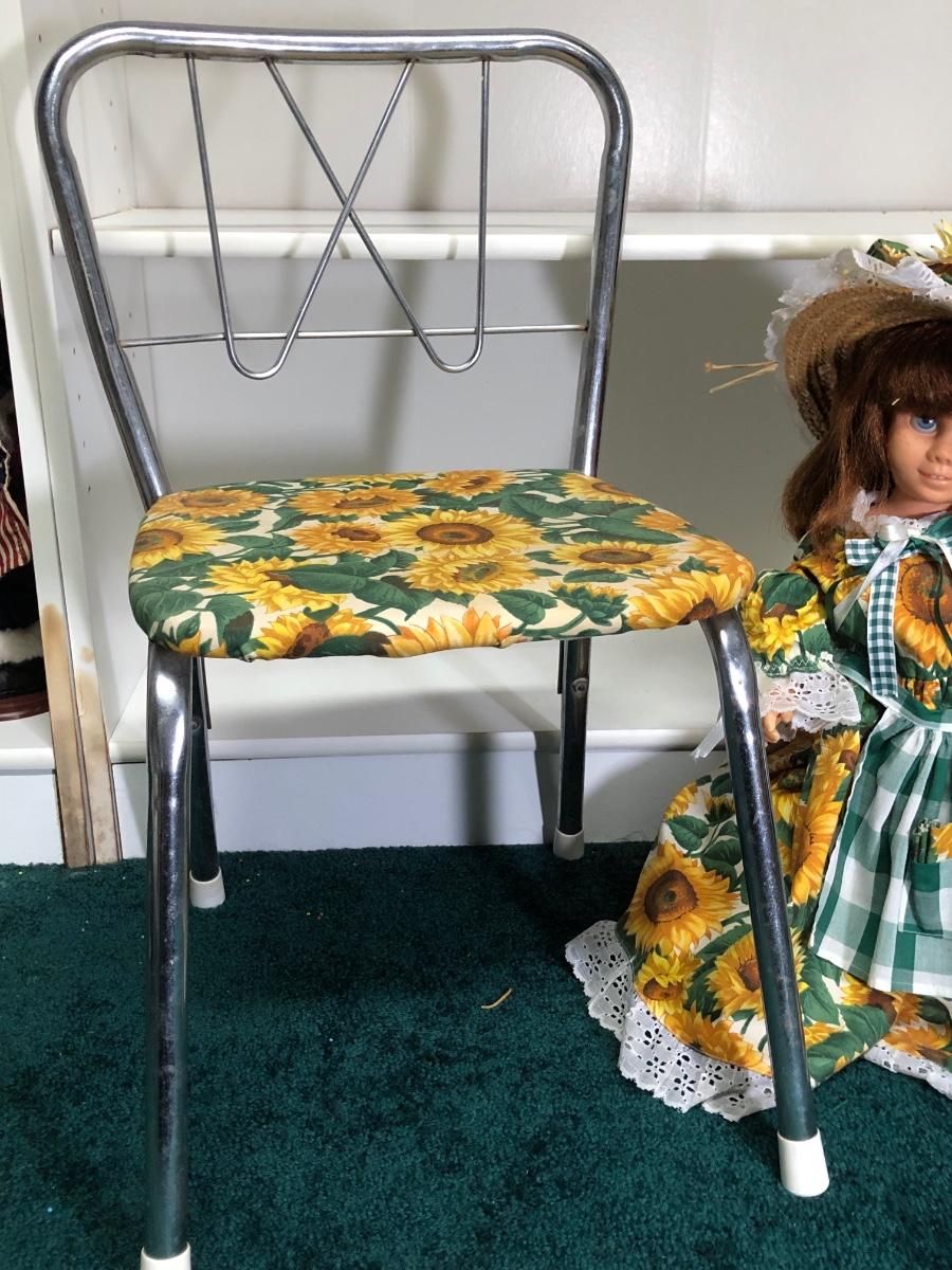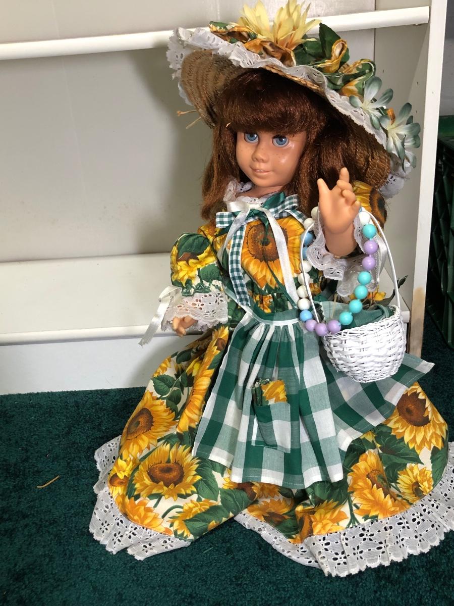 LOT 184B: Vintage Mattel Chatty Cathy Chatty Baby in Sunflower Outfit w/ Child Sized Sunflower Chair & American Girl Doll Books