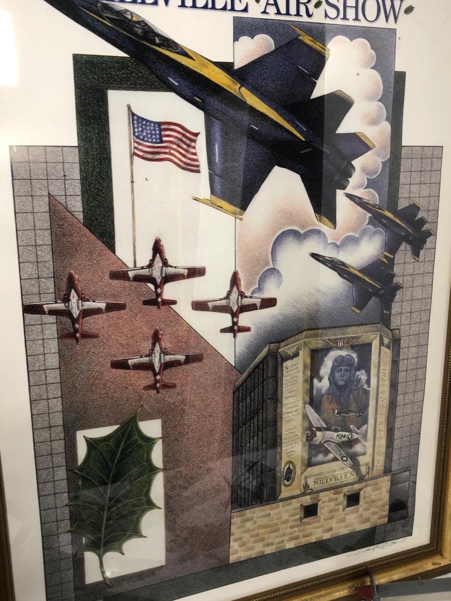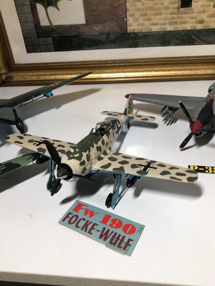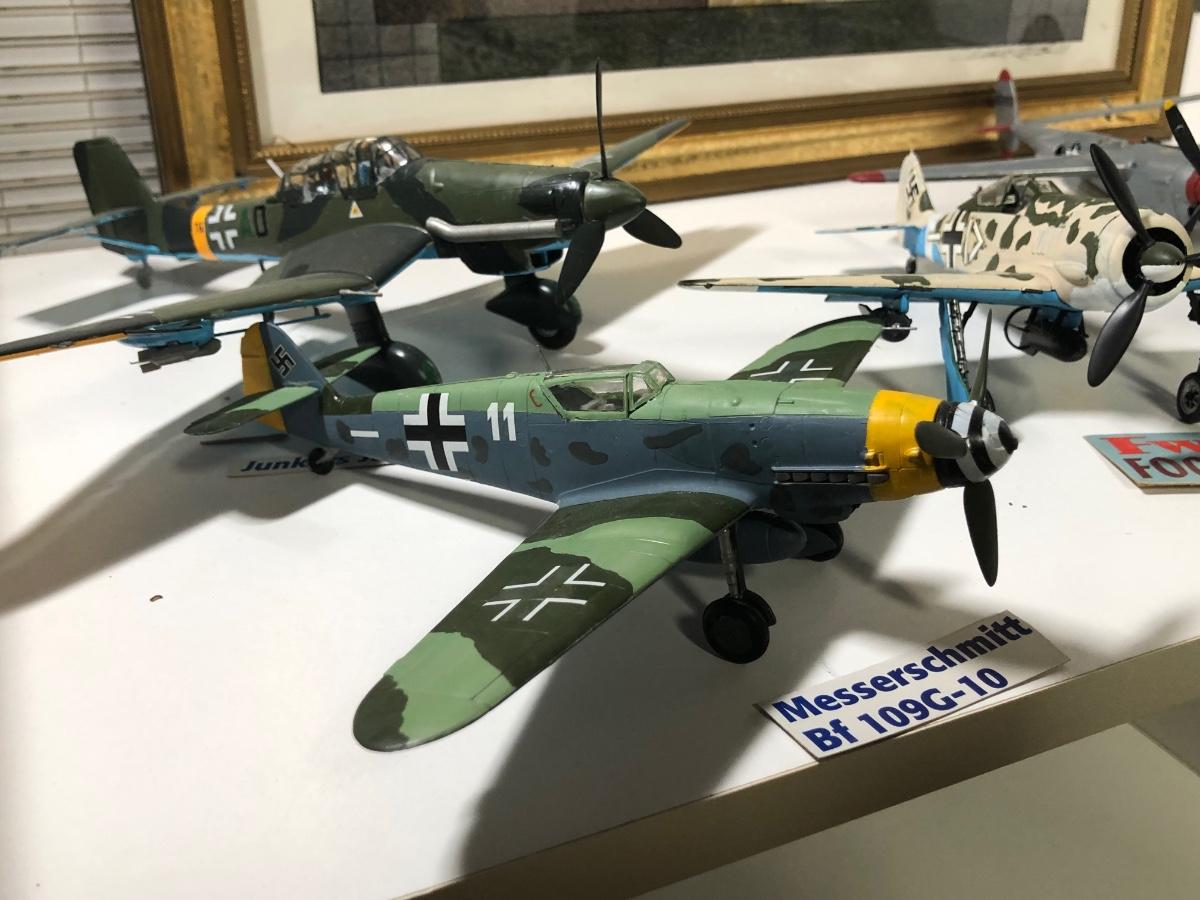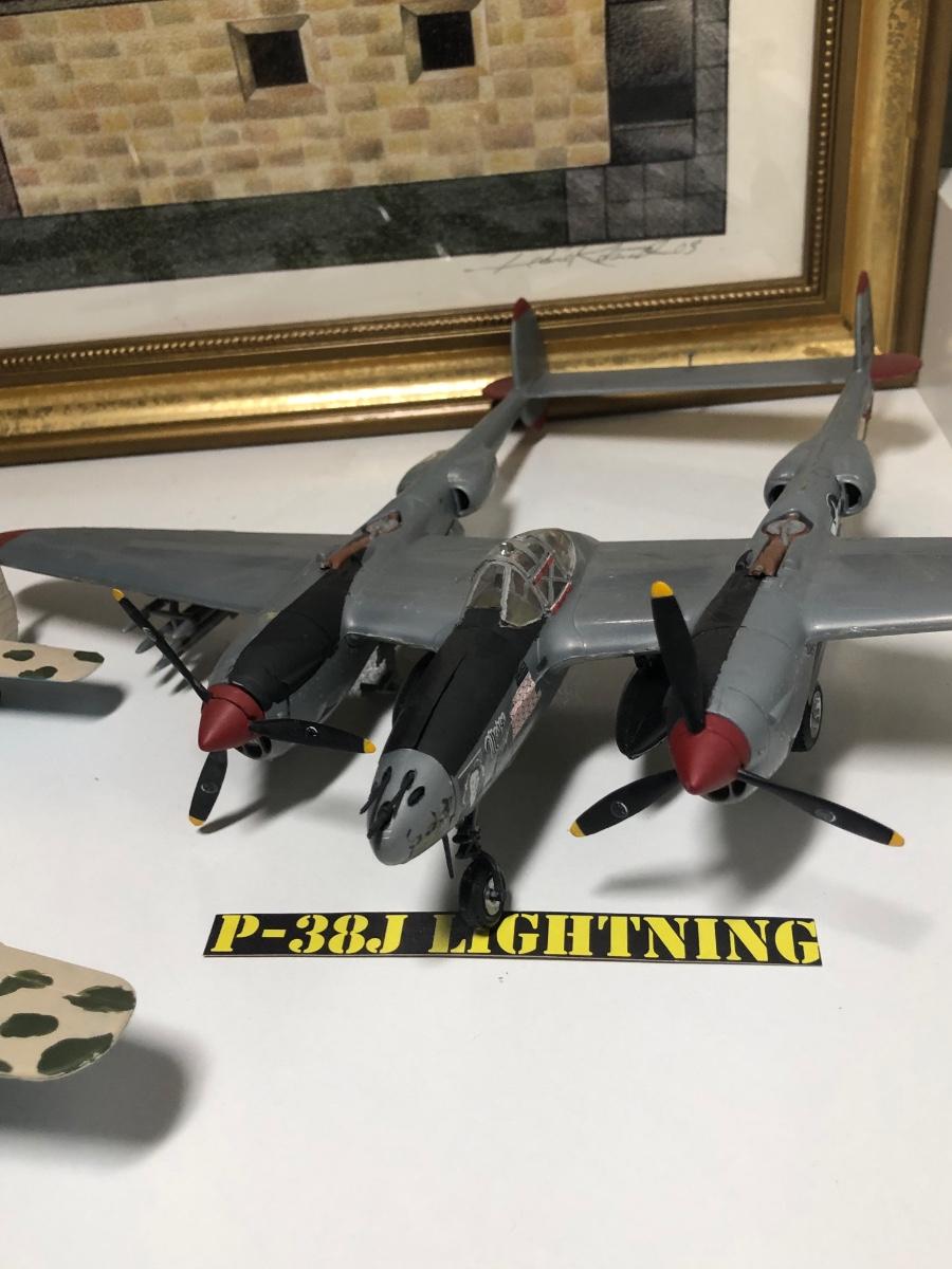 LOT 202B: 2003 Millville Airshow Framed Poster & Model Planes - Messerschmitt Bf 109G-010, Ju 87 D Stuka, Fw 190 Focke-Wulf & P-38J Lightning
