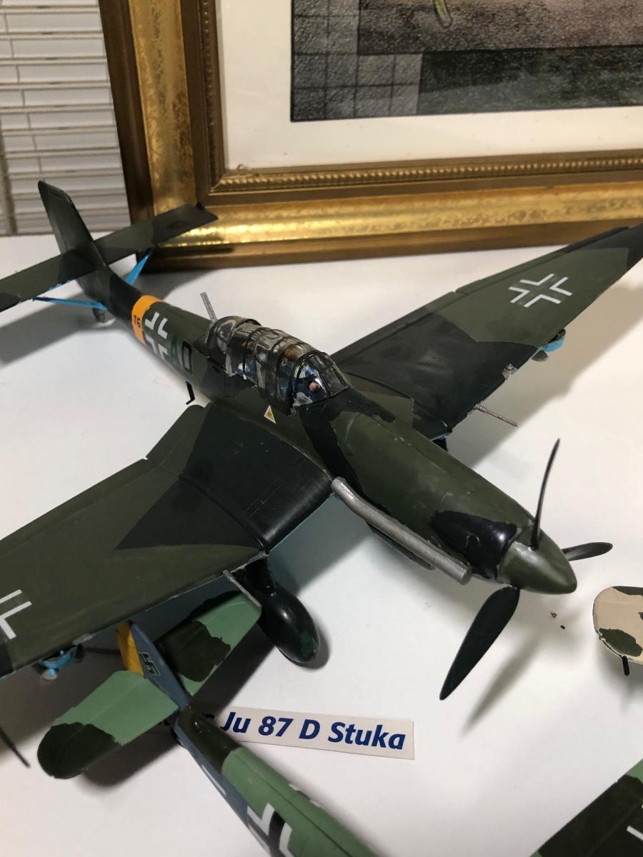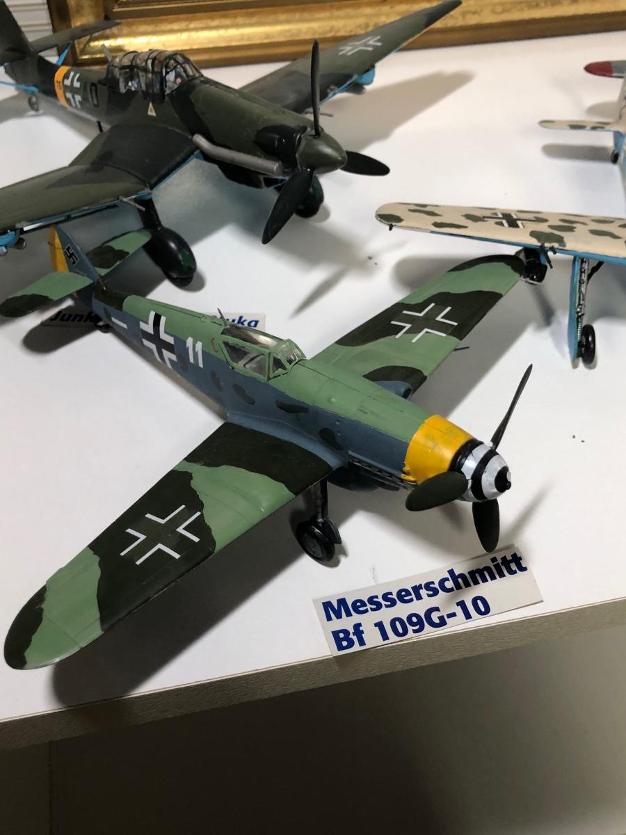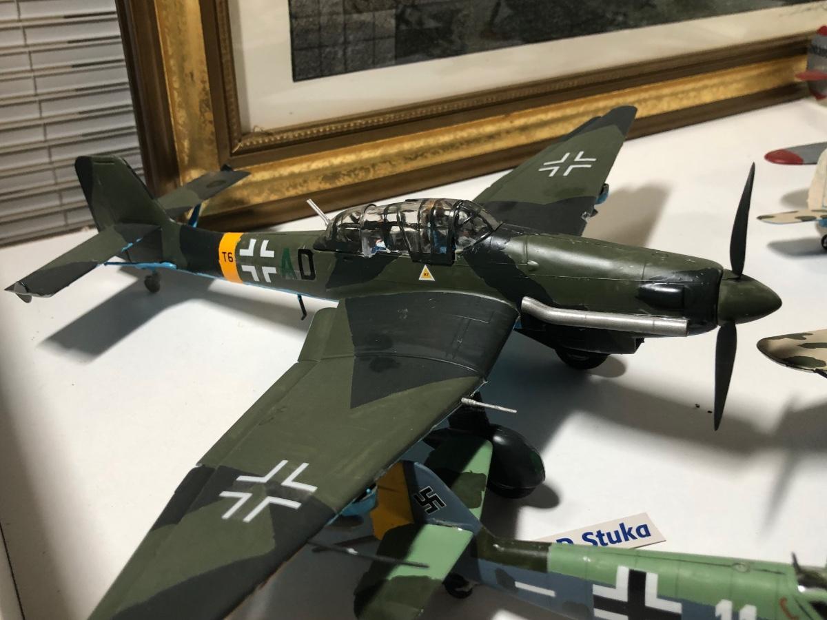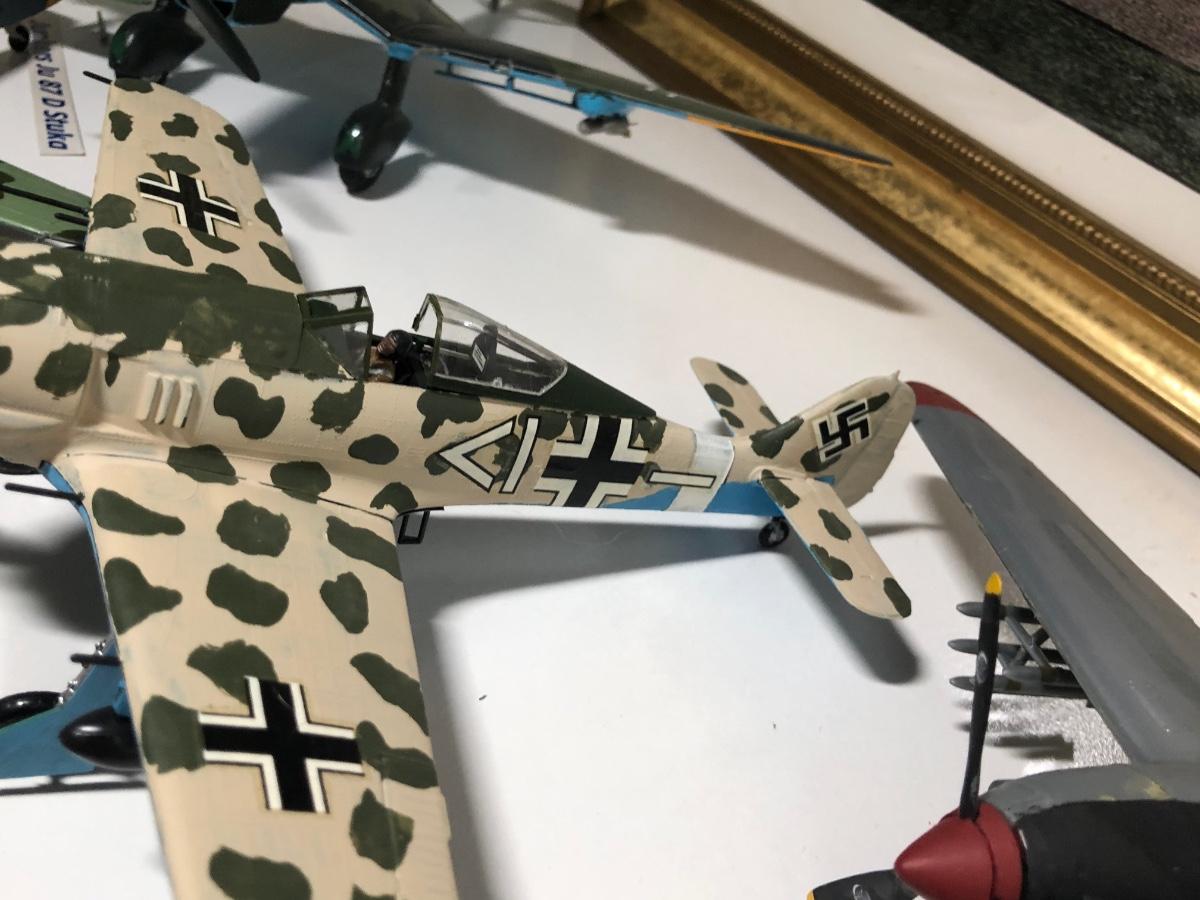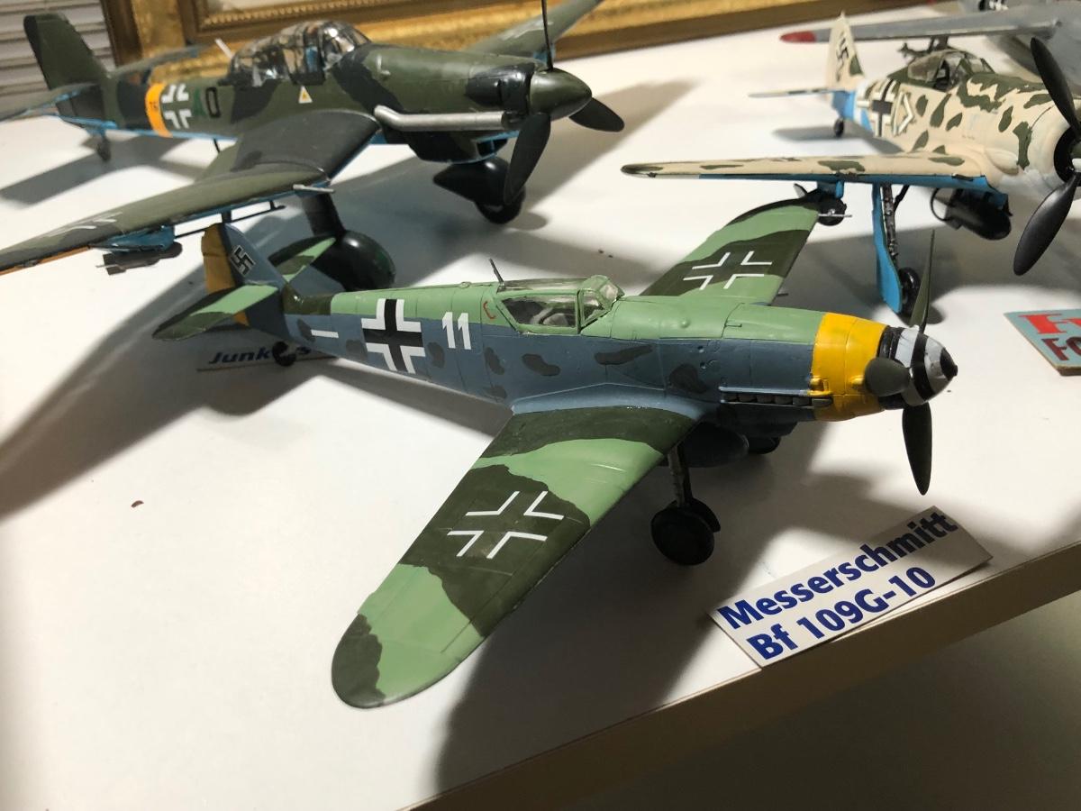 LOT 202B: 2003 Millville Airshow Framed Poster & Model Planes - Messerschmitt Bf 109G-010, Ju 87 D Stuka, Fw 190 Focke-Wulf & P-38J Lightning