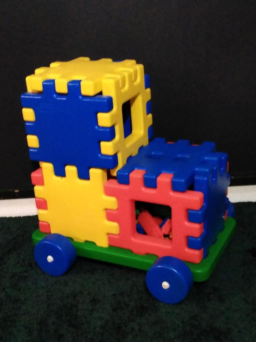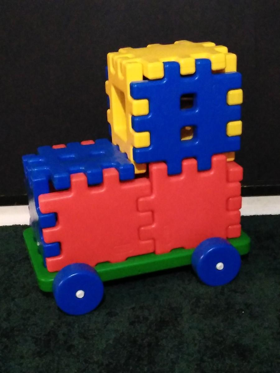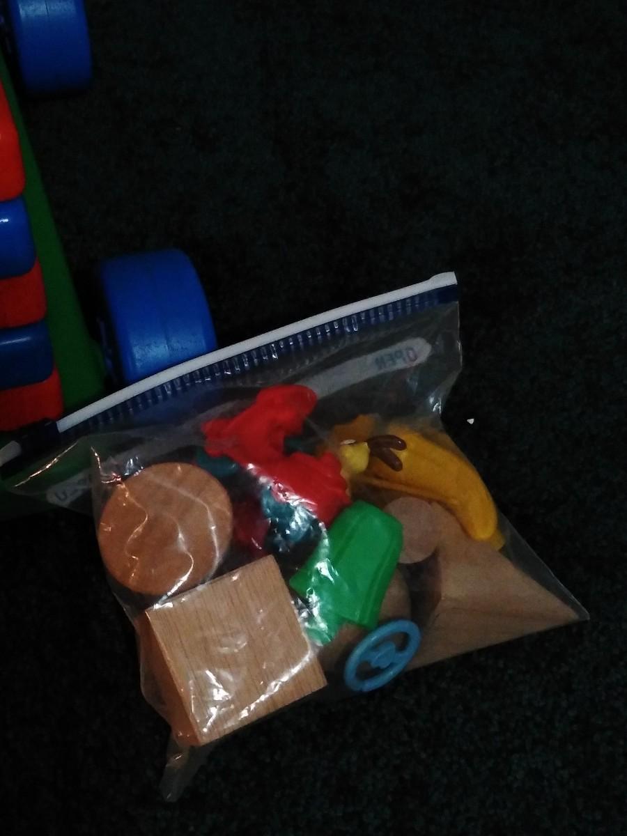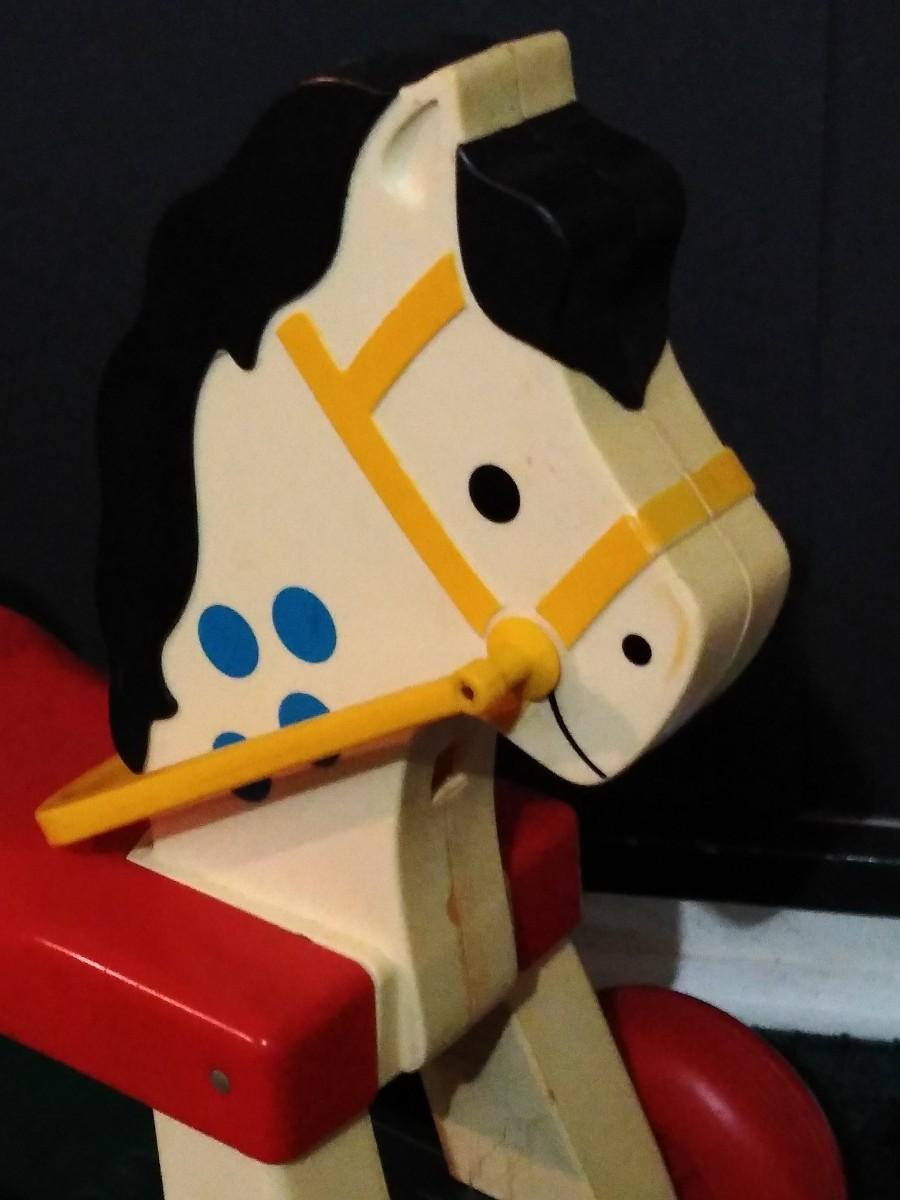 LOT 230B: Vintage Fisher Price Riding Horse and Little Tike Waffle Block Car w/ Assorted Bristle Blocks & More