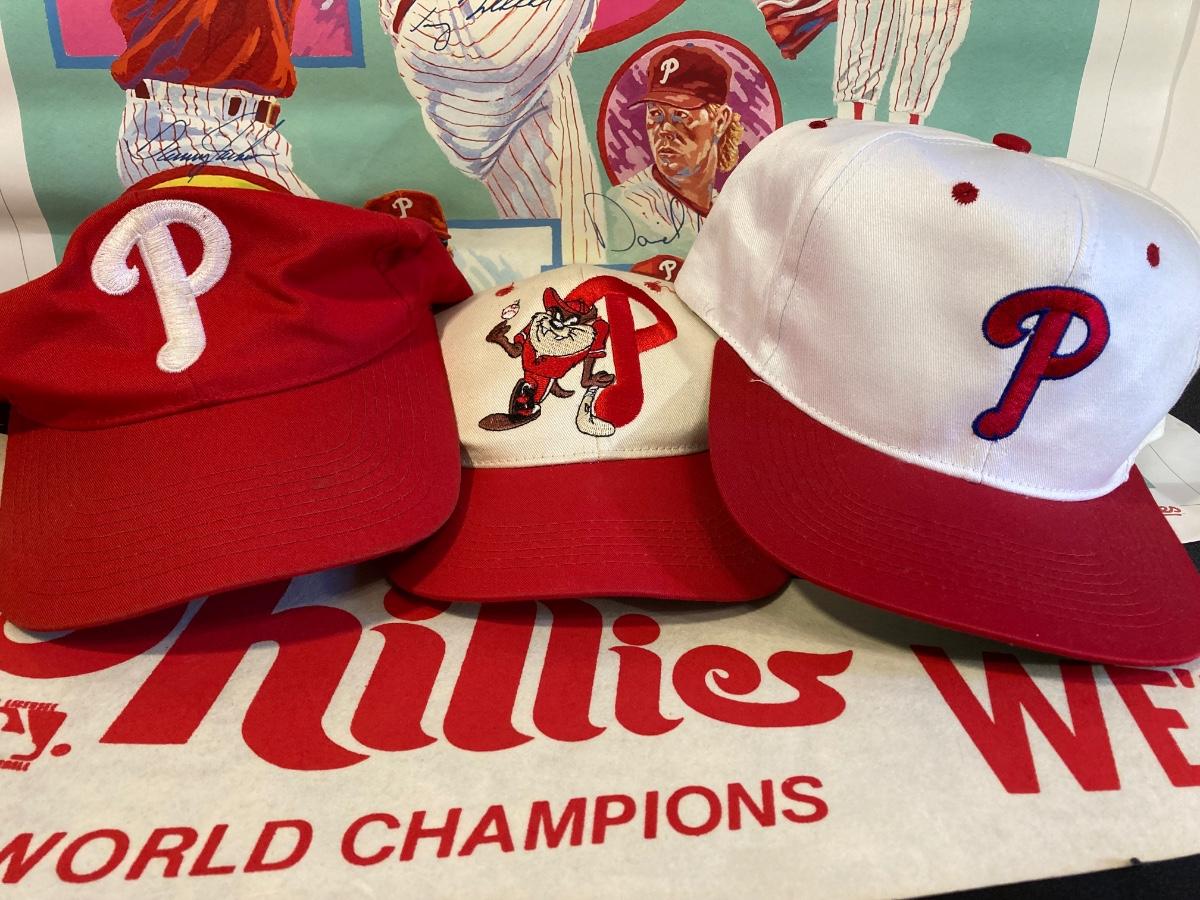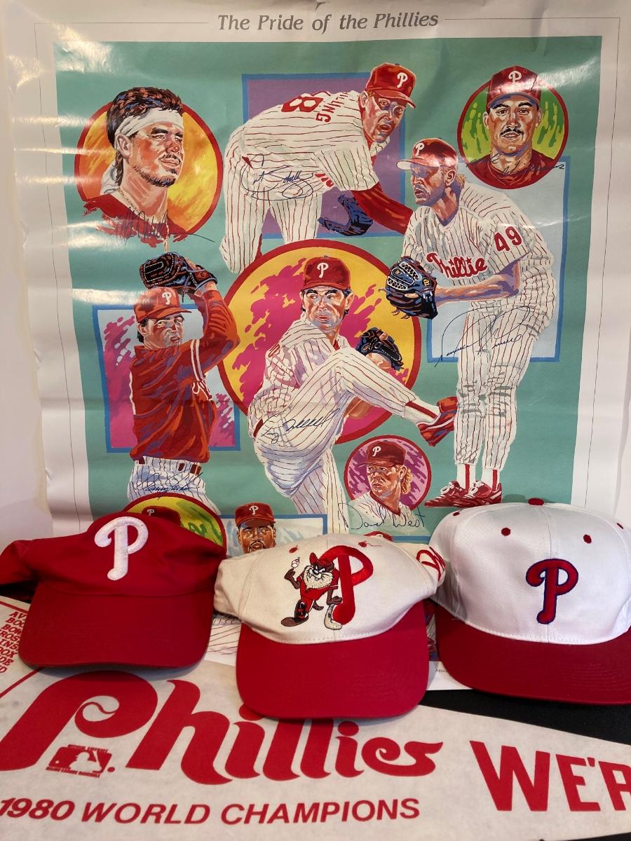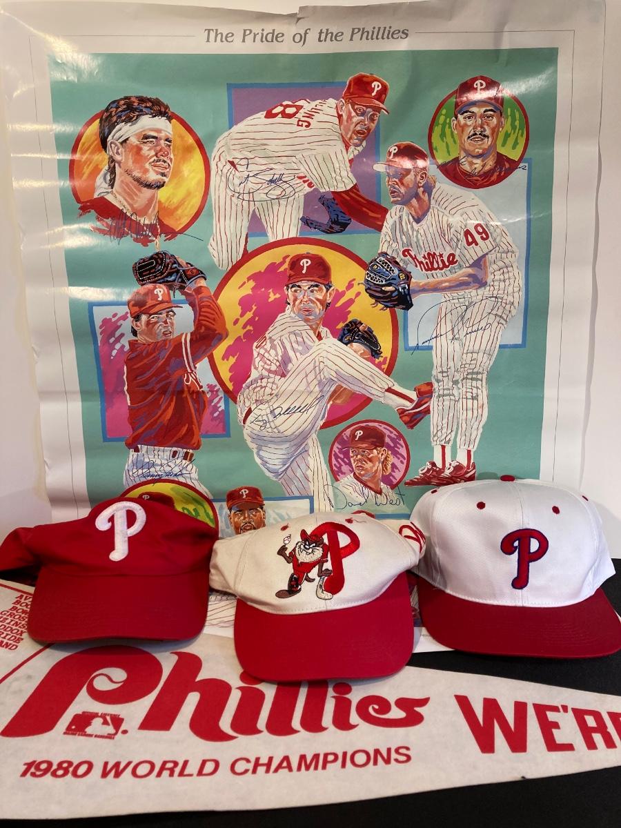 LOT 11J: Philadelphia Phillies Memorabilia - Poster, Hats and 1980 Pennant