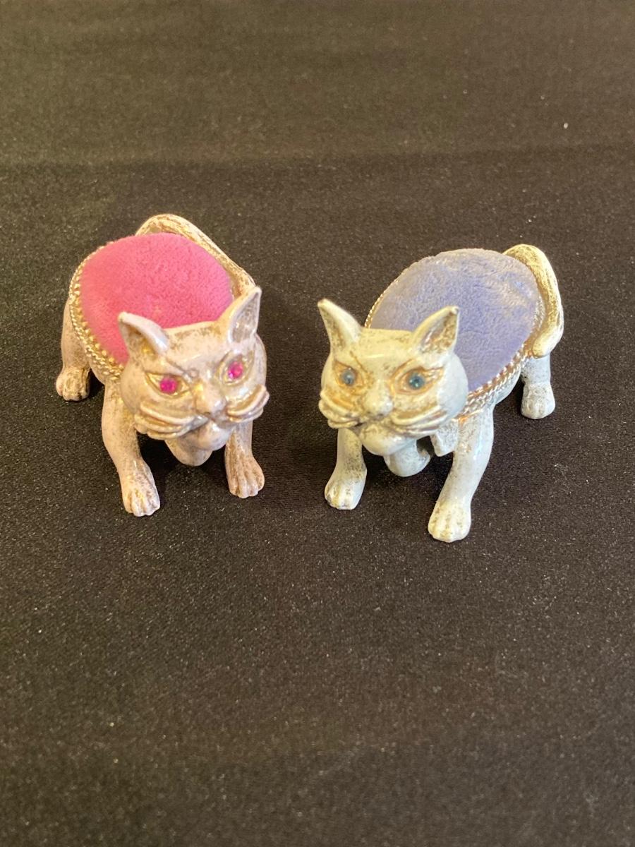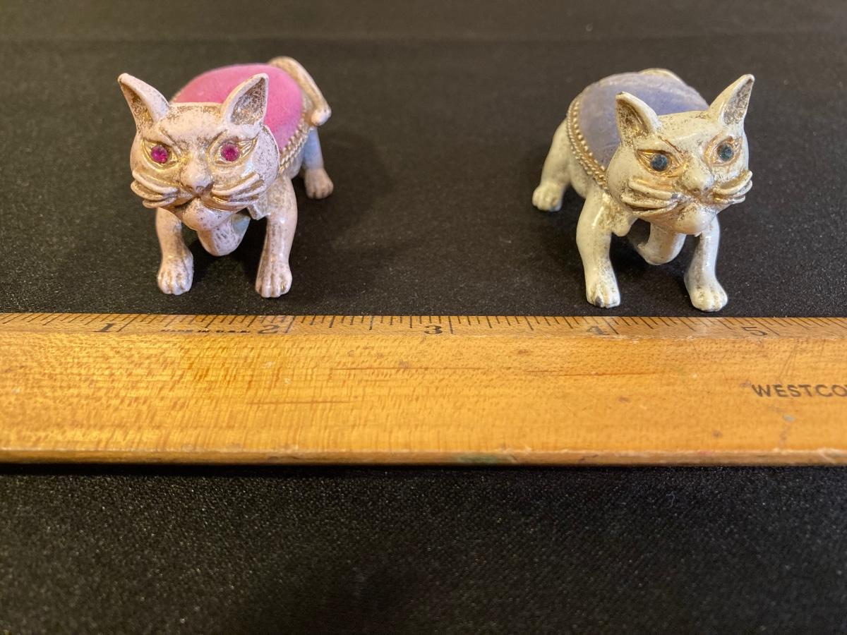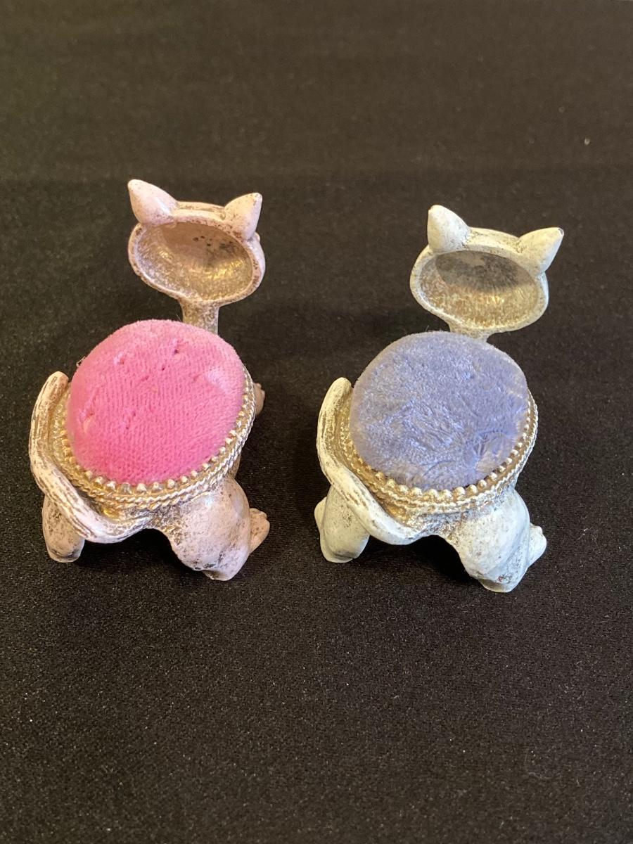 LOT 13J: Vintage Cat Collectibles - Florenza Pin Cushions and Black Iron