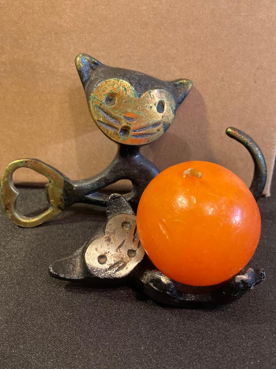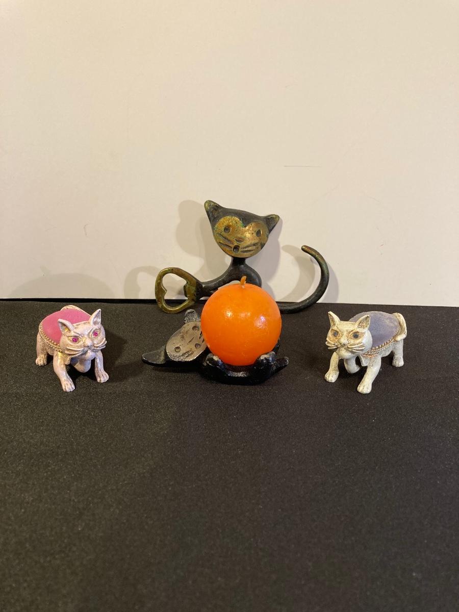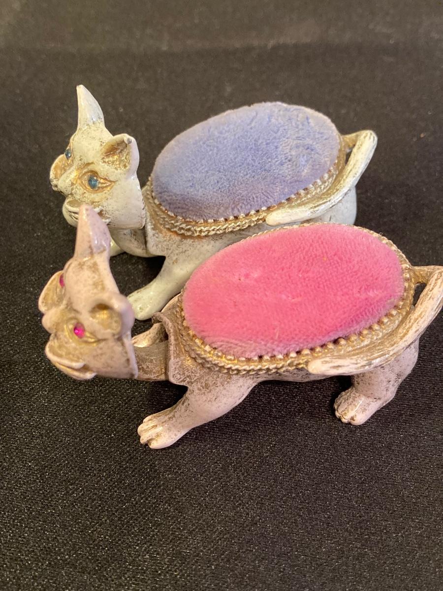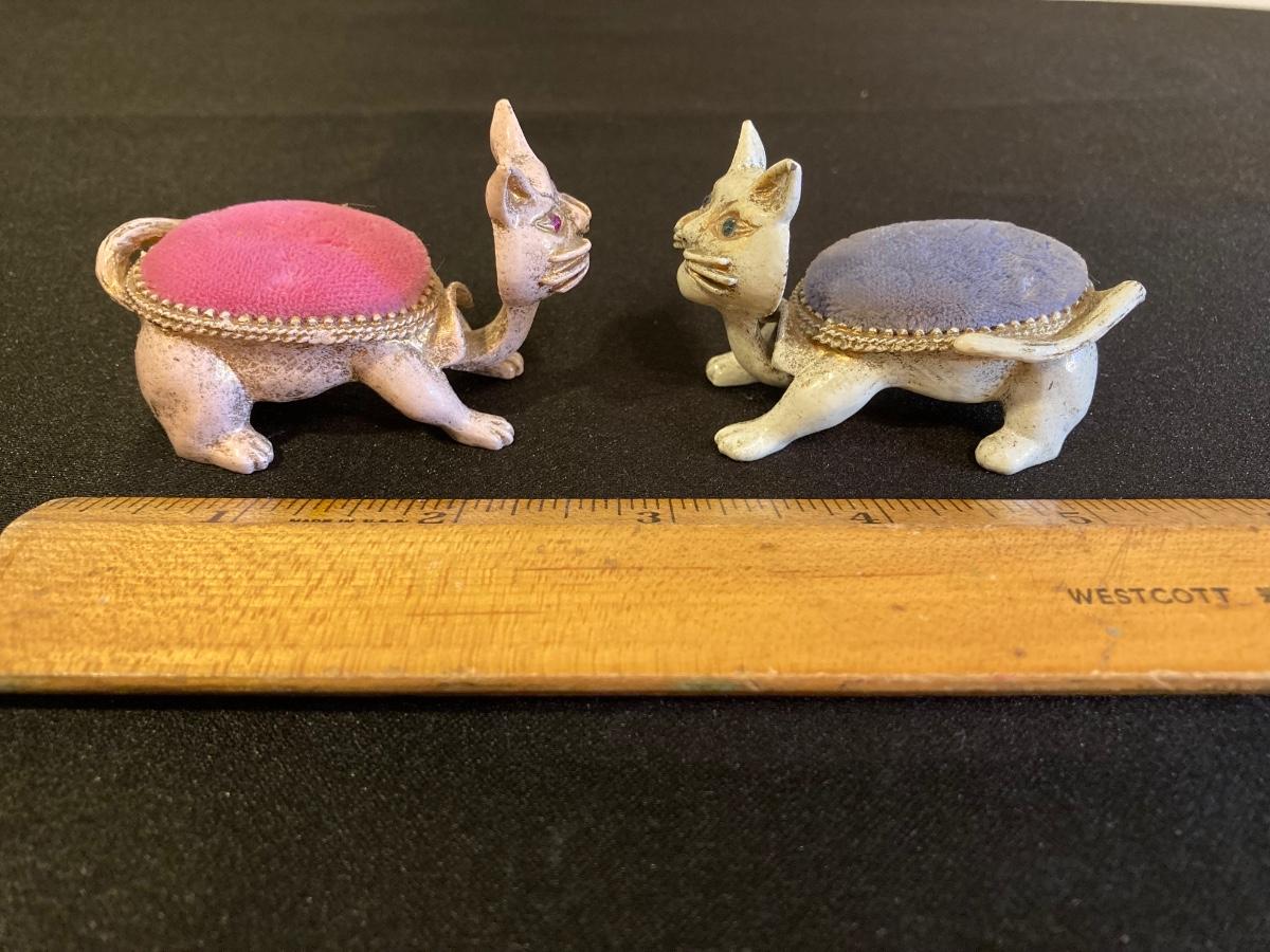 LOT 13J: Vintage Cat Collectibles - Florenza Pin Cushions and Black Iron